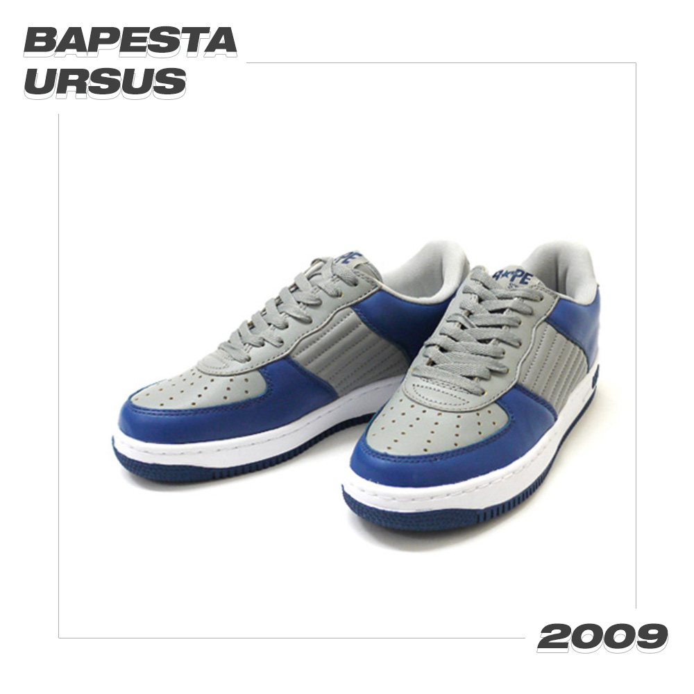 2009 年,BAPE® 打造了主打军事、工装等硬朗美式风格的支线 URSUS BAPE,并由西山彻任职创意总监,全权负责 URSUS BAPE 的设计。上图这双 BAPESTA URSUS 便是以原版 BAPESTA 为基础推出的特别款式,将原本鞋身侧面的 Logo 缩小并替换到了后跟处。