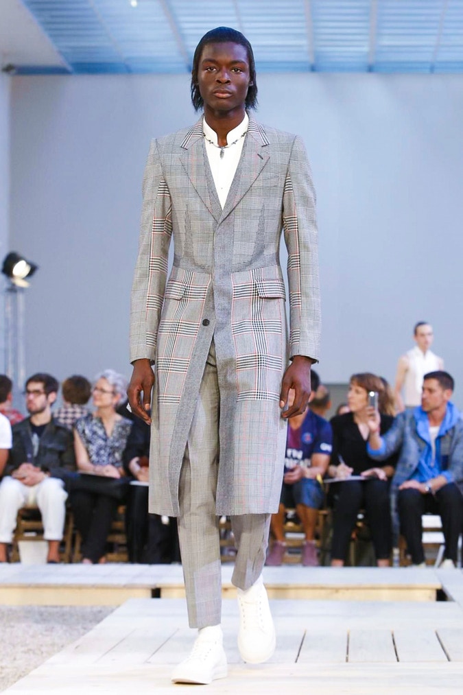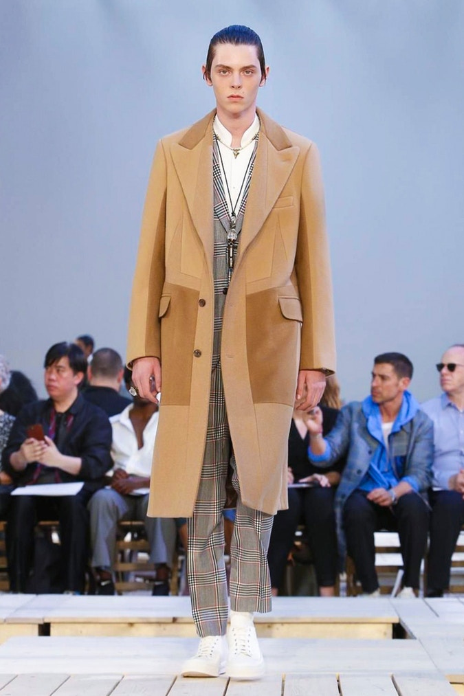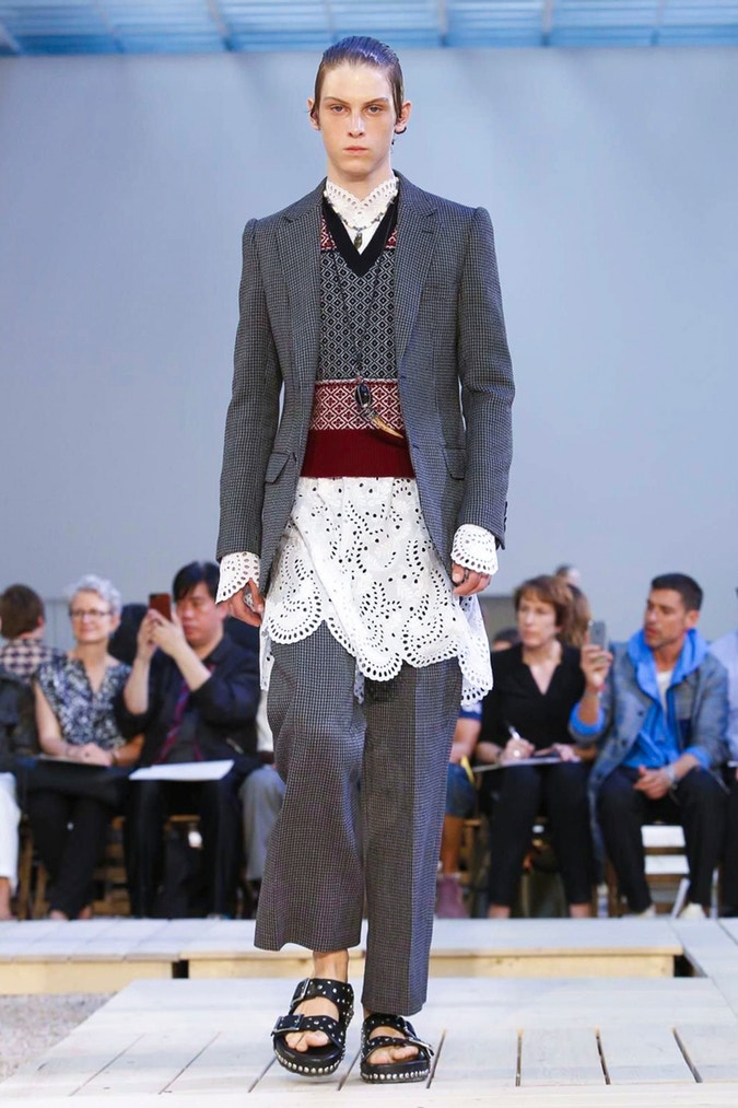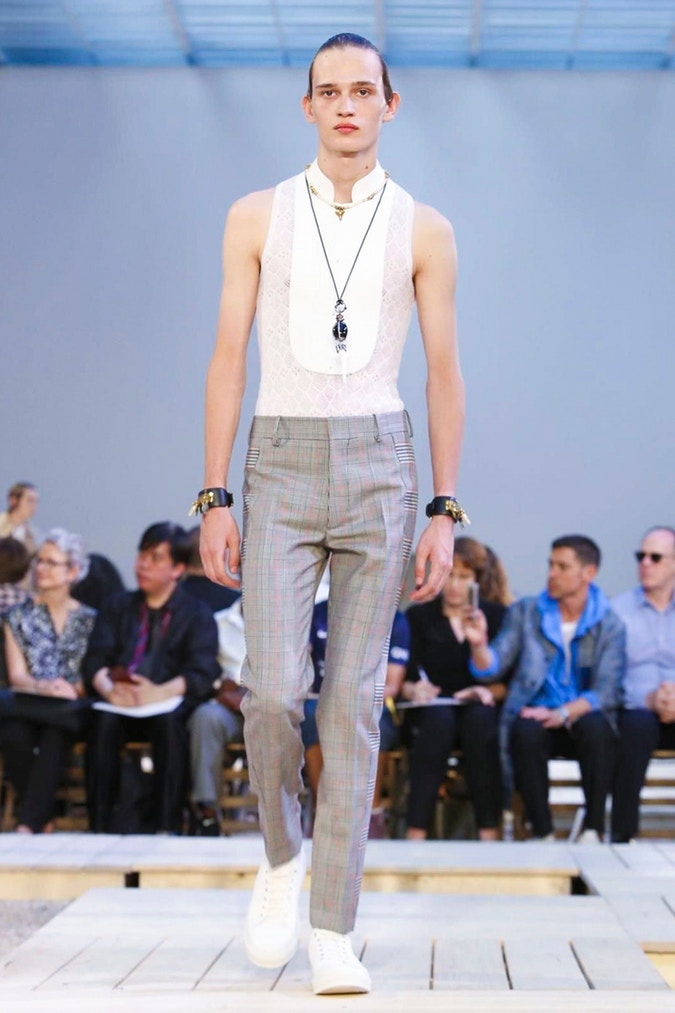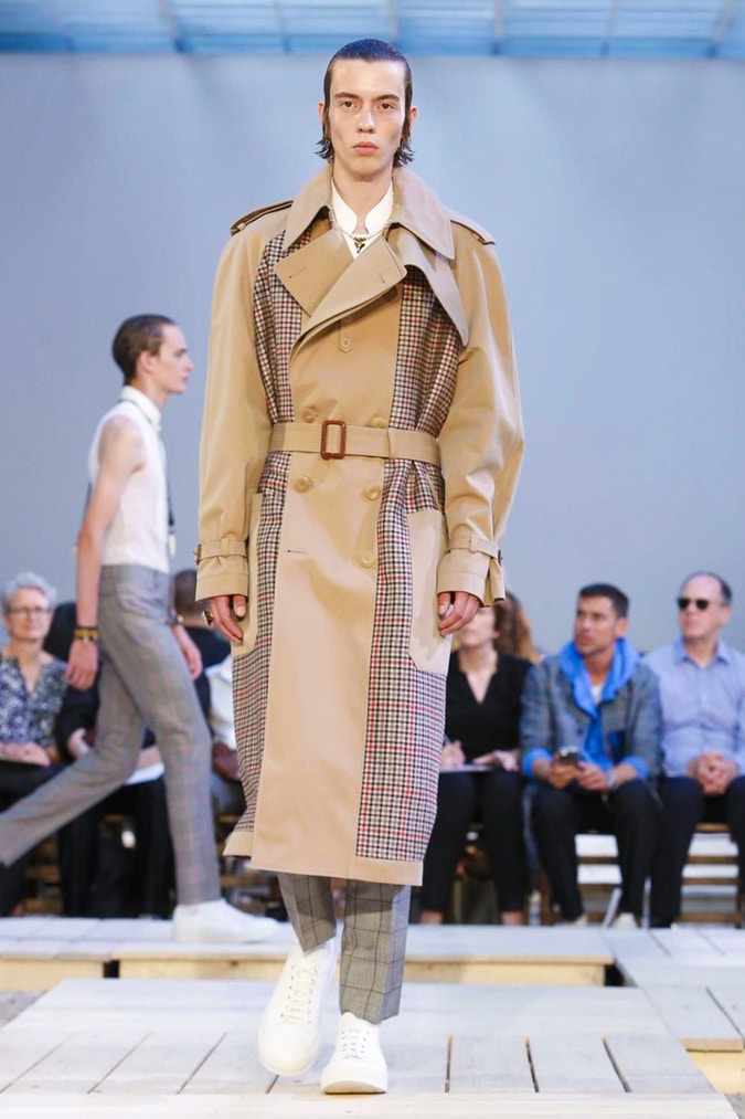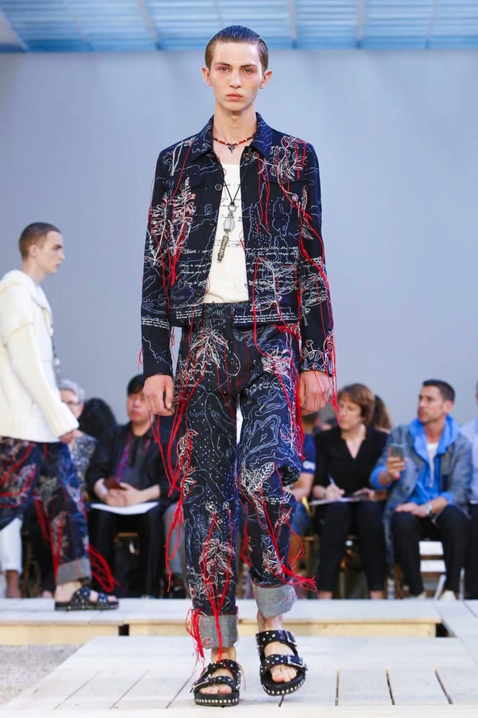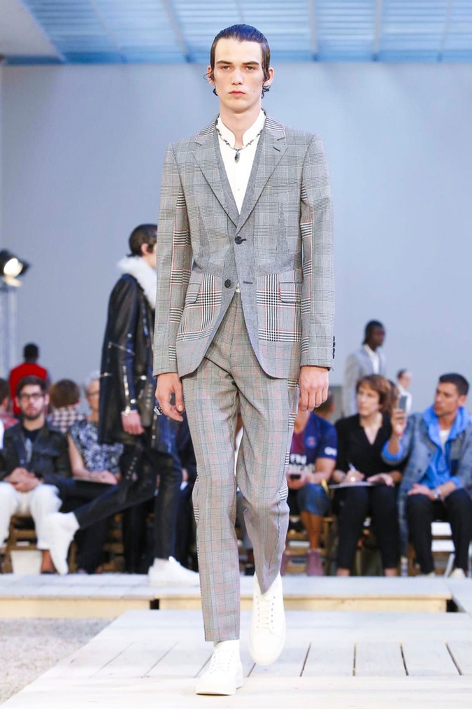 Alexander McQueen 在今年五月宣布将重返巴黎男装时装周的 T 台,时隔一个月,这家英国时装屋如约而至,发布了 2018 男装春夏系列新品。在这一季 Alexander McQueen 的新品中,花卉、树枝以及在衣服上出现的纱线元素成为主打,设计总监 Sarah Burton 希望以此方式彰显品牌一贯崇尚的暗黑时尚美学。除此之外,皮制风衣、机车夹克、皮裤等单品也是大家关注的重点。