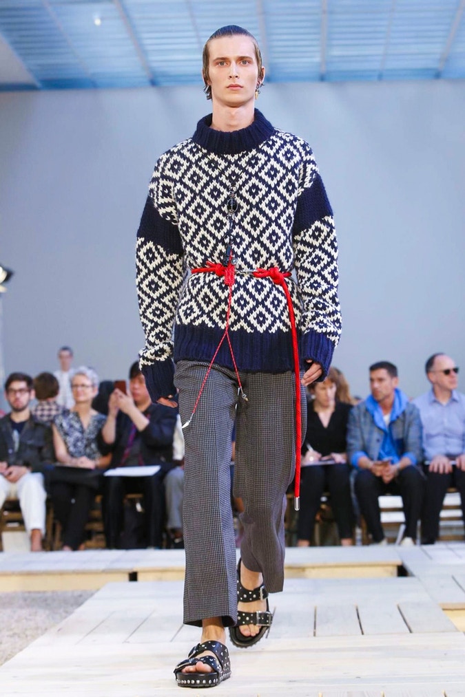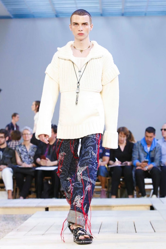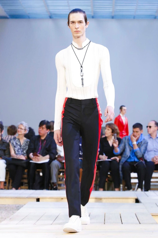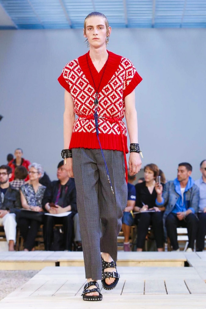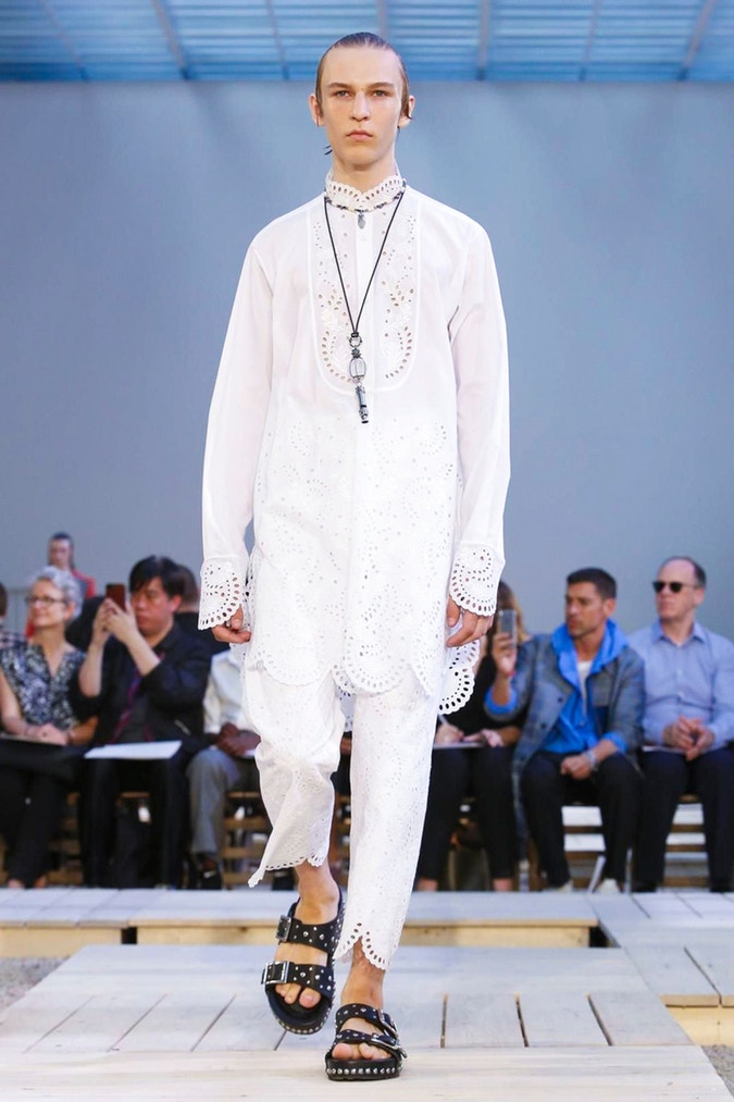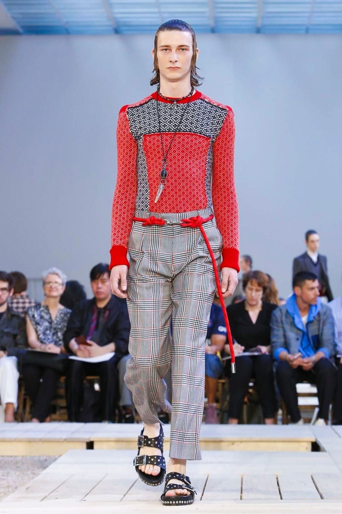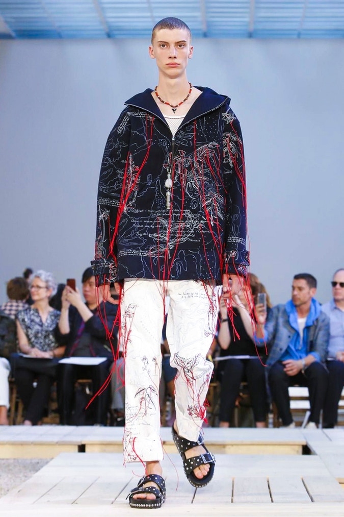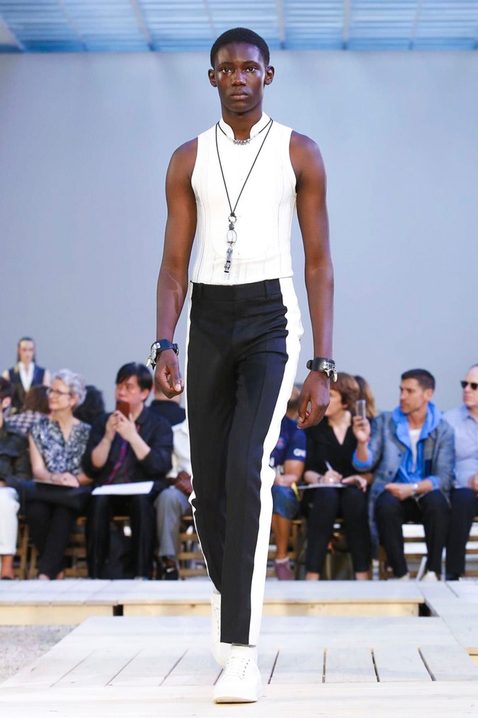 Alexander McQueen 在今年五月宣布将重返巴黎男装时装周的 T 台,时隔一个月,这家英国时装屋如约而至,发布了 2018 男装春夏系列新品。在这一季 Alexander McQueen 的新品中,花卉、树枝以及在衣服上出现的纱线元素成为主打,设计总监 Sarah Burton 希望以此方式彰显品牌一贯崇尚的暗黑时尚美学。除此之外,皮制风衣、机车夹克、皮裤等单品也是大家关注的重点。