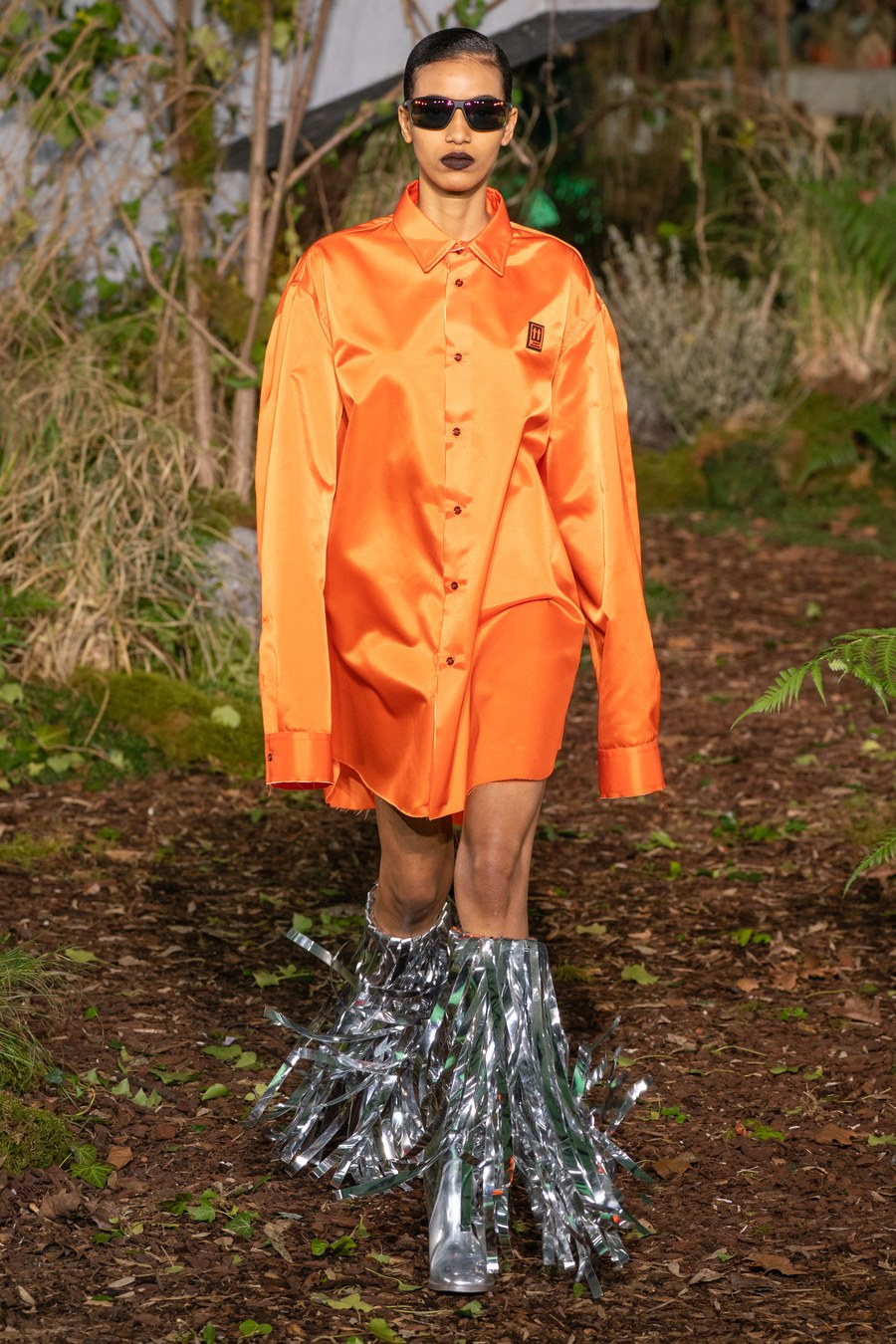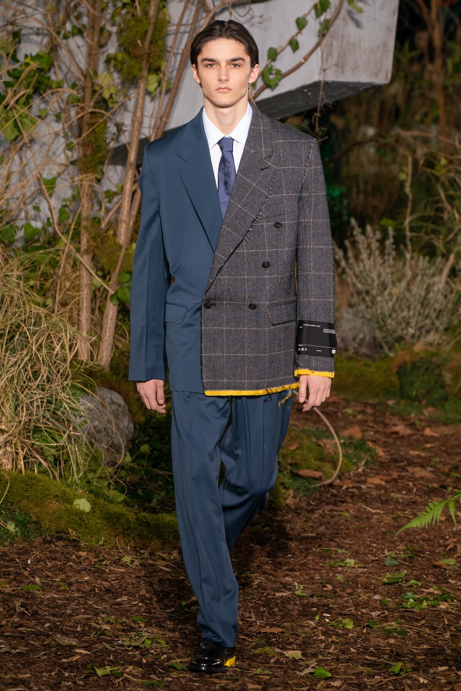 这一季的 Off-White™ 以 “Public Television” 为名,Virgil Abloh 解释说:“对于我们这些看电视长大的人来说,铺天盖地的广告和图像实际上正在形成我们的环境,塑造我们的世界观。” 他在秀场中铺了绿色幕布,这样可以很容易地进行后期合成,观看直播的人会惊奇地发现,模特在现实与虚拟世界中穿梭。各种 Oversize 廓形单品、街头字母涂鸦、骑行头盔,街头与时装的界限逐渐模糊,依然是我们熟悉的 Virgil Abloh 风格。除此之外,在模特阵容中,我们还能看到 Offset 和 Playboi Carti,Virgil Abloh也是很懂得如何制造更高的话题度。
