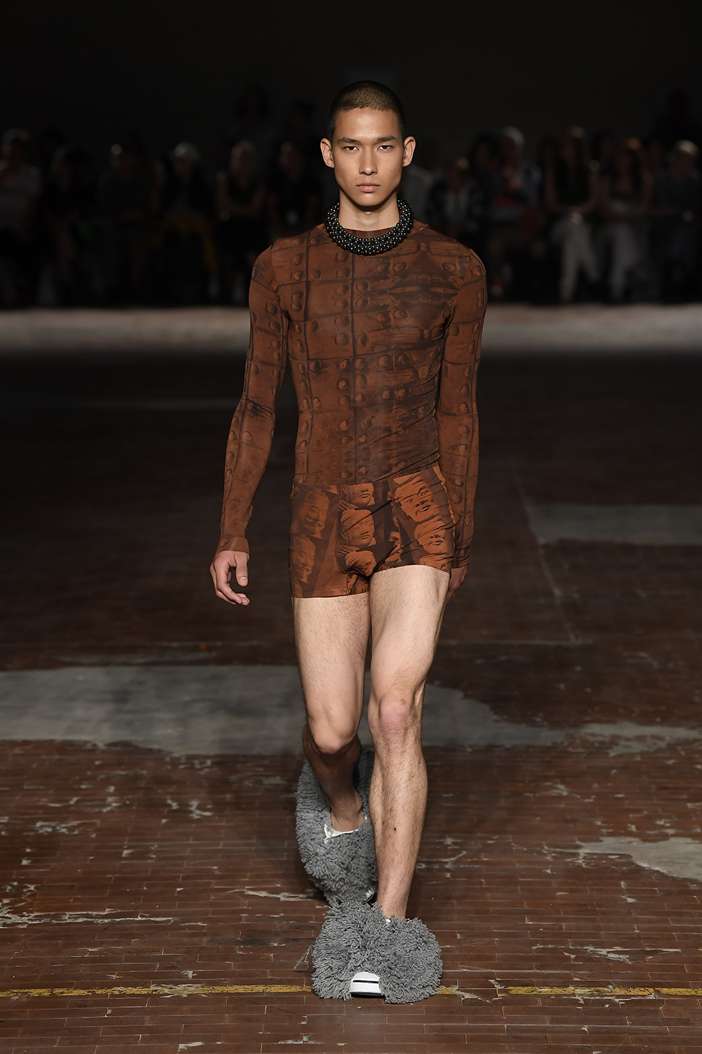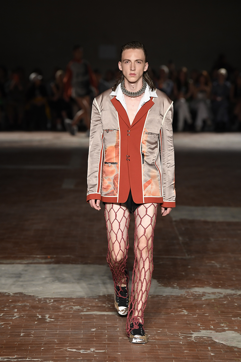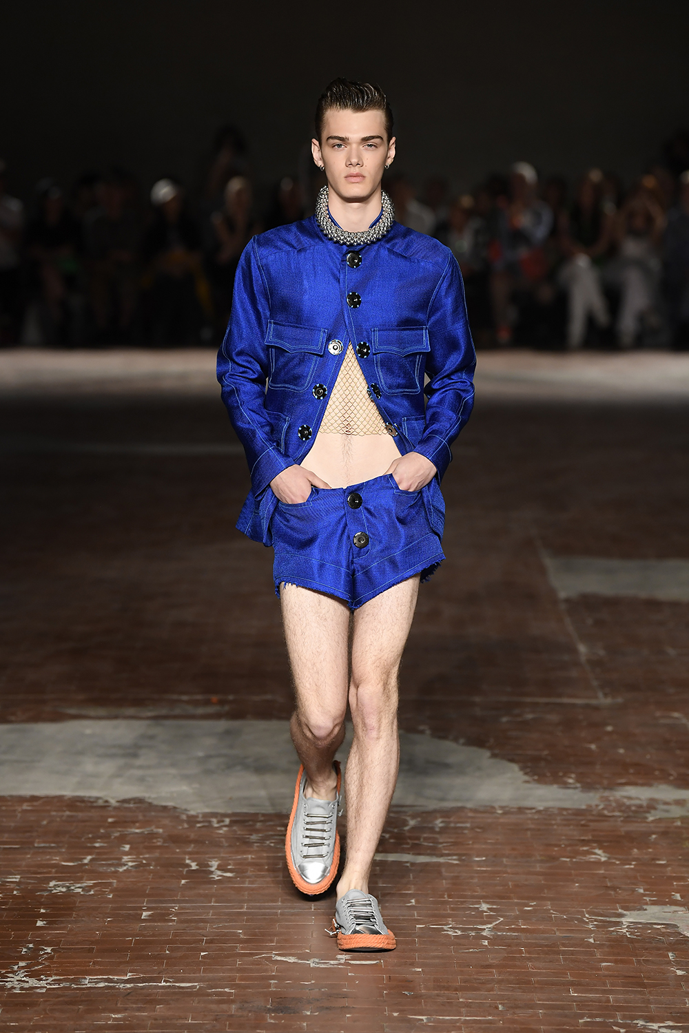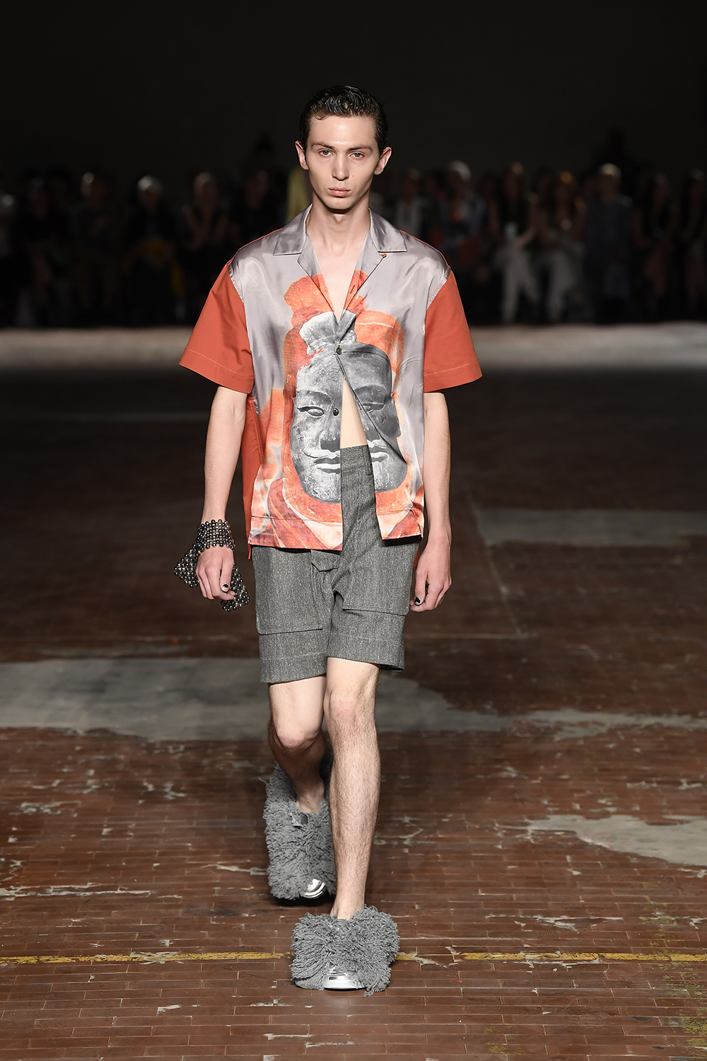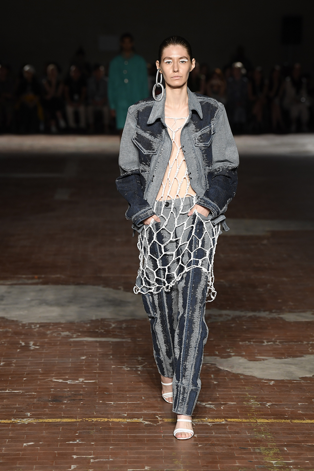 此系列中,来自苏州的迷你竹绣编织技巧被采用,工时高达 1,600 小时的珠绣与苏绣的细腻手法成就了系列中的丰富肌理层次;手工打磨的洗水牛仔与蒙古族艺人手工针织的类似防护网的大孔网衫,也同时在此系列中被介绍;当代中山装的延续用新颖的设计手法继续在系列中呈现。另外,CONVERSE x PRONOUNCE 合作的概念鞋款也在秀上进行了首发,PRONOUNCE 用最擅长的手工艺技巧与硬软材料的结合,与 CONVERSE Jack Purcell 系列产生了有趣碰撞。