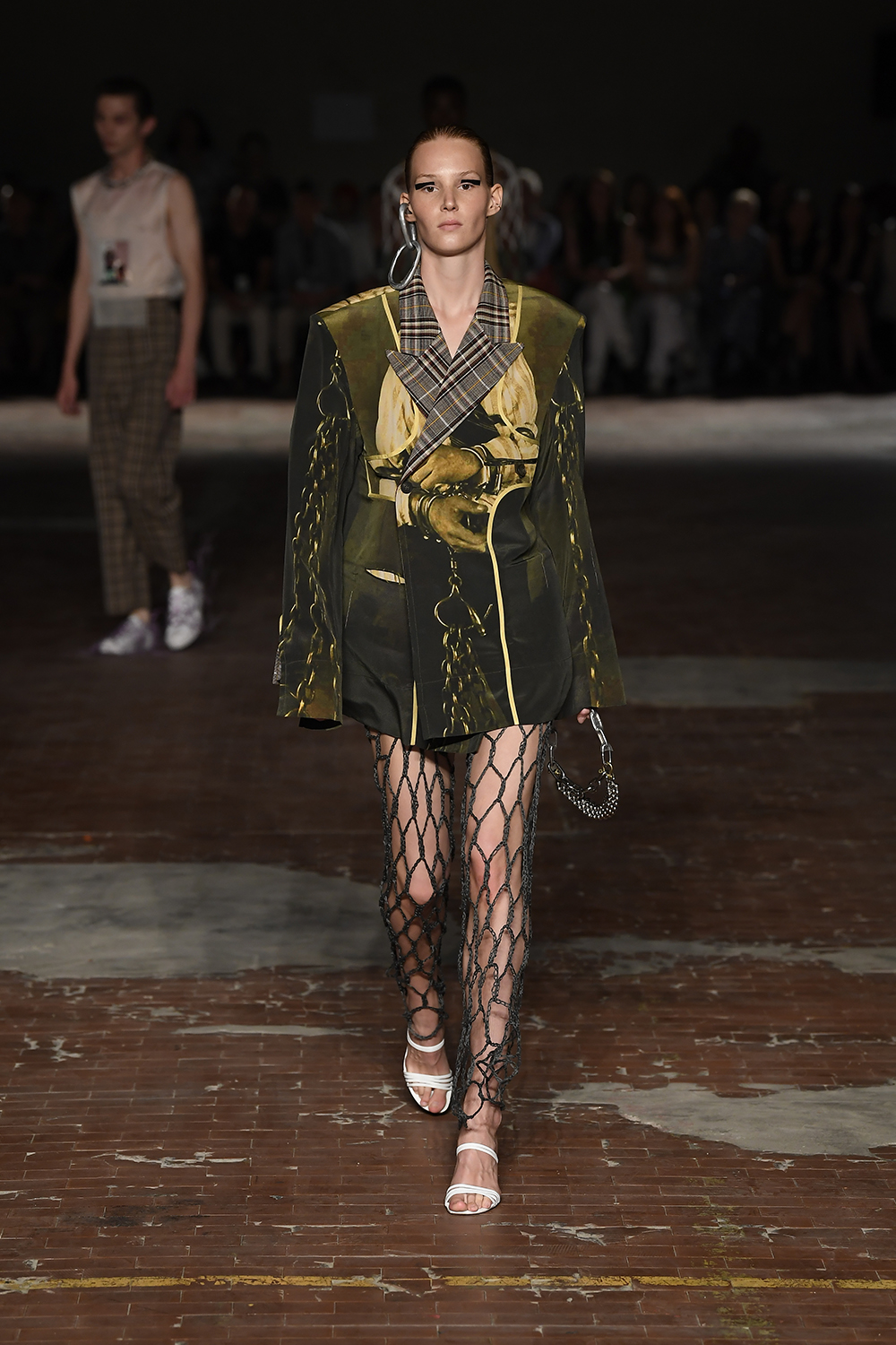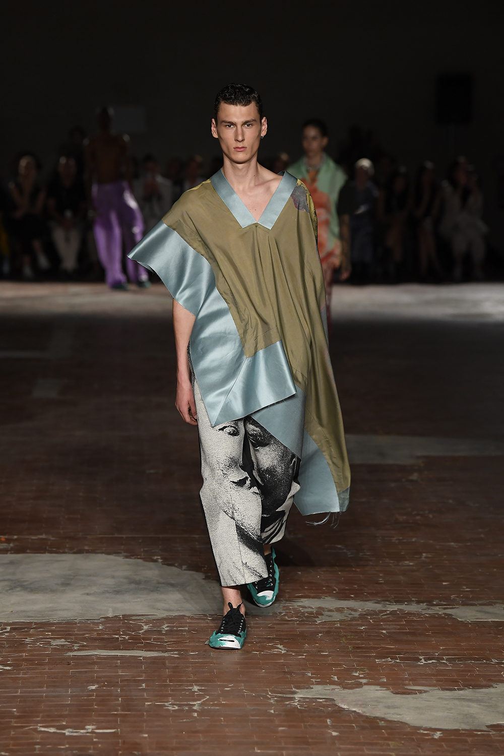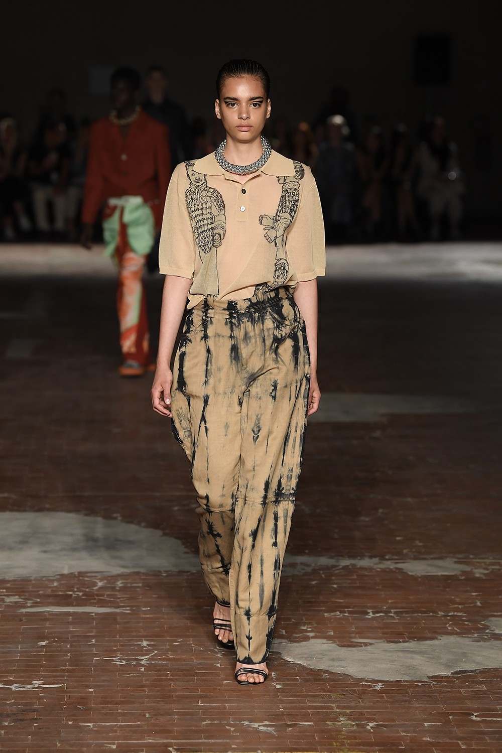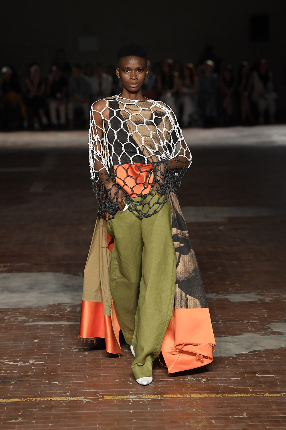 中国设计师组合 PRONOUNCE 因由对兵马俑现场的造访与观察,启发了品牌 2020 年春夏系列的设计。坚守的士兵,上亿张面孔与坚持在挖掘过程里的笃定与坚韧都令人触动,或宏大或渺小,在永恒的历史中你的个人意义与独立精神总会留下自己的那道光。这样冲突下的美感,PRONOUNCE 将发布会想象为一个挖掘现场,模特们仿佛刚被挖掘出的兵俑般神采各异,有的完整、有的随支离破碎却神气清奇,PRONOUNCE 以观察者的视角为人们呈现了其思考世界的角度,目的是引发共鸣,启发更多的人类探索。无论是不同的性别认同、文化边界,那都是流动的,可以被打破的。