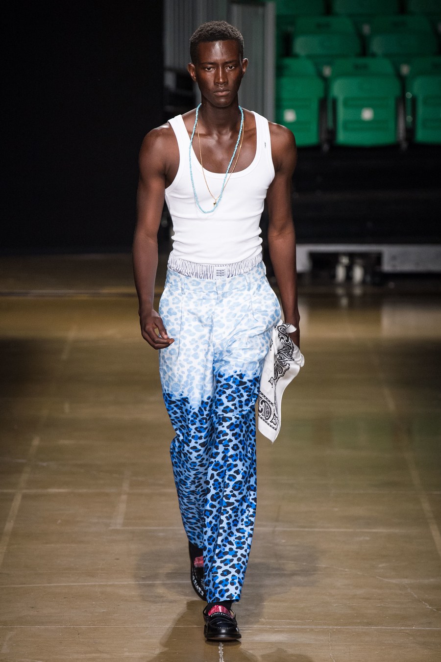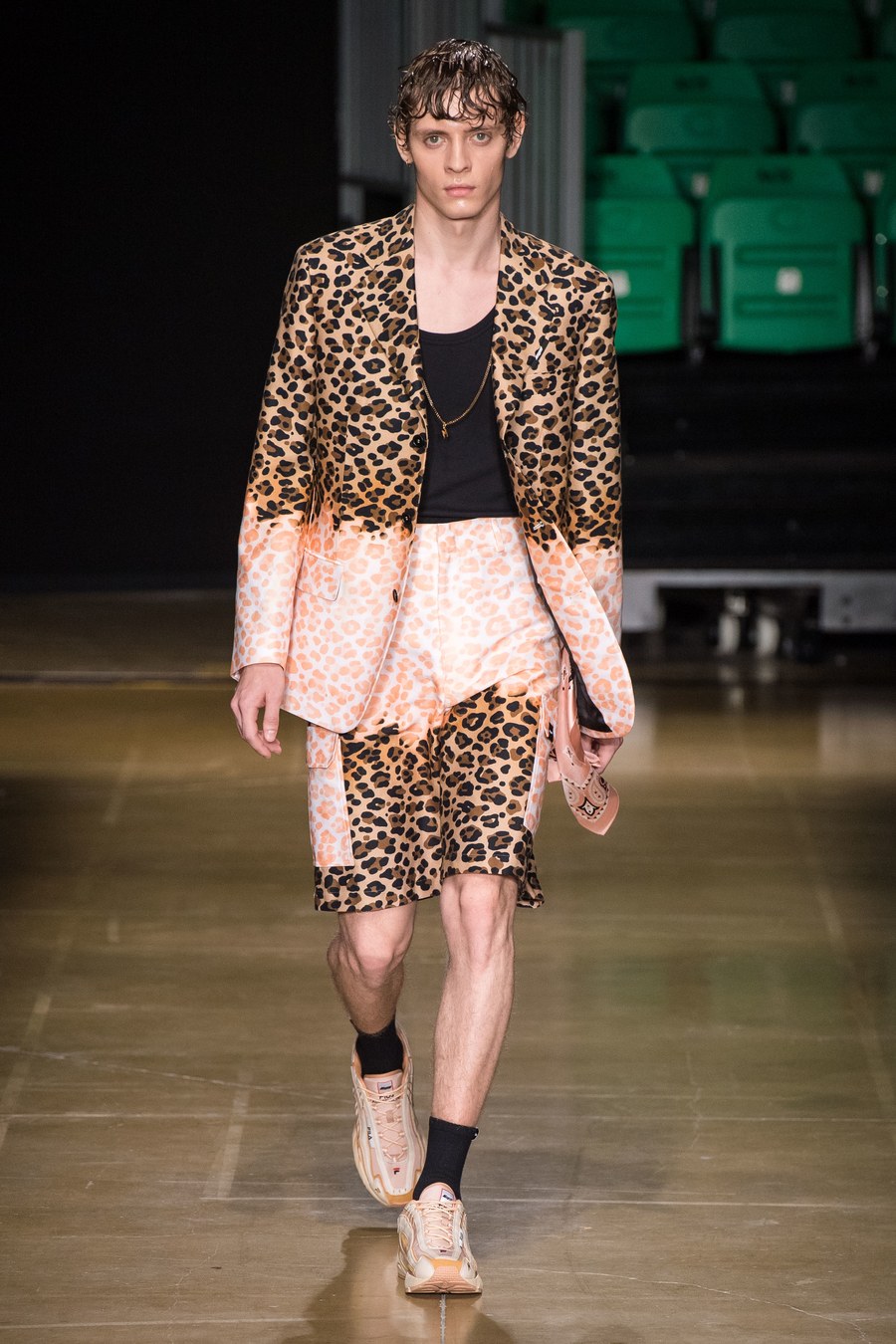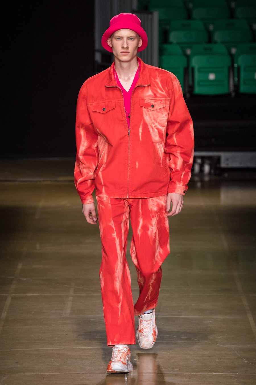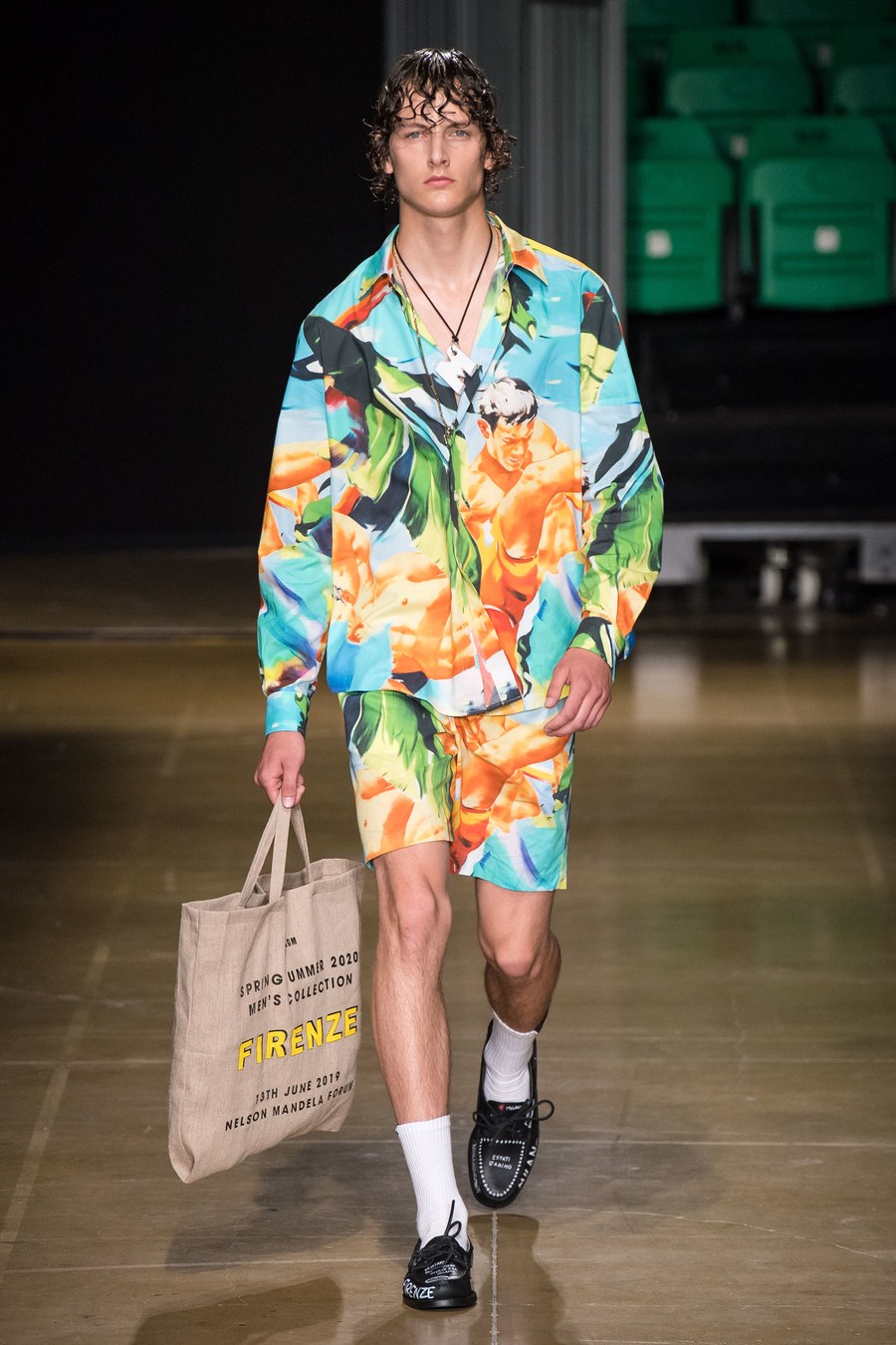 MSGM 耗时六个月完成的 2020 春夏男装系列最终在意大利 Pitti Uomo 男装展上呈现。本季系列充斥着缤纷的海滩风格以及随性的俱乐部形象,模特们纷纷身着布满龙虾、罂粟花、佩斯利头巾等元素的宽松衬衫,丰盈的印花图案与浓郁的色彩碰撞。衣不蔽体的底裤再加以模特湿漉漉的发丝,四处充斥着荷尔蒙爆发的夏日风情。此次 MSGM 还邀请到了画家 Norbert Bisky 合作打造了肖像图案印于衬衫、短裤和尼龙背心等单品之上,十分具有迷离朦胧感。除此之外,MSGM 在本季也十分注重服装工艺方面,其中一系列扎染的丹宁服饰尤为惊艳,不禁令人联想到斑驳阳光映照下的蔚蓝水波纹。