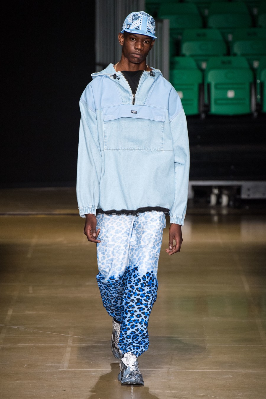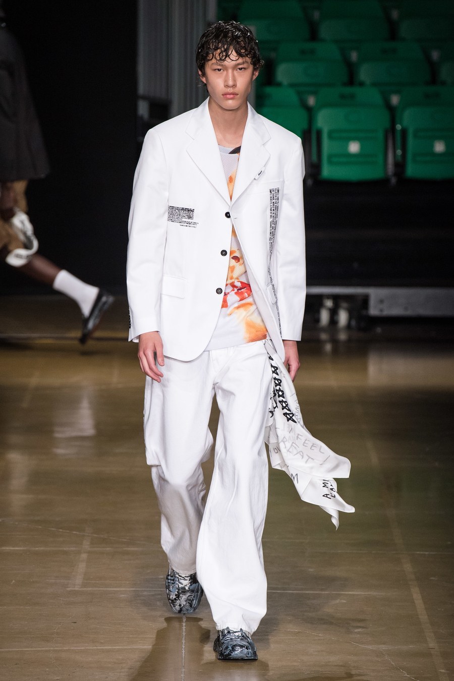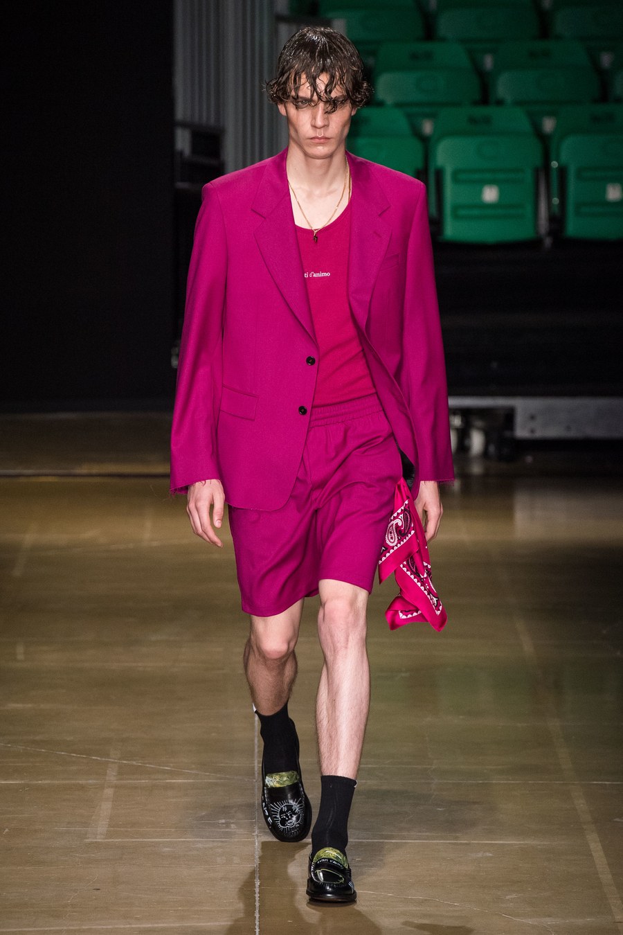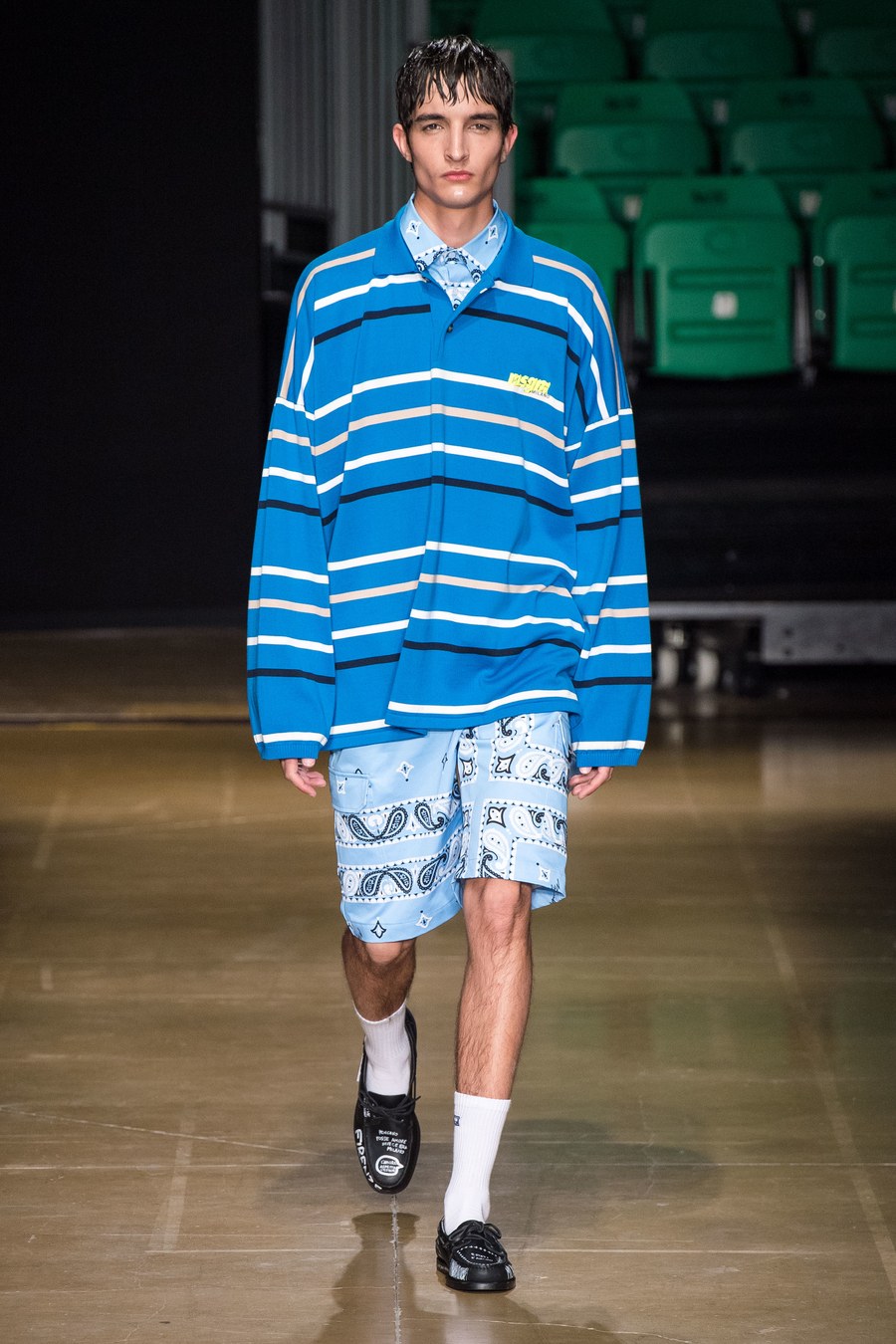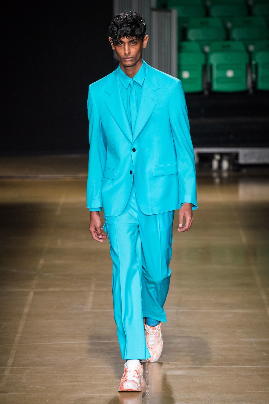 MSGM 耗时六个月完成的 2020 春夏男装系列最终在意大利 Pitti Uomo 男装展上呈现。本季系列充斥着缤纷的海滩风格以及随性的俱乐部形象,模特们纷纷身着布满龙虾、罂粟花、佩斯利头巾等元素的宽松衬衫,丰盈的印花图案与浓郁的色彩碰撞。衣不蔽体的底裤再加以模特湿漉漉的发丝,四处充斥着荷尔蒙爆发的夏日风情。此次 MSGM 还邀请到了画家 Norbert Bisky 合作打造了肖像图案印于衬衫、短裤和尼龙背心等单品之上,十分具有迷离朦胧感。除此之外,MSGM 在本季也十分注重服装工艺方面,其中一系列扎染的丹宁服饰尤为惊艳,不禁令人联想到斑驳阳光映照下的蔚蓝水波纹。