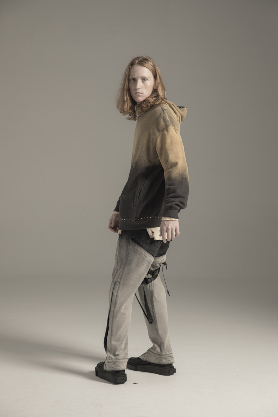 LIFEGOESON 日前正式发布 2019 秋冬系列造型 Lookbook,在 “It’s a bad day,Not a bad life.” 主题下,将我们都经历过或正在经历着糟糕和窘迫利用设计细节所表达。从颜色,线条,声音,画面,重新组合到这次产品中,LIFEGOESON 利用扎染、破坏、拼接等处理手法带来衬衫、卫衣、夹克、裤装等丰富单品,此外铆钉的运用仿佛也在诉说着 “挣扎” 的故事。