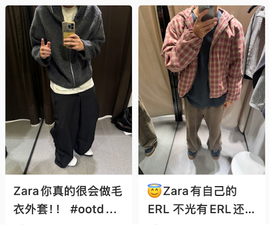 可以发现,ZARA 当前不少新季或过去一两个季度的款式,无论是夹克、帽衫还是裤装,都非常符合当下流行的风格趋势。成功吸引了大量年轻消费者的关注与尝试。另外,Martin Cortis 曾上身的一件 ZARA「过季折扣款」夹克,也在曝光后迅速售罄,进一步放大了品牌在年轻消费群体中的影响力。