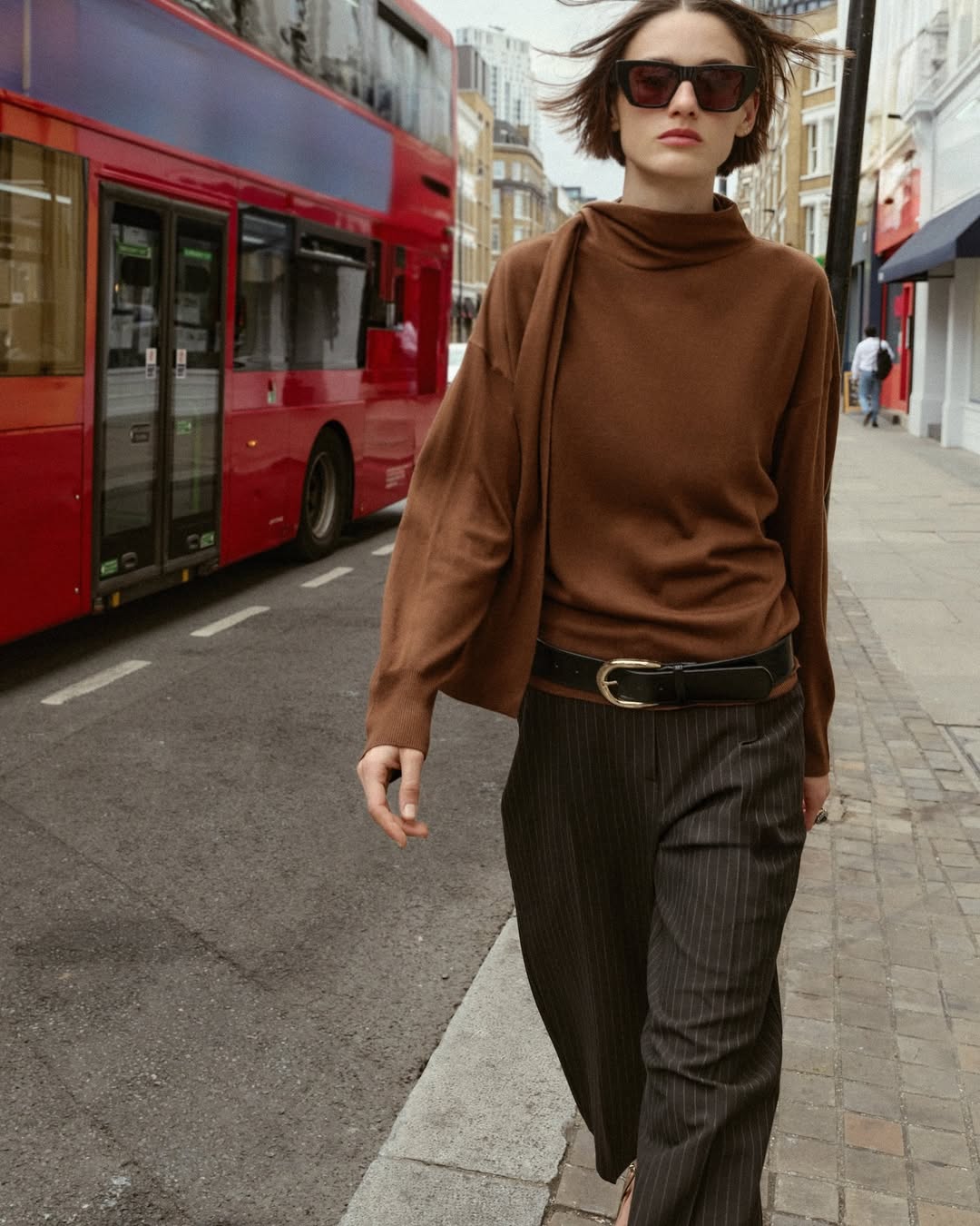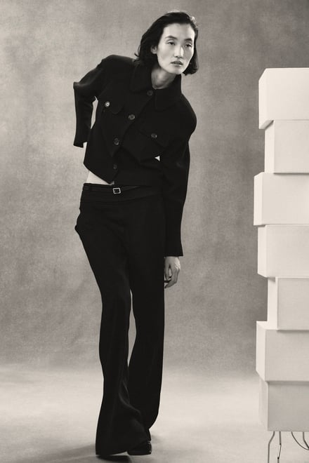 同样是 2023 年,ZARA 与英国设计品牌 STUDIO NICHOLSON 的合作引起了一定关注,双方将有意识的设计推向了新高度。流线型外套、针织品和宽松裤子被赋予更具个性化的结构,完美融合了两个品牌的调性,注入优雅气息,展现了 ZARA 单品的「高端化」潜力。而 ZARA 的转型,也正是从 2023 年开始。