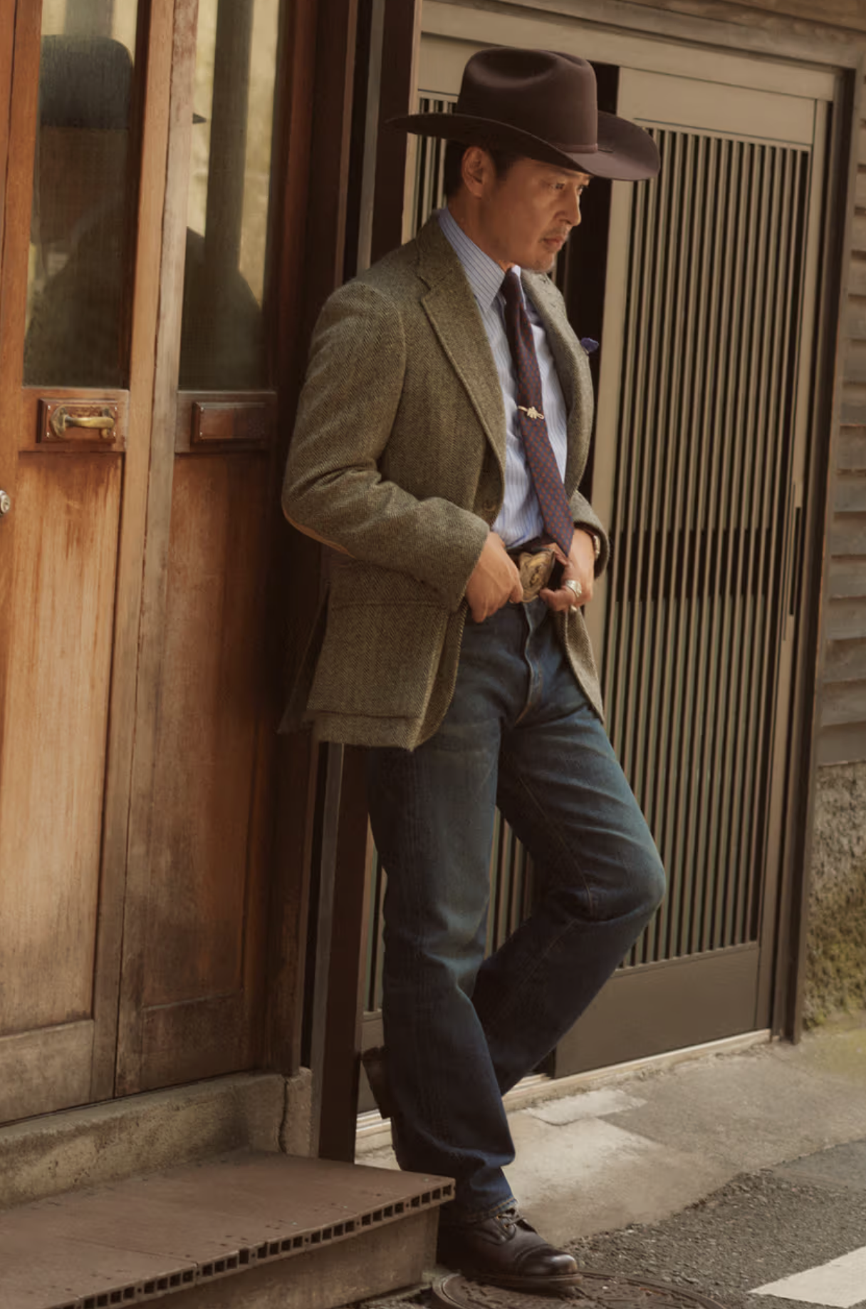 Polo Ralph Lauren 对职场美学的贡献远不止于此。从斜纹软呢西装到宽尺寸领带,从条纹衬衫到博勒帽,每一件单品都在诉说着品牌对传统与创新的独特理解。特别是在 1991 年,Polo Ralph Lauren 推出了 The Big Oxford 系列,通过对牛津衬衫的 oversize 改造,开创了松弛优雅的职场新形象。这一革新启发了《POPEYE》前时尚总监长谷川昭雄,随着后期 City Boy 风格的大热,现代的职场着装规范也告别了所谓的刻板与紧绷,开始朝着宽松化剪裁、松弛感造型方向进化。