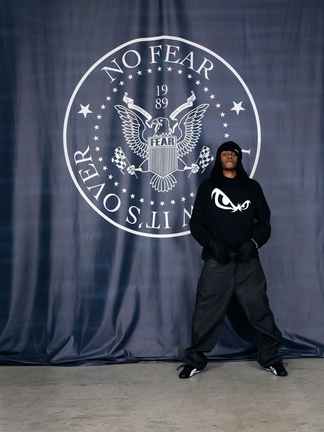 至少在经历了辉煌、没落,直到颠覆转型后,重新被这个时代、不同领域 Icon 再次爱上的 No Fear,终归没忘记当前仍在品牌徽标上印着的、代表诞生年份的「1989」;当然,也没忘记那股从诞生起便「目无王法」的「无畏」精神——只是,如今换了一种新的表达。