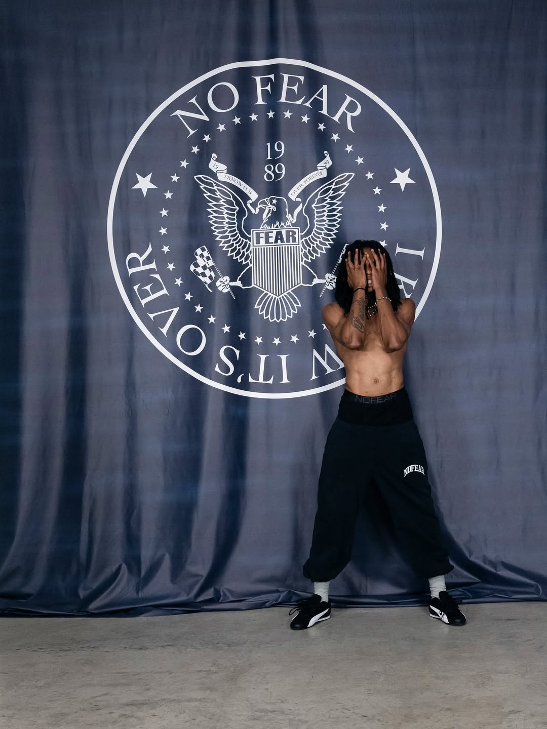 高频的上身,加之 Carti 在当下说唱音乐、先锋时尚领域的恐怖影响力,让愈发多人开始好奇——No Fear 究竟什么来头、能这样牢牢抓住「顶流」的心?也正因如此,No Fear 的「前世今生」,开始浮出水面。