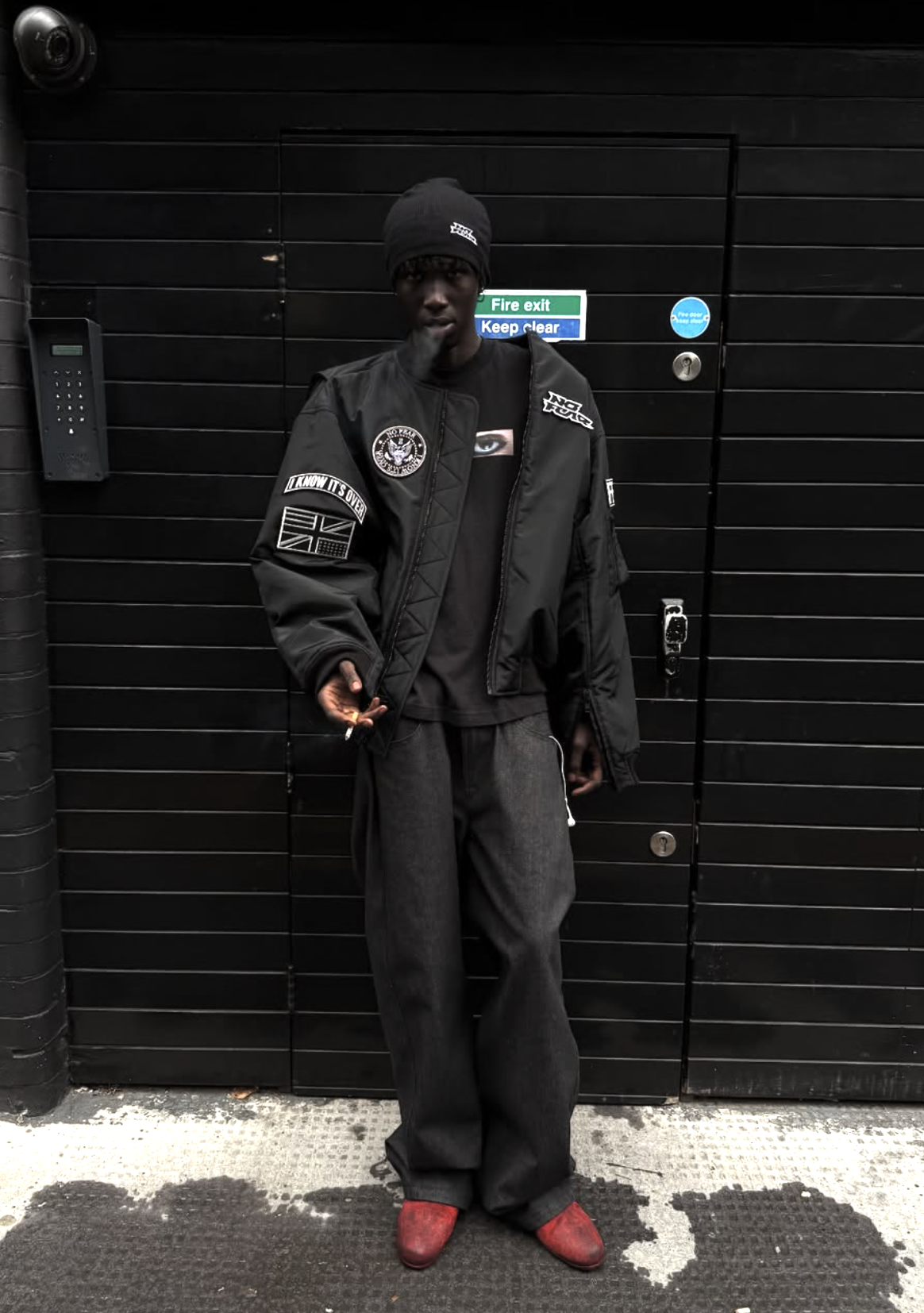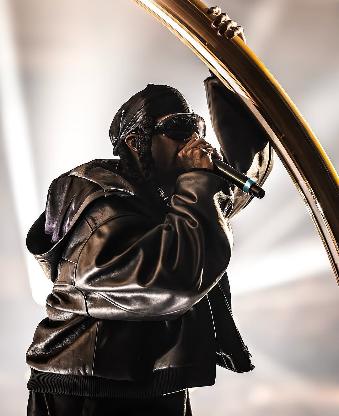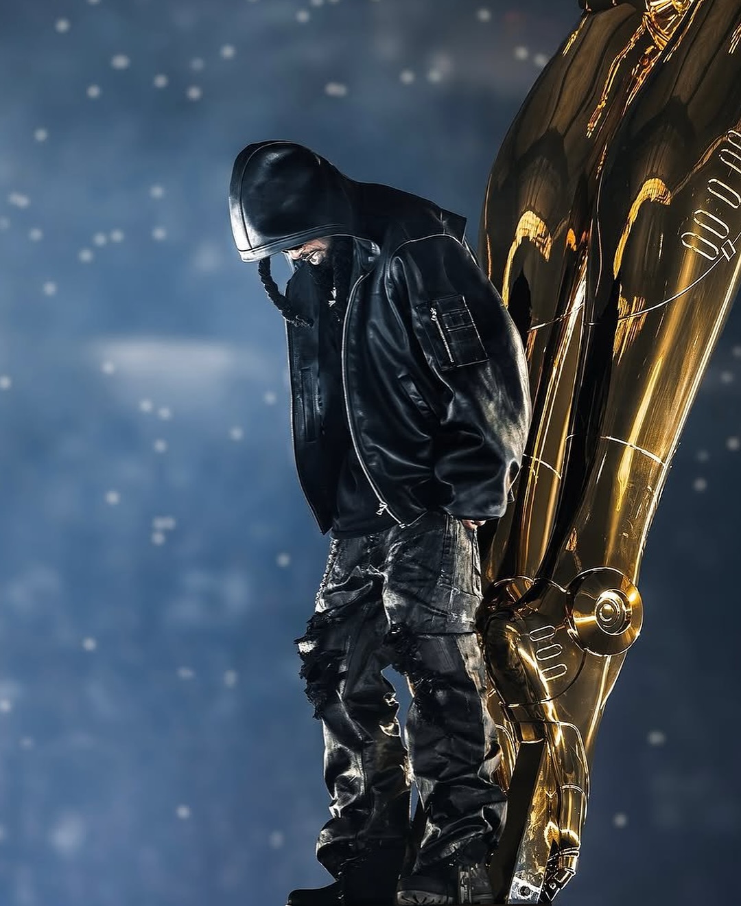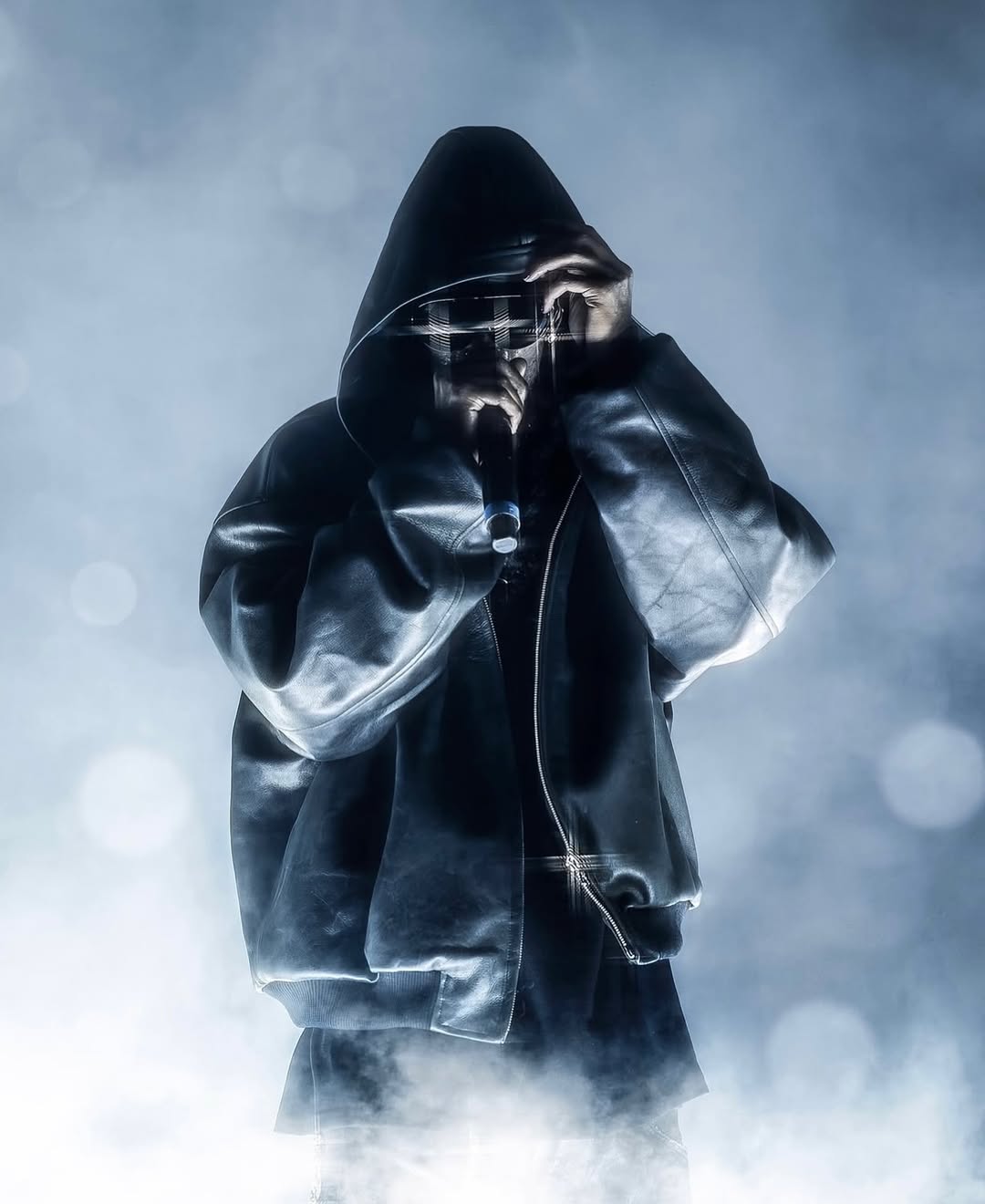 更早些的去年 5 月,Carti 也在演出中将 No Fear 的全皮连帽 Bomber、油洗糜烂牛仔裤单品,作为自己极具视觉张力的舞台造型选择。