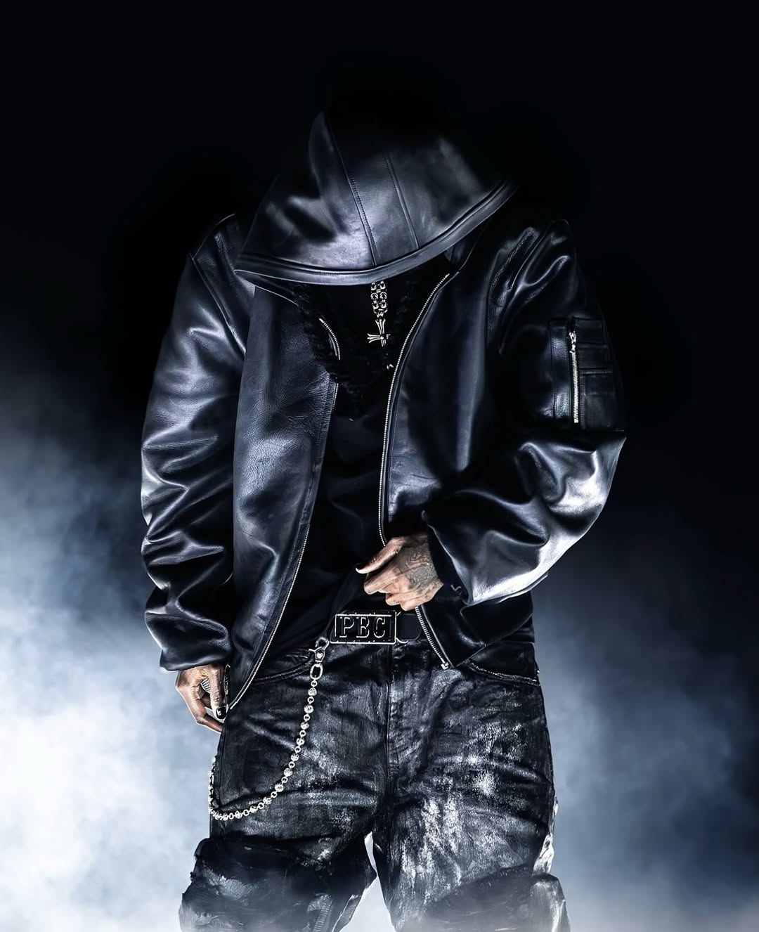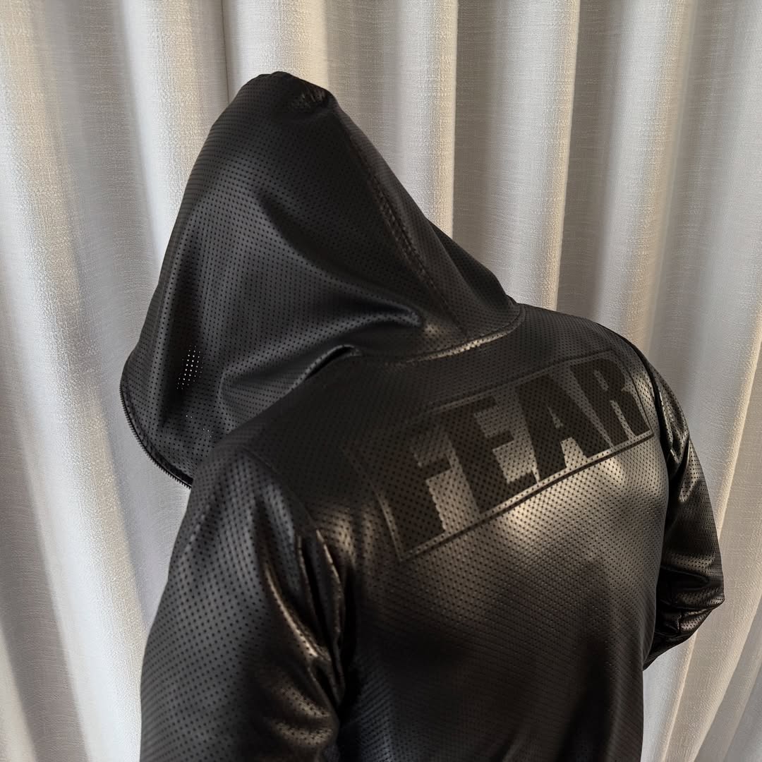 Carti 上身的 No Fear 全皮连帽 Bomber、油洗糜烂牛仔裤 | Via Instagram @nofear