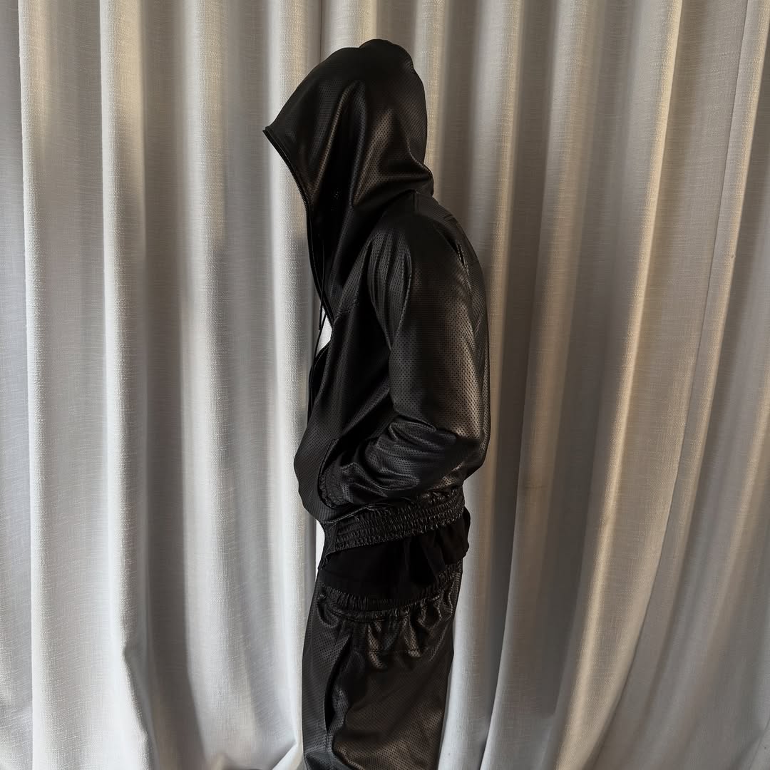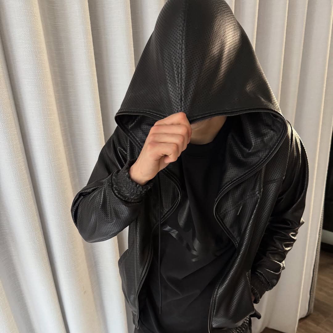 其中最为人瞩目的,当属 Carti 身上的这件孔洞皮革连帽外套——契合 Opuim 视觉的全黑肃杀色调、精细柔软的全羊皮材质,当然,还有通体遍布的孔洞设计,让不少人起初猜测这是否又是来自 Hood By Air 或是 Givenchy、Balmain 等先锋时装品牌的稀有 Archive 作品。