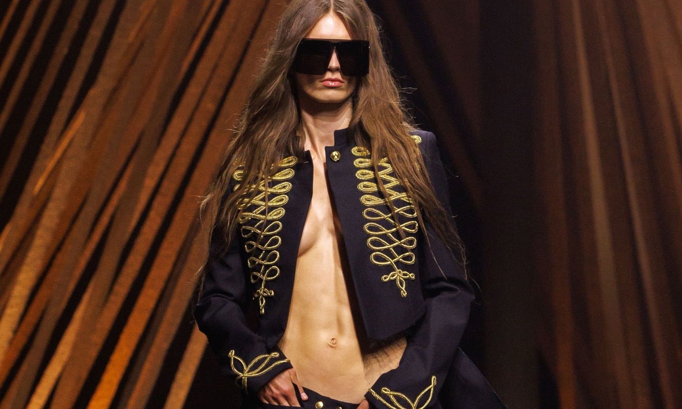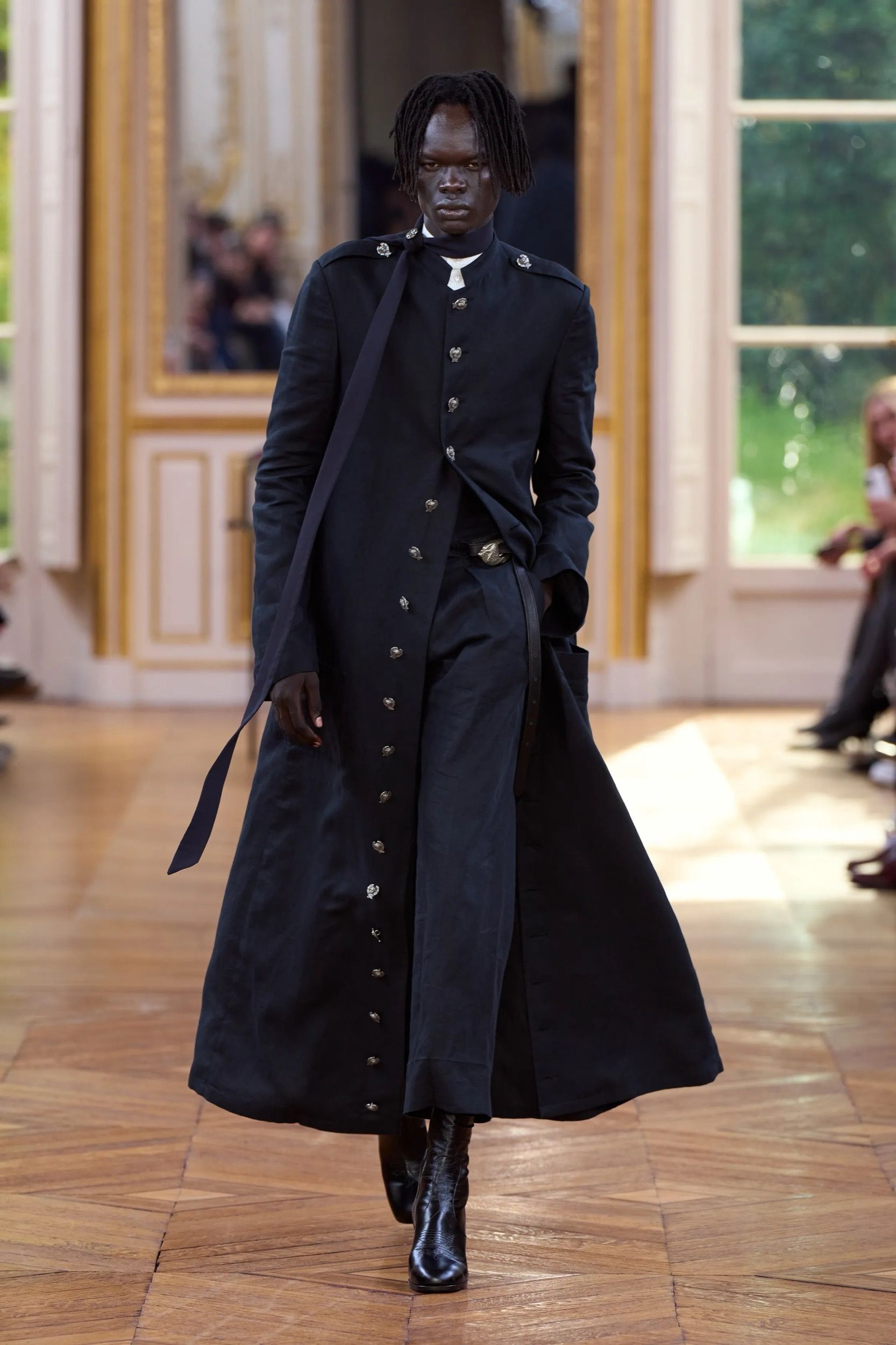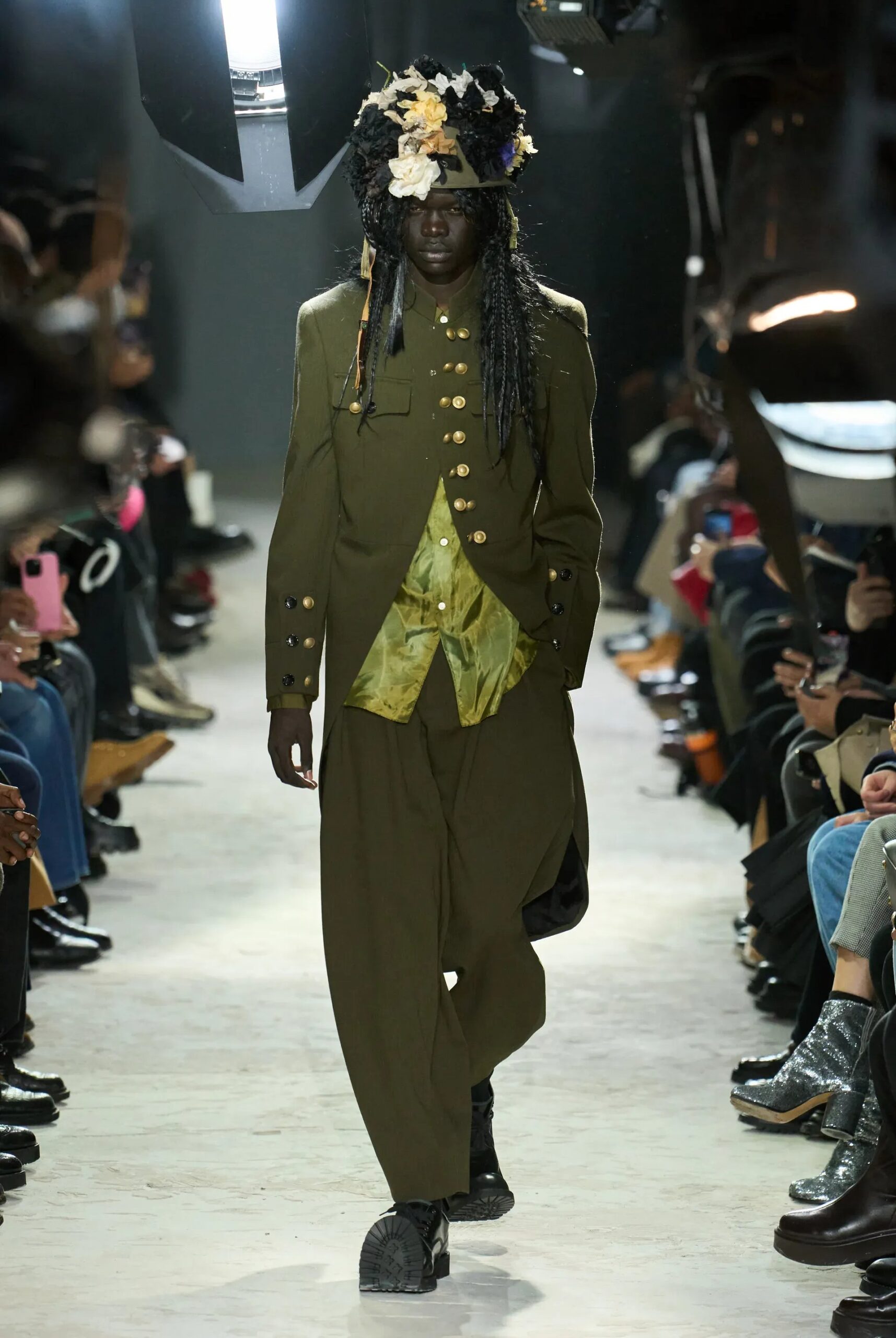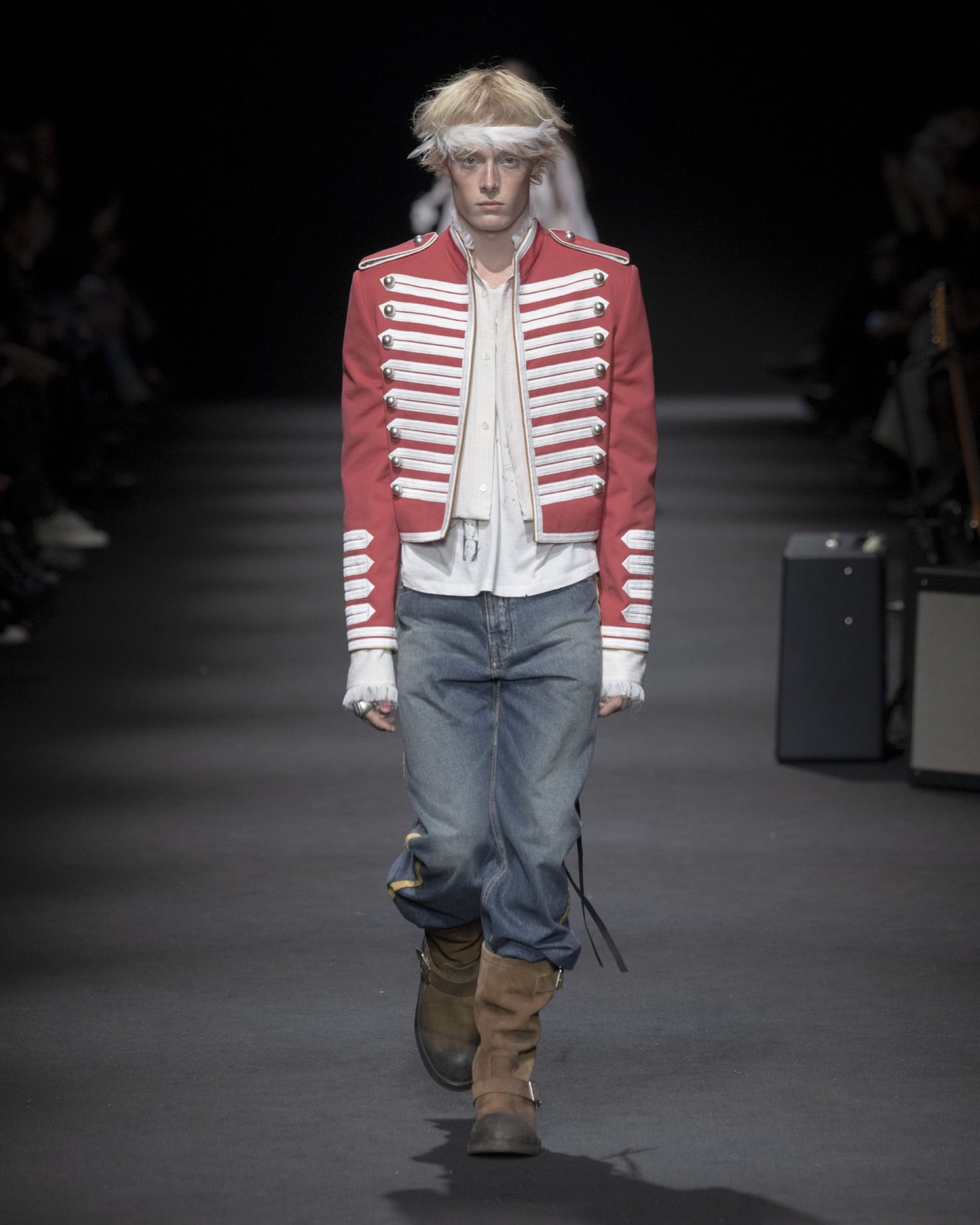 COMME des GARÇONS HOMME PLUS 的秀场上也能看到类似的双排金纽的军装外套;刚刚卸任不久的 Olivier Rousteing 也在 Balmain 的最后时期,将整个男装冬季系列都几乎献给了这一风格:编织流苏、华丽金线与肩绳装饰无所不在;Jonathan Anderson 为 Dior Men 打造的首个系列中,也可见拿破仑夹克式的细节——褶边领、骑士风外套、斗篷与金线衬衫。