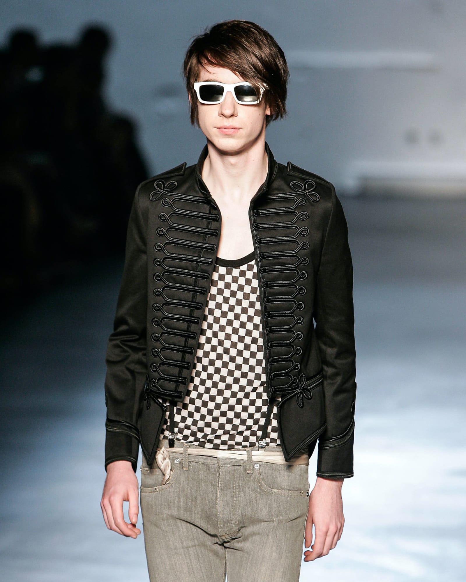 他在 Saint Laurent、Dior Homme 任职期间,都曾以拿破仑夹克为主的军装西装,通过利落、冷峻的新诠释作为其标志性的设计符号。