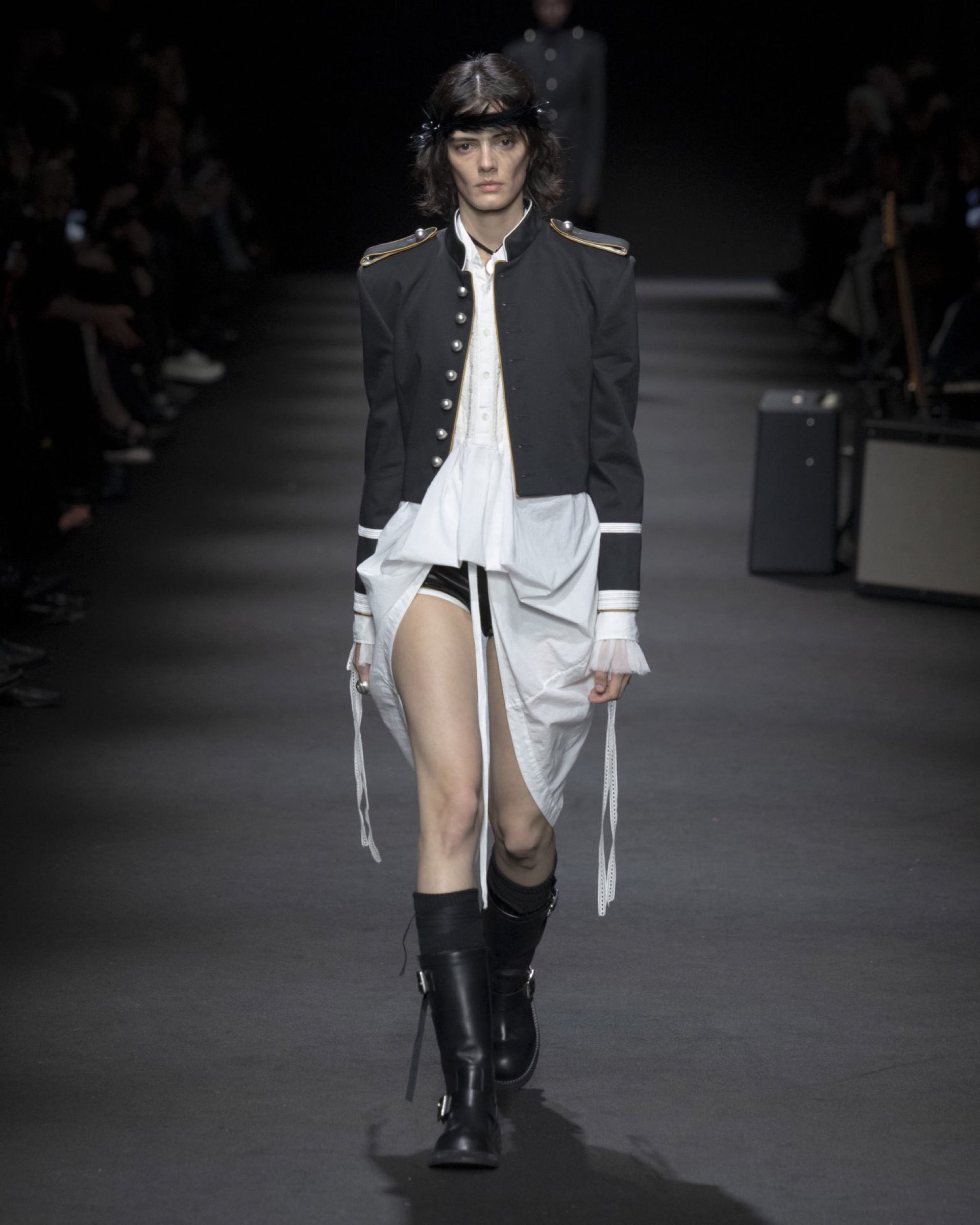 其中,Stefano Galici 率先在 Ann Demeulemeester 新系列中呈现了多种色彩与长度的男女款军装外套;Alexander McQueen 则以更具感性与女性气质的方式诠释这一风格。