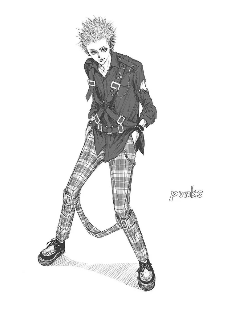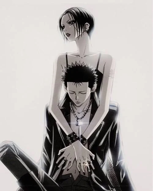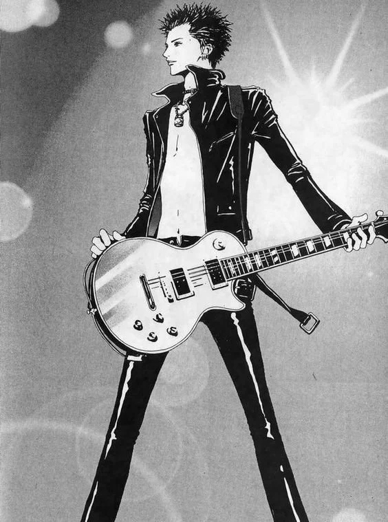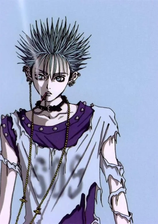 而这一点在角色剧情的呼应上也有更直接的体现,要知道本城莲的原型便是 Sex Pistols 贝斯手 Sid Vicious,而他与大崎娜娜的关系,常被映射为 Sid Vicious 与 Nancy Spungen 现实中的极端爱情。与 Sid 类似,剧情中莲对爱人的热情近乎执念,而在造型上,彼此也能找到许多借鉴之处。