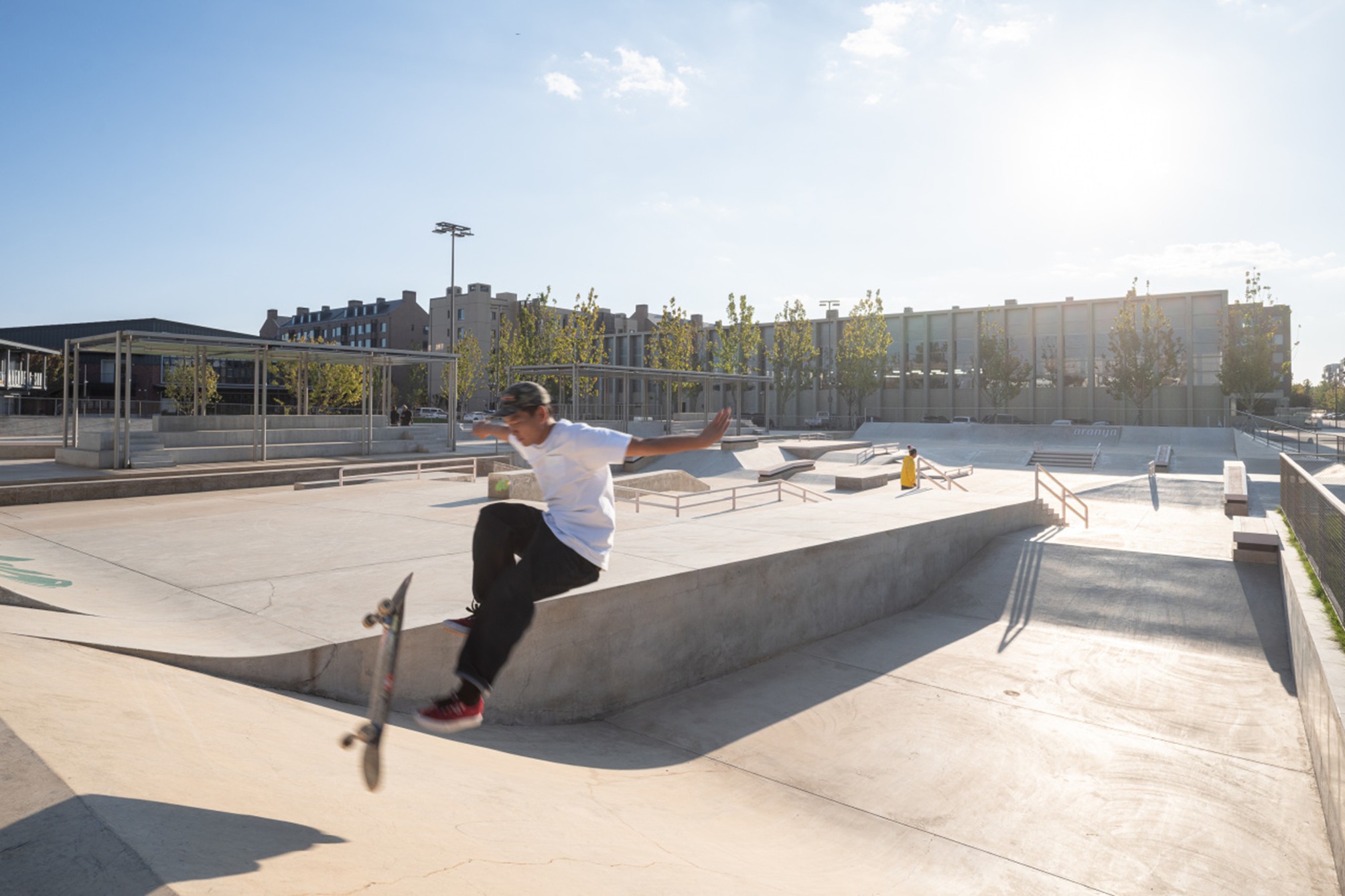 你会看到小朋友会自然坐到滑道边缘吃冰激凌、家长躺在草坪上看孩子滑行、滑手休息时靠在混凝土面上聊天,功能和美学在这里没有分界线。