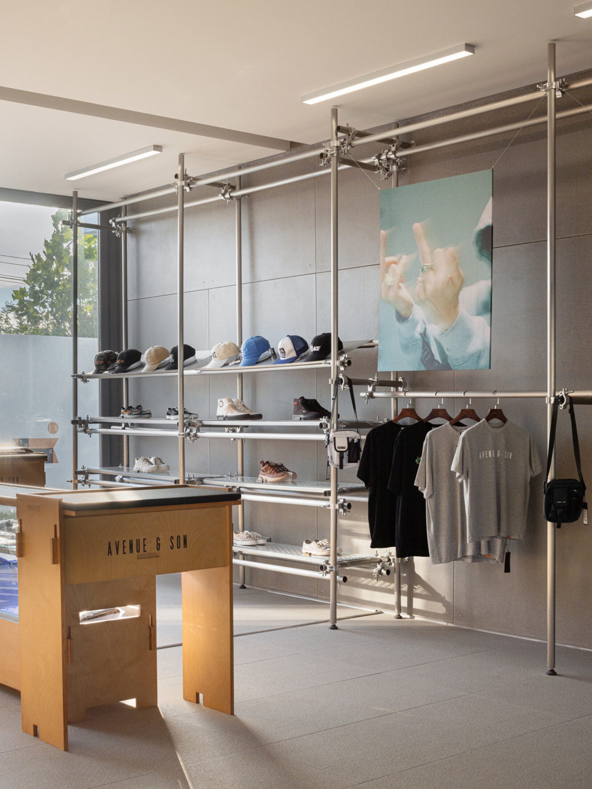 大道之子的零售店是整个项目中最能体现文化态度的地方。团队没有用昂贵材料,也没有构建「高端视觉体系」,而是选择留白、快闪道具再利用、轻工业气质。