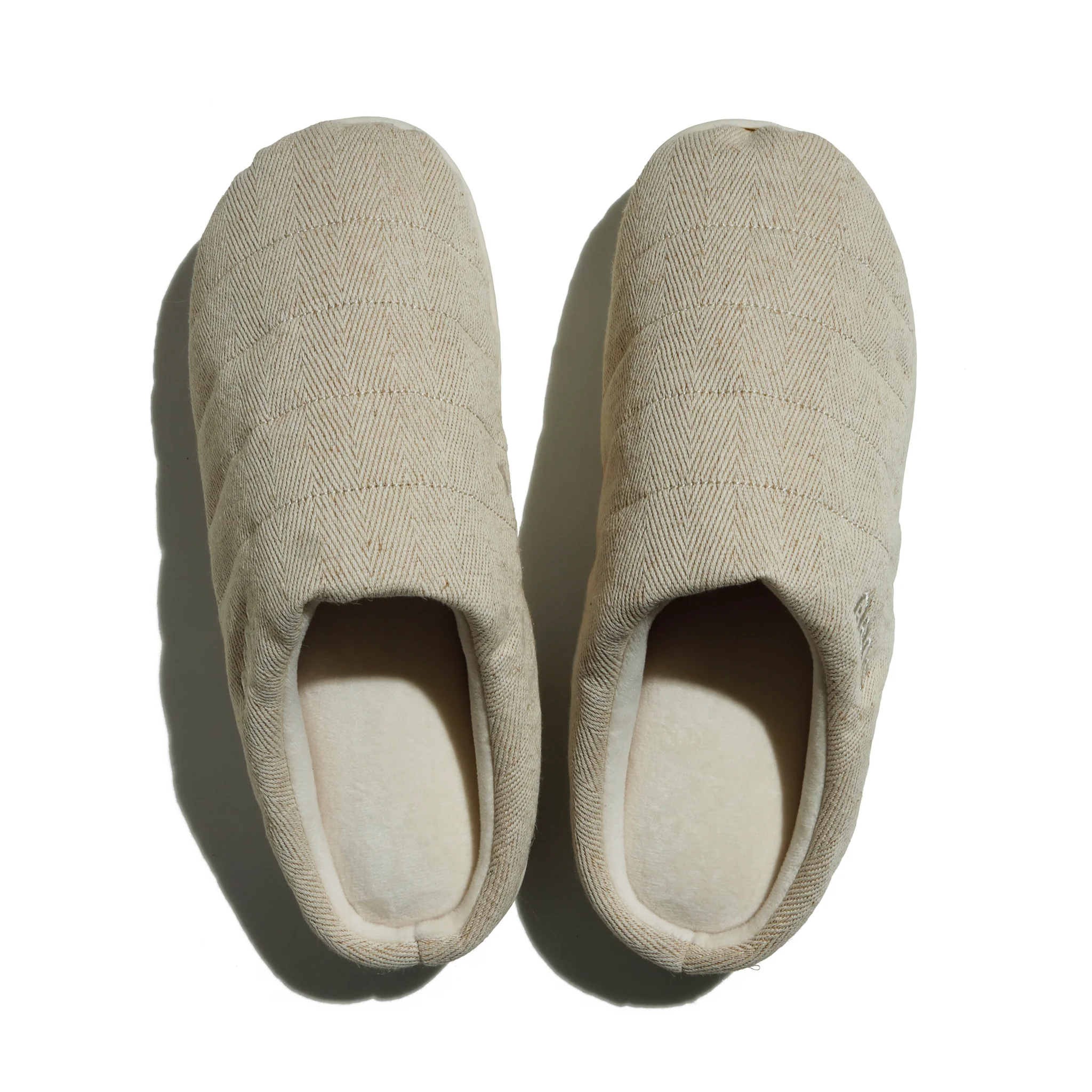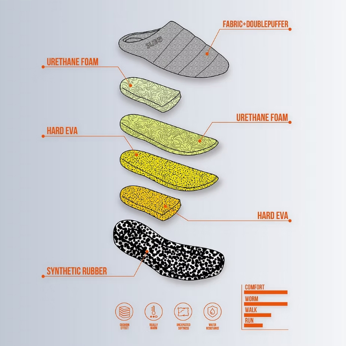 这就不得不提到 SUBU 的诞生根源,其鞋款设计的最初目的与日本当地的气候以及生活习惯有着直接的联系。一方面,由于常年湿度较大,日本在屋内使用高于地面的榻榻米作为居住地板的习惯非常普遍,这样的羽绒拖鞋能够更加方便的在气温较低的寒冷季节进出室内外。而作为一个已经将户外运动融入进生活的国家,这样一款兼具生活与户外两种场景的设计,本就诠释了品牌「贴近生活的设计产品」的初衷。