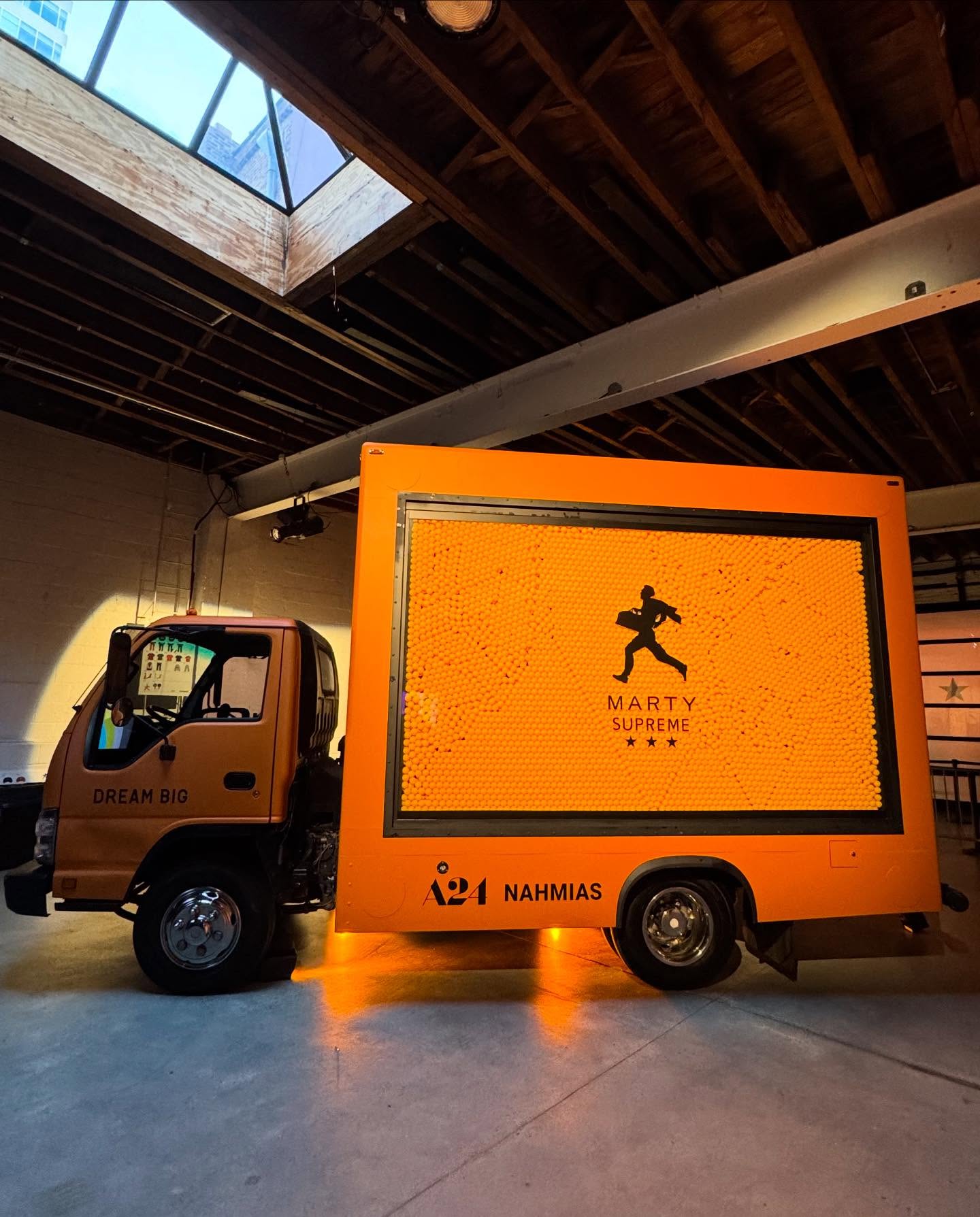 这种内容上的高品质和强劲口碑,为前置营销事件提供了坚实的价值背书。然而,营销方并未采用传统、正式的宣传,而是更倾向于贴近青年文化的「邪典式」包装:快闪店中用乒乓球头装饰的人体模型、播放体育界偶像的集锦,以及 Timothée Chalamet 发布的滑稽宣传片(提议将自由女神像涂成乒乓球橙色)。