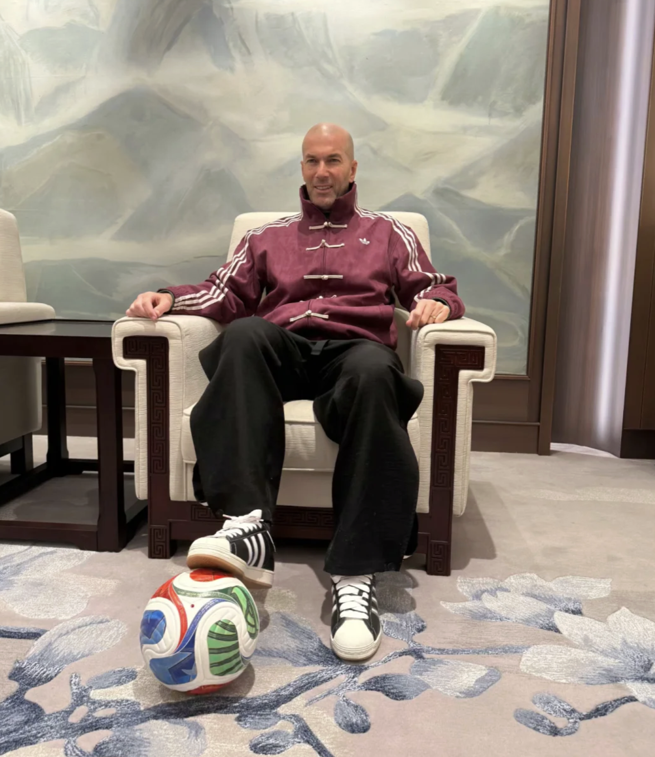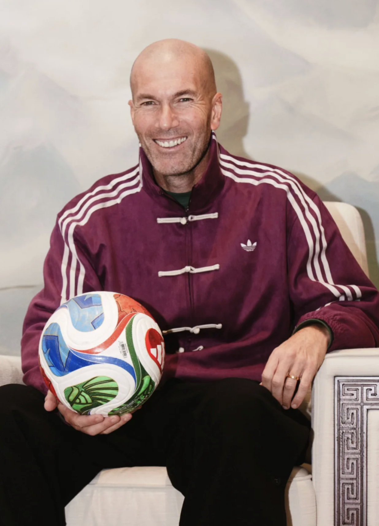 近期来华的足坛传奇齐达内,也上身唐装系列夹克 | Via adidasOriginals