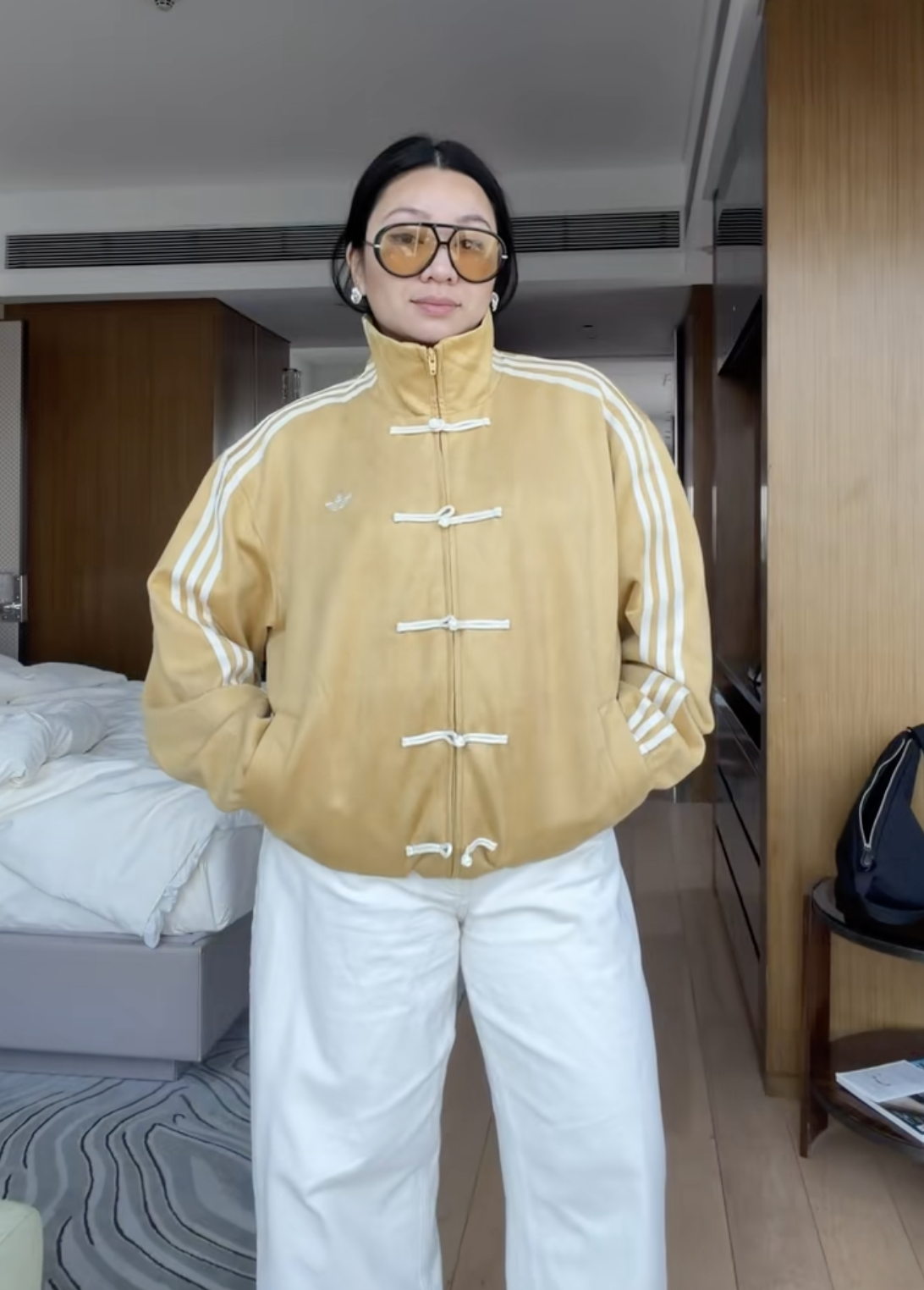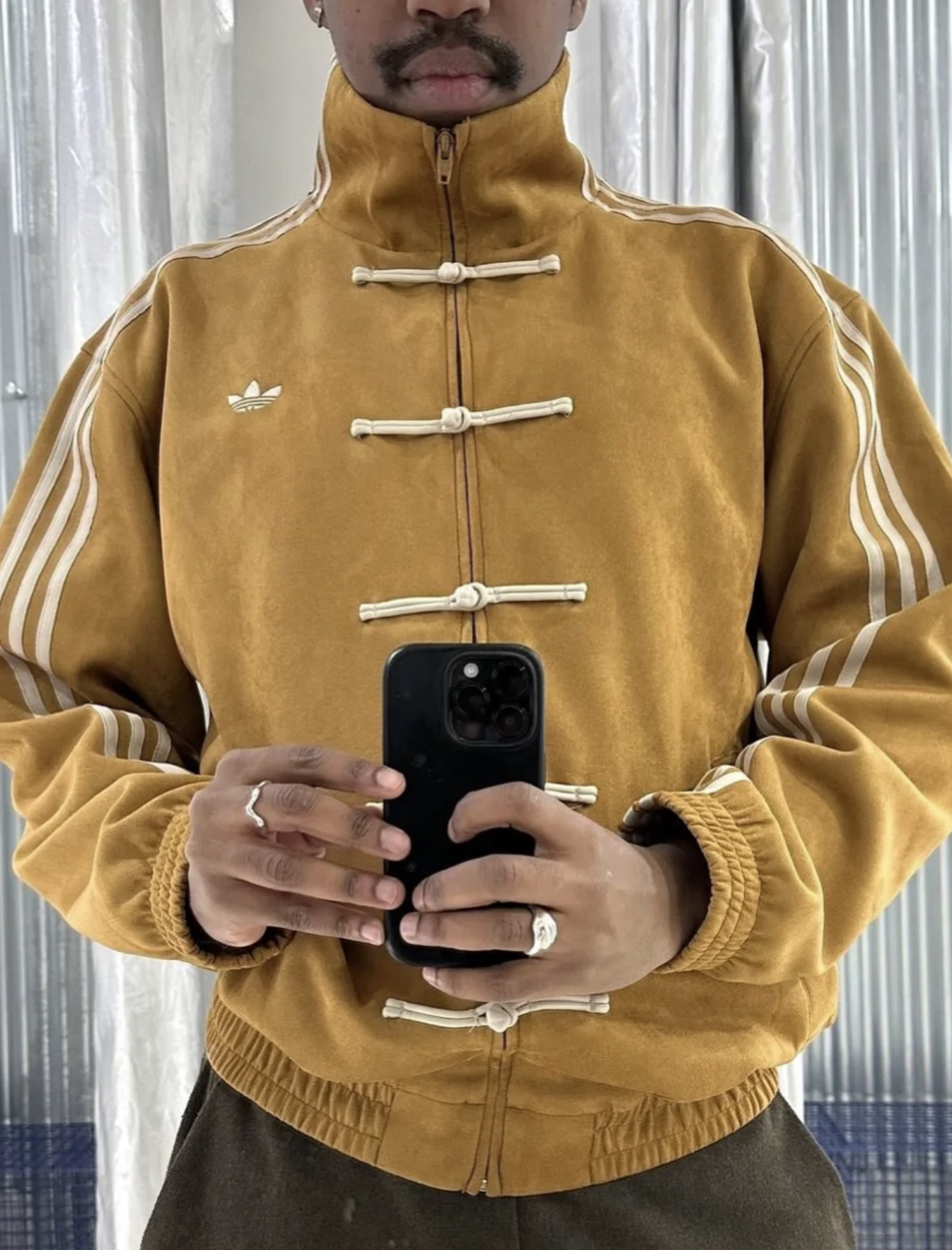 而这股「中式 adidas」的风,持续刮到现在——唐装夹克后续衍生的各种灯芯绒材质版本、收腰版本、甚至旗袍版本等各种单品,依然受到海外用户追捧。近期来华的足坛传奇齐达内,也是没忍住上身感受了一番。