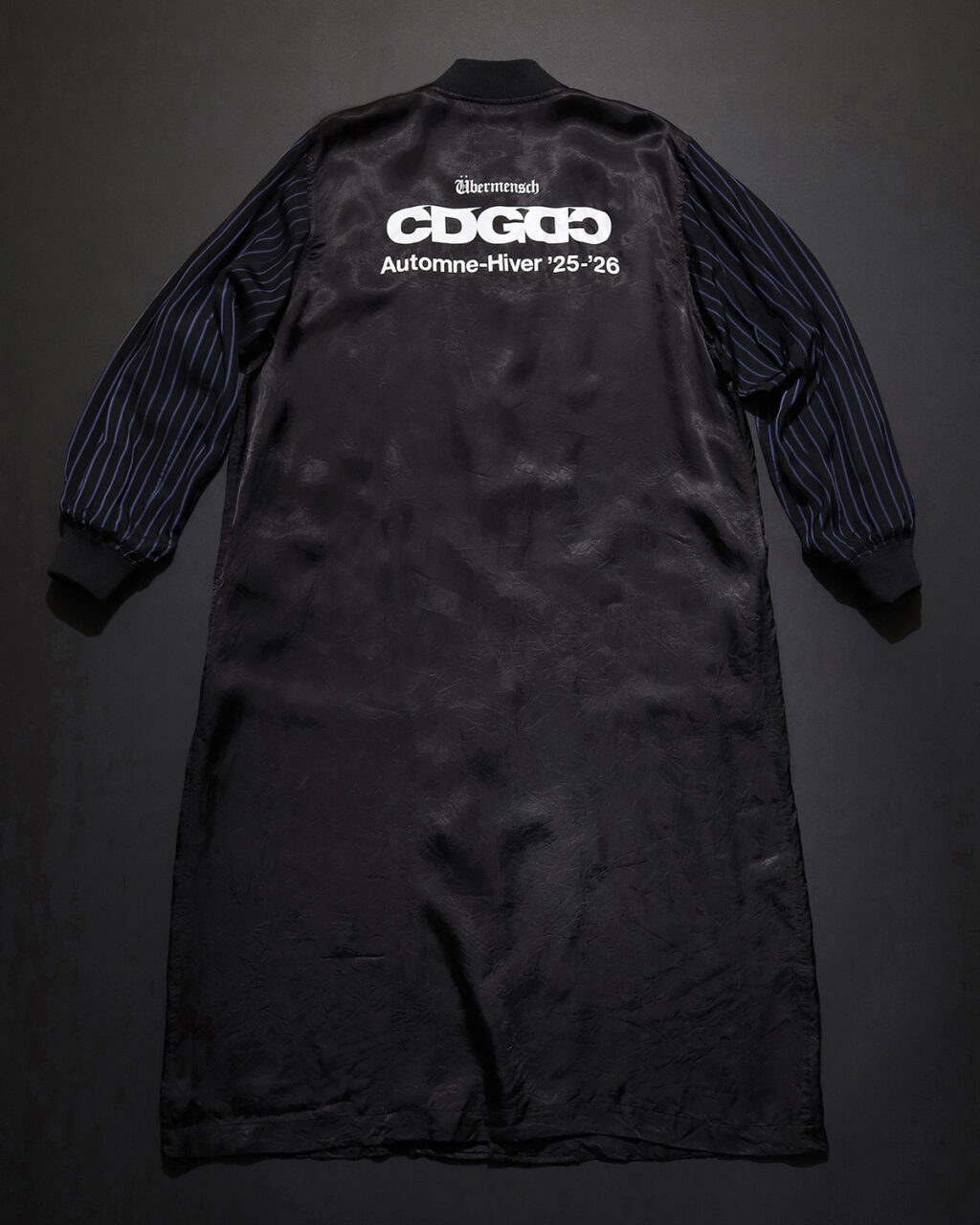 本次合作系列由 CDG 和 G-DRAGON 共同的创意理念催生,围绕专辑名「Übermensch」(德语中尼采哲学著作里的超人)概念推出员工外套、T 恤、帽子、背包和披肩等 10 款单品,主要的图案是「GD」的简称与 CDG Logo 的并置以及「Übermensch」的标志。