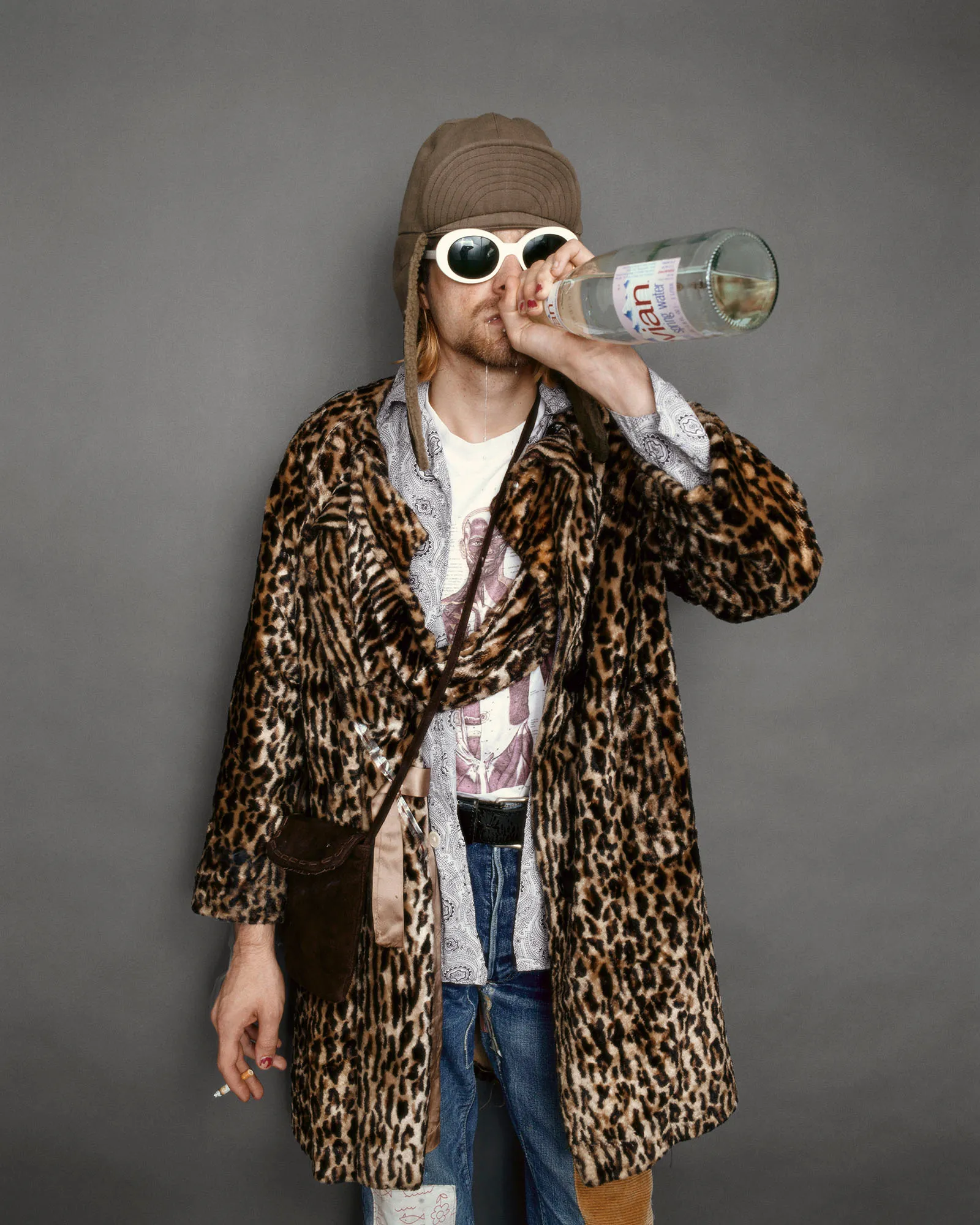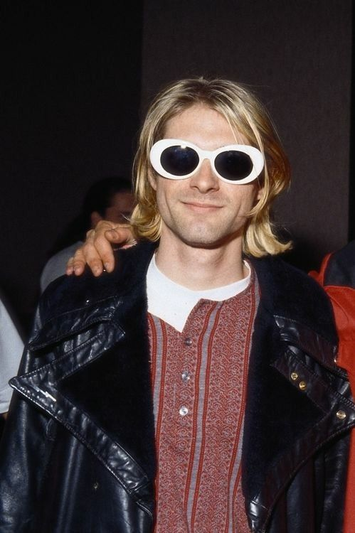 Kurt Cobain 并非第一个佩戴白色椭圆形墨镜的人,在他前面的还有 Audrey Hepburn,但正是他那种放松的反叛的态度,成为了影响许多人的特质。也因为 Jesse Frohman 的镜头,那剥落的指甲油,这副椭圆形墨镜成为 Kurt Cobain 反叛风格最鲜明的象征之一。