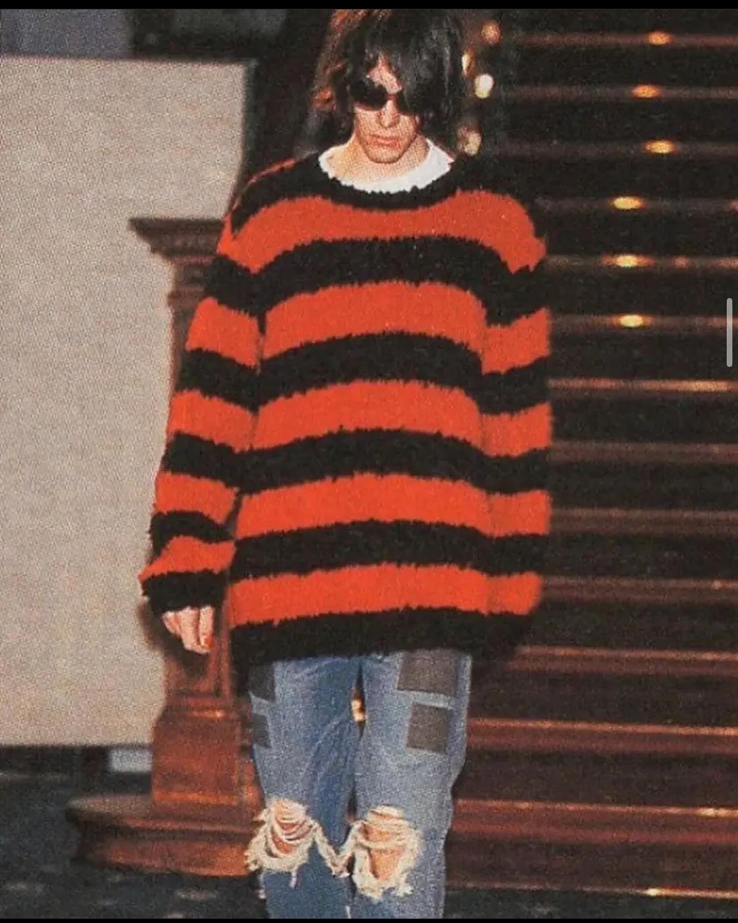 和他曾经在芝加哥演出身穿的撕裂黑红条纹套头衫一样,这副墨镜代表着 Kurt Cobain 对世俗的蔑视,承载着一代人焦虑与叛逆的精神象征。
