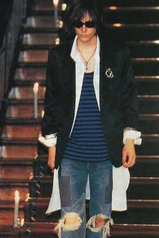 作为不断被提及的标志性单品,撕裂的黑红条纹套头衫、苔藓绿开衫以及打补丁的 Levi’s 牛仔裤,即便没有经历过那个时代但应该都不会陌生。不可忽视的是,还有他的 Roth 墨镜,也就是 Supreme 与 Number (N)ine 最新合作中的墨镜原型。