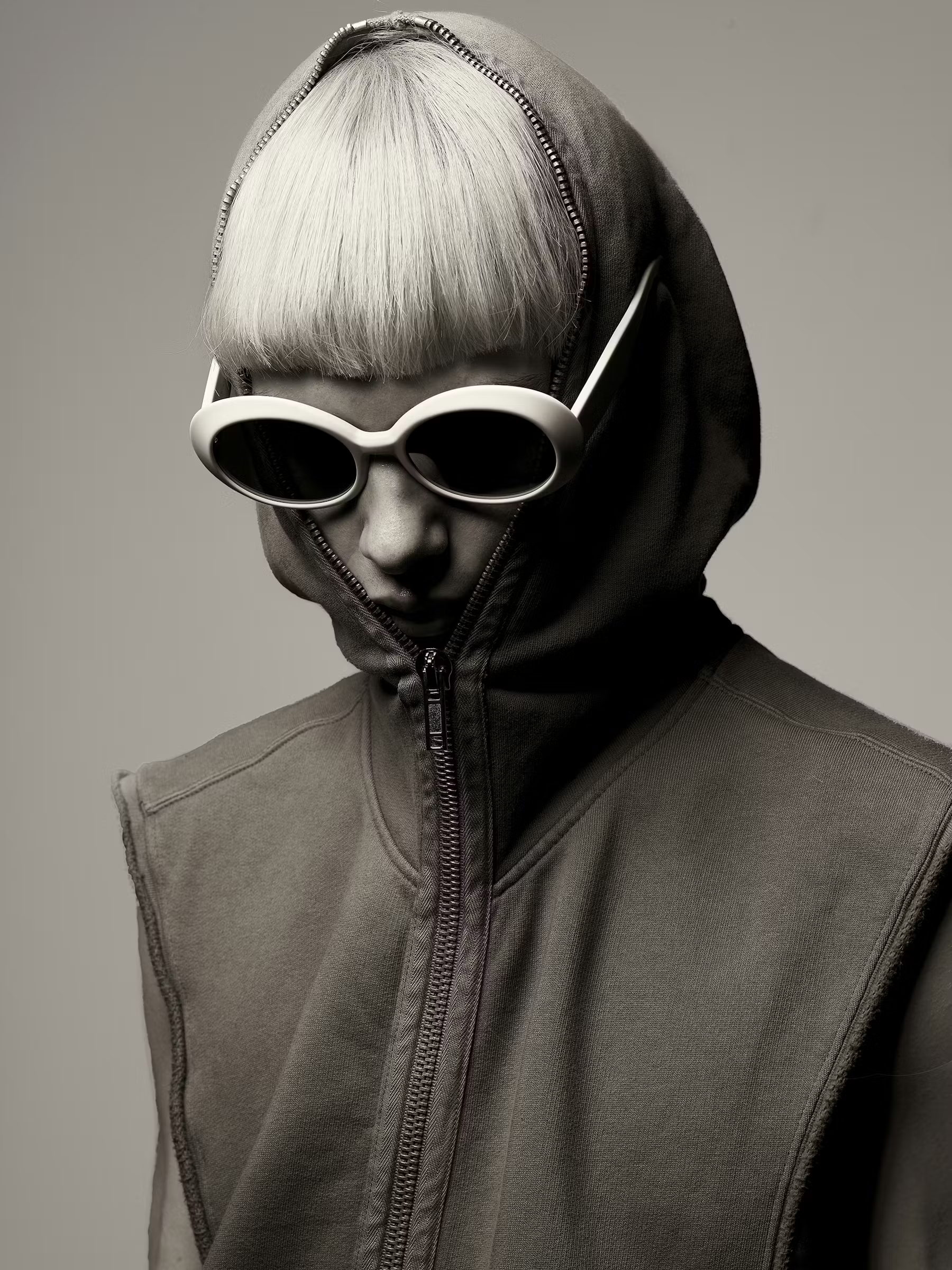 无论如何,椭圆墨镜在视觉上极具冲击力,高度风格化和个性化,这种由复古回潮卷起的流行风暴完美符合社交媒体时代的审美需求,这种造型带来的视觉效果也在广泛传播中无限放大。