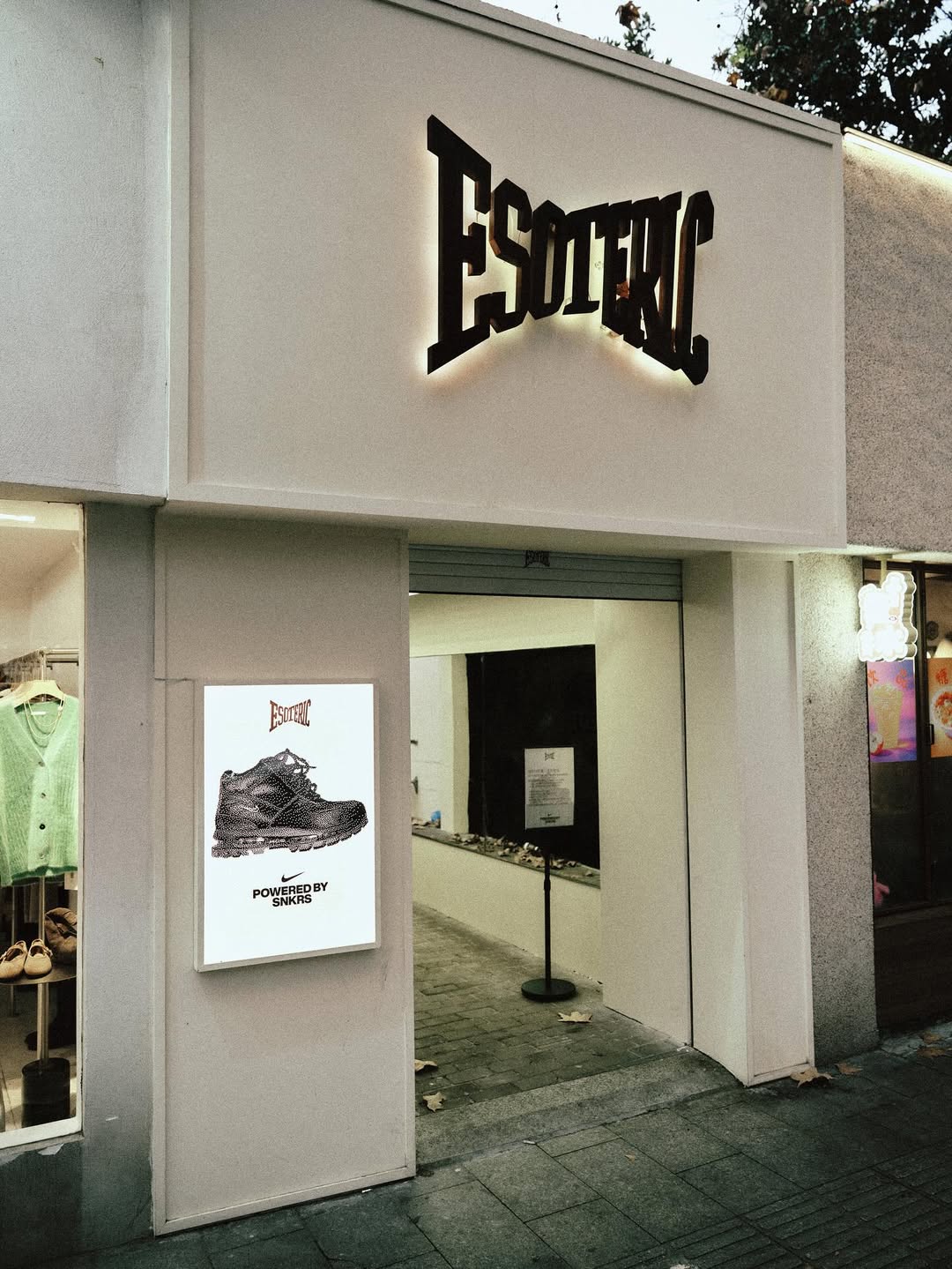 让这一事件变得「特殊」的原因,有两个:首先, Nike 官方极为「罕见且意外」地,将限量鞋款的发售,安排在这样一个非联名、非店中店,同时还是中国本土独立街头品牌的店铺之内。一定意义上,ESOTERIC THING 作为一个尚且「新兴且小规模」的本土品牌,在国内街头文化领域的代表性、Z 世代号召力、推动效应等,通过 Nike 官方的「点头」,得到了肯定与证明。