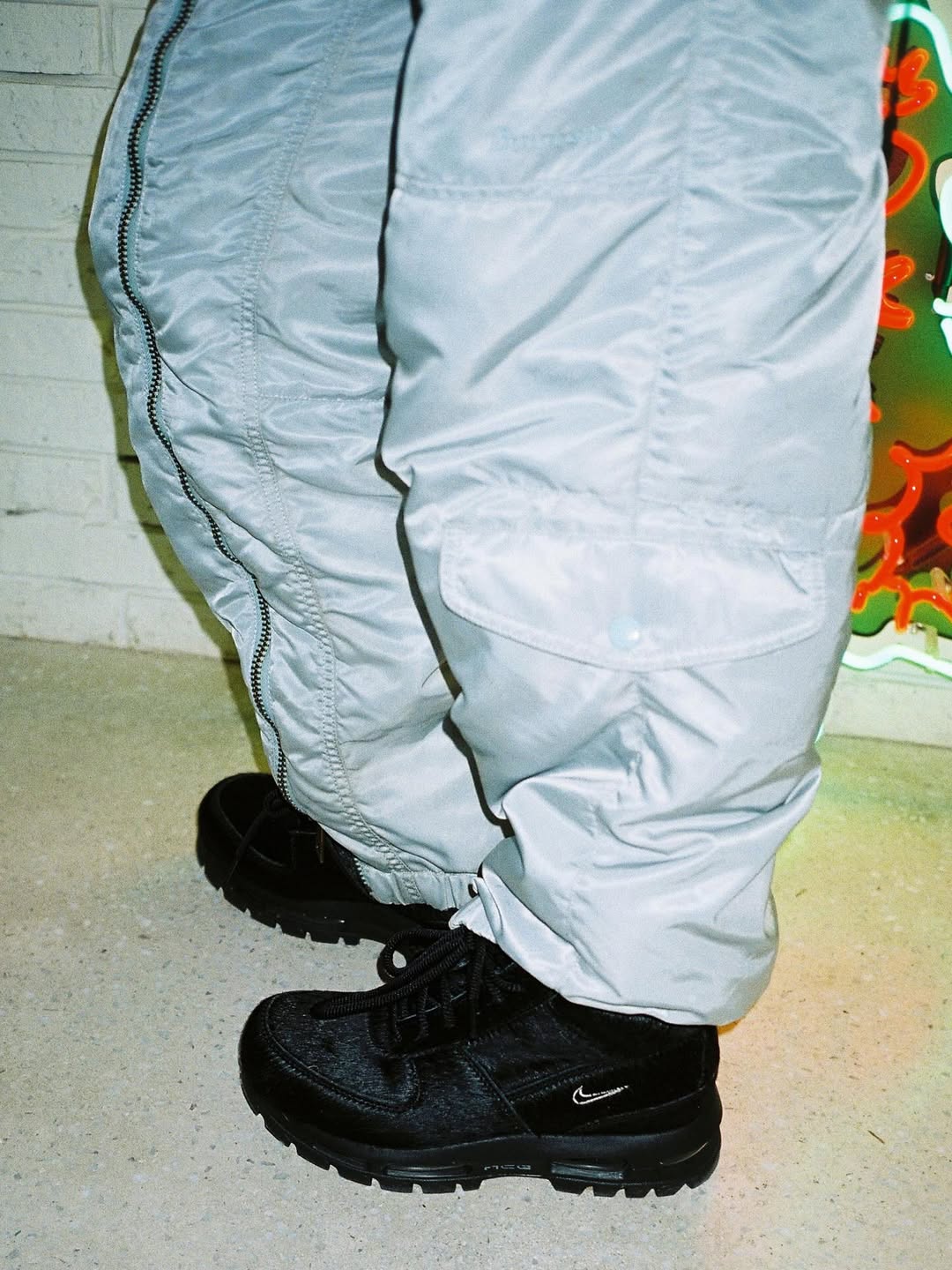而这双长毛版本的 Nike GOADOME,相较于其他普款来说,也自然是所属派系中的「另类」——对原始户外运动气质的改写、时尚 Icon 们的发售前预热、先锋造型圈层中的关注度等…都是双方在各自领域中展现出差异化气质的「气味相投」特质。即便依然会有人吐槽:这都是国外街头品牌早就「玩剩下」的,但至少国内依然需要有人站出来这样做——毕竟现在这样的本土代表,依然稀缺。