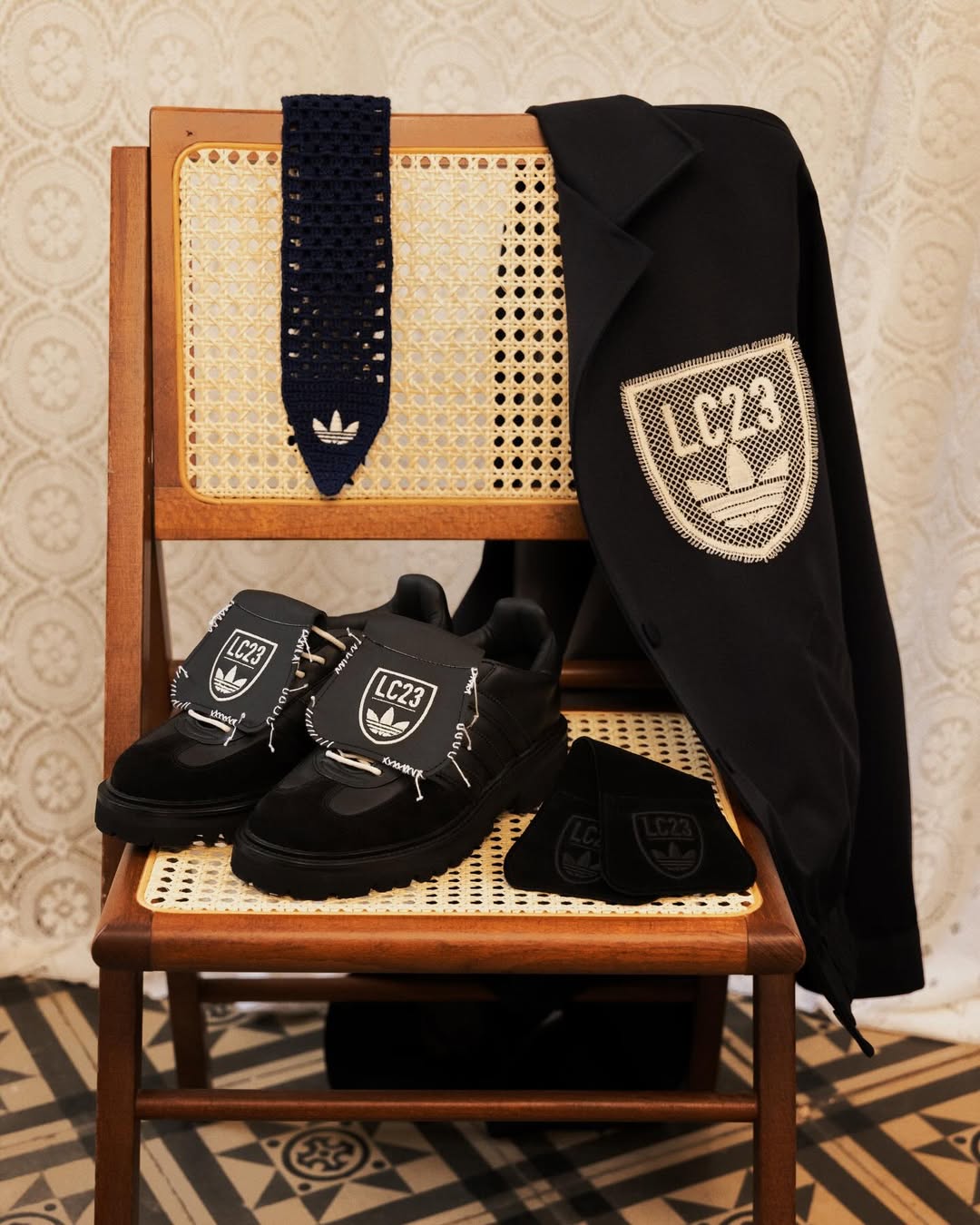 也正是这种特质,让 LC23 与 adidas Originals 的合作也显得顺理成章,双方的共通点在于对经典的尊重以及对细节的执着,这使得联名更像一次双向延展,而非简单的元素叠加。