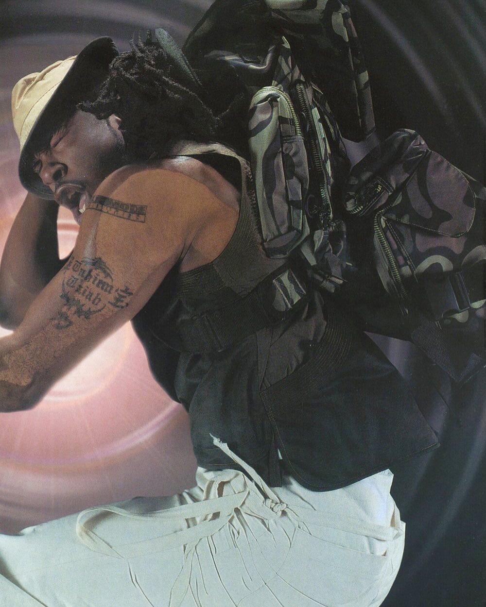 凭借对涂鸦艺术和军事廓形的痴迷,他的毕业作品集为他获取了在 Maharishi 的第一份正式工作,负责开发了一系列高技术含量的机能服装,确立了他对非对称扣件、多层廓形和可调节剪裁的细节偏执。