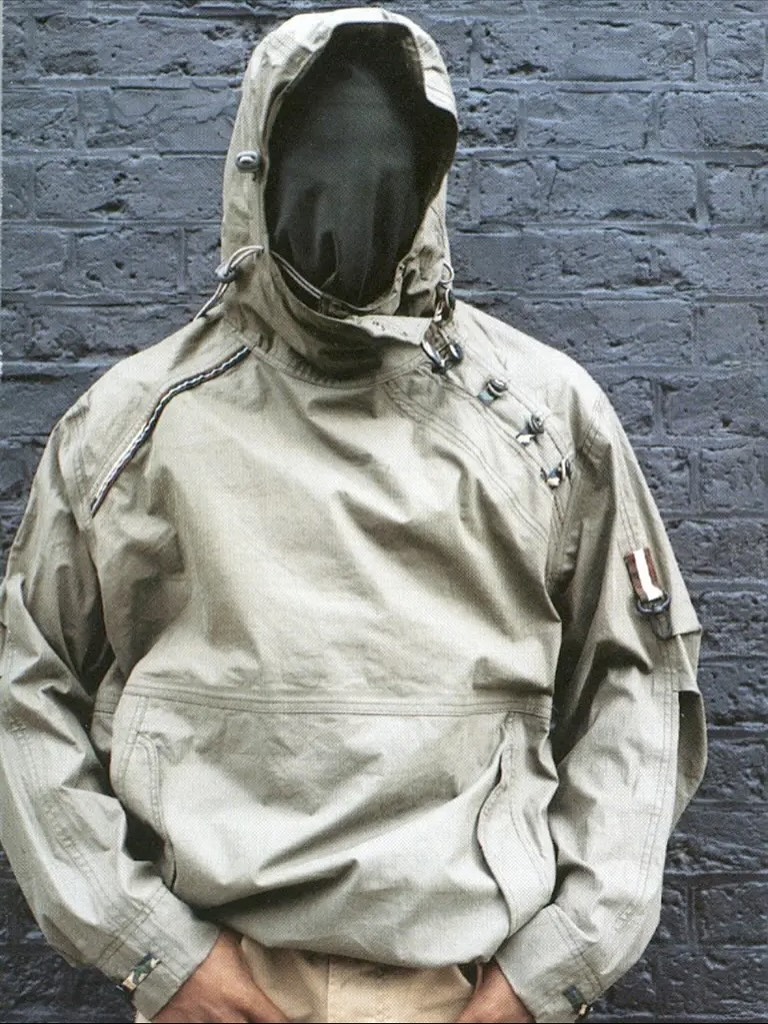 然而,3D 保护结构与极度复杂的模块化系统,让服装看起来更像是来自未来的外星盔甲。这种极具实验色彩的视觉效果在那个年代被认为「过于超前」,与时代审美稍显脱节,同时也因过于复杂的工艺和高昂的定价很快就被埋没。CODE 短暂亮相,在少数渠道进行少量发售后便很快陷入沉寂,可以轻松搜索到的 CODE 单品也寥寥无几。