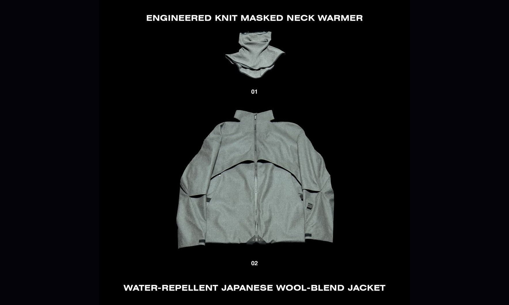 系列核心单品 Component 5 夹克深度还原了 CODE 的服装模块化构思:采用一套创新的磁性连接结构,将连帽、短夹克、羽绒背心、针织披肩及护颈装置整合进一个「五合一」系统中,允许穿着者根据环境需求自由拆解与重组。针对不同防护需求推出了采用 GORE-TEX 硬壳的 Prestigious Fold 夹克,以及选用优质日本羊毛混纺打造的 Flow 夹克。