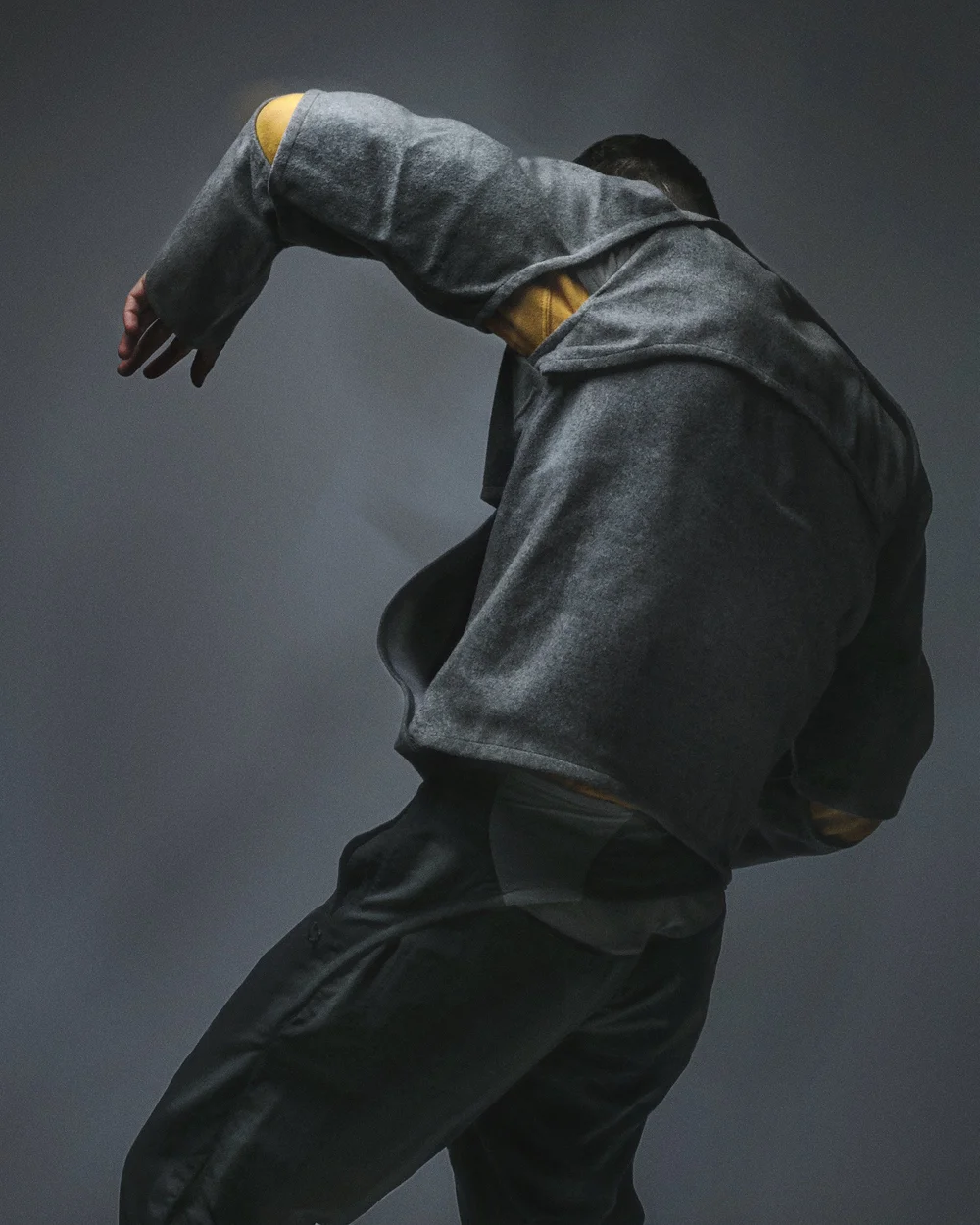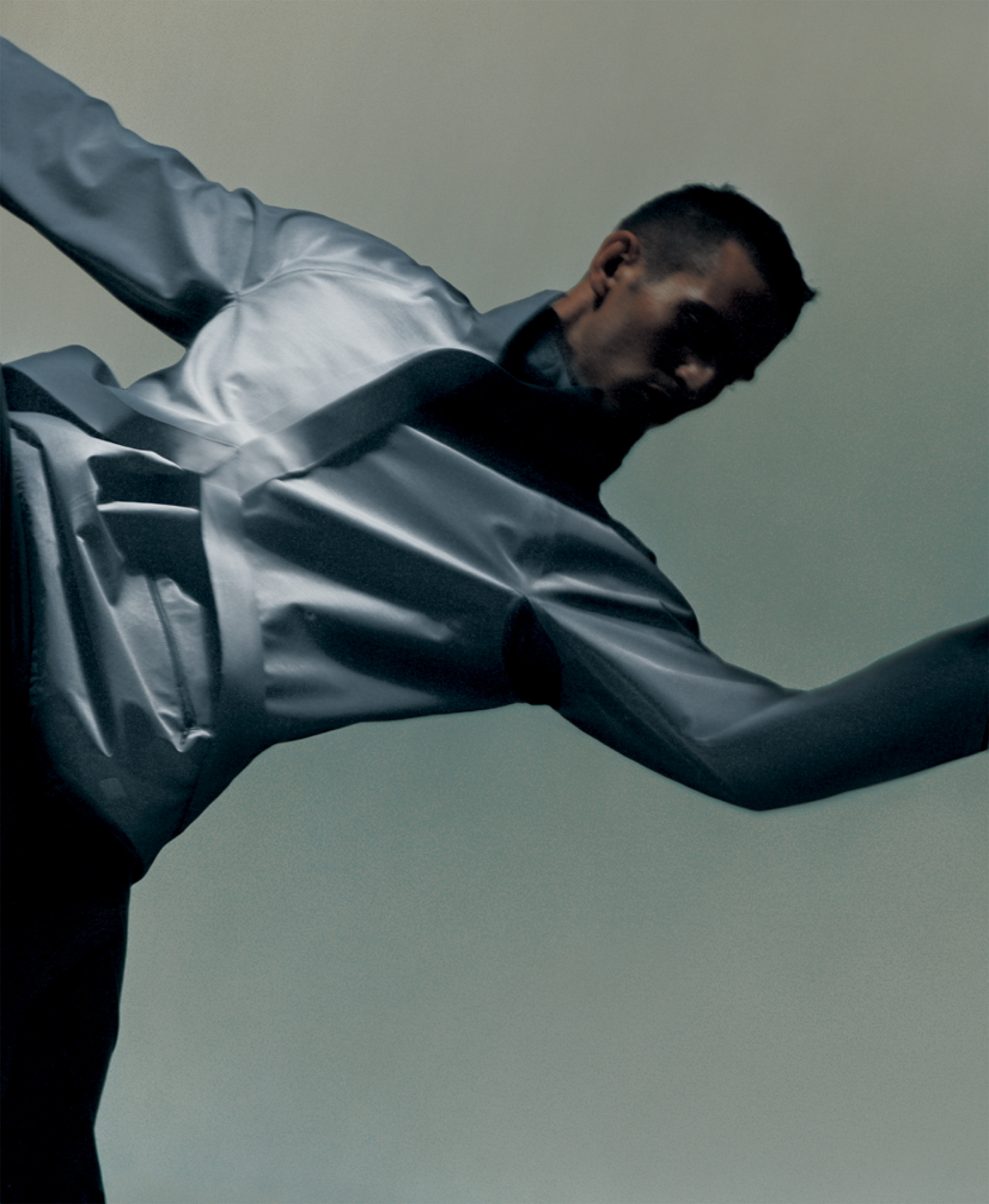 不同于传统制衣逻辑——从设计、面料到剪裁,Tony Spackman 首先从研究人体的肌肉群、关节及关键区域入手,展开该系列的构思,思考如何让服装在不限制自由度的前提下提供最佳灵活性,从内到外地重塑了服装的构造。