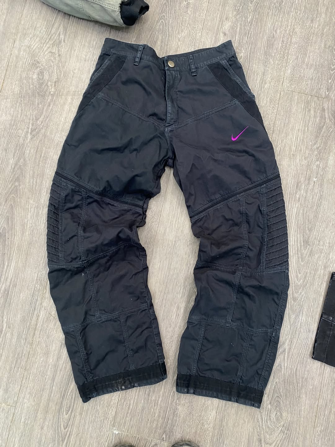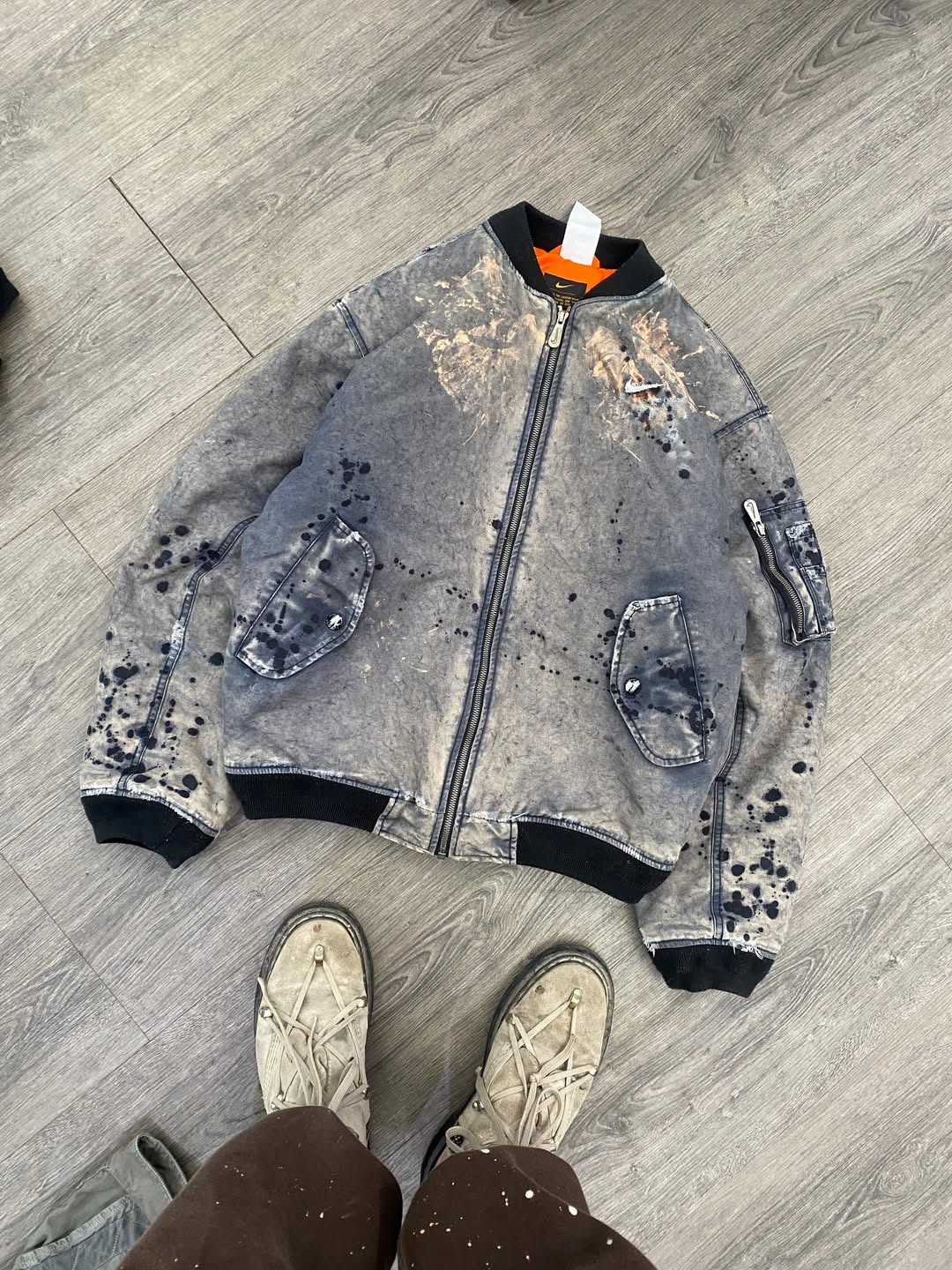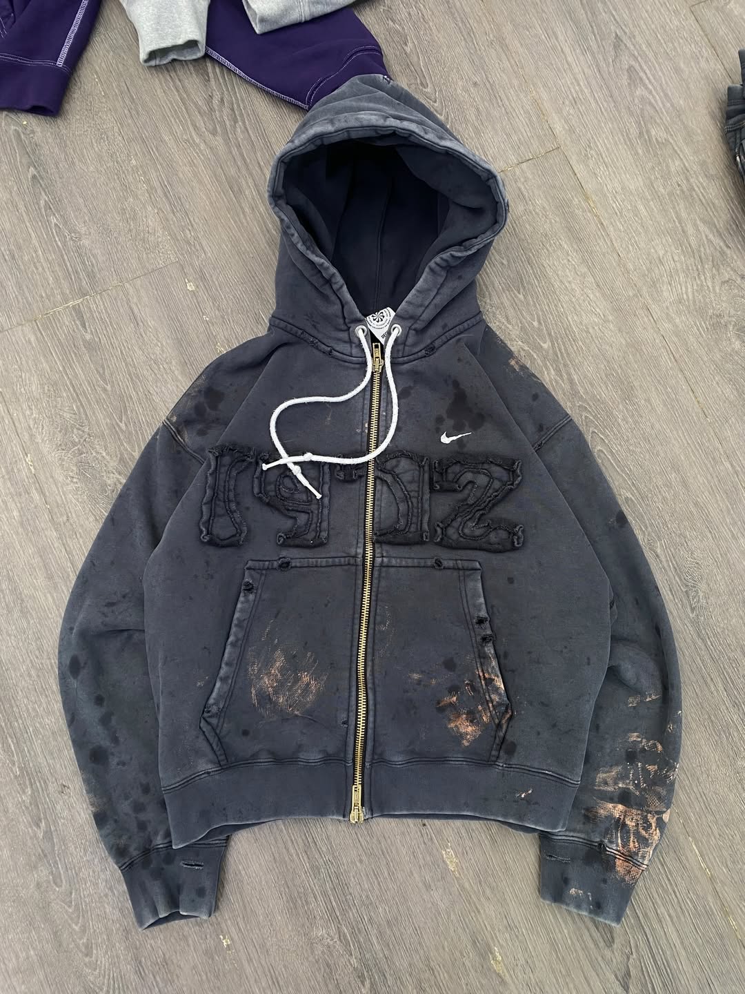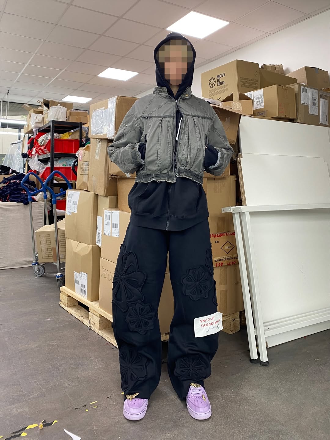 不难看出,设计本身仍然是围绕 remake 的概念展开,但过程中大量利用了 Nike 既有的旧库存与生产废料作为此次创意的核心重点。Degrémont 在自己社交媒体上展示出了一些设计过程,可以看到他通过对这些原本废弃布料的细分、切割与缝补,再重新组合成为完整设计的细节零部件。
