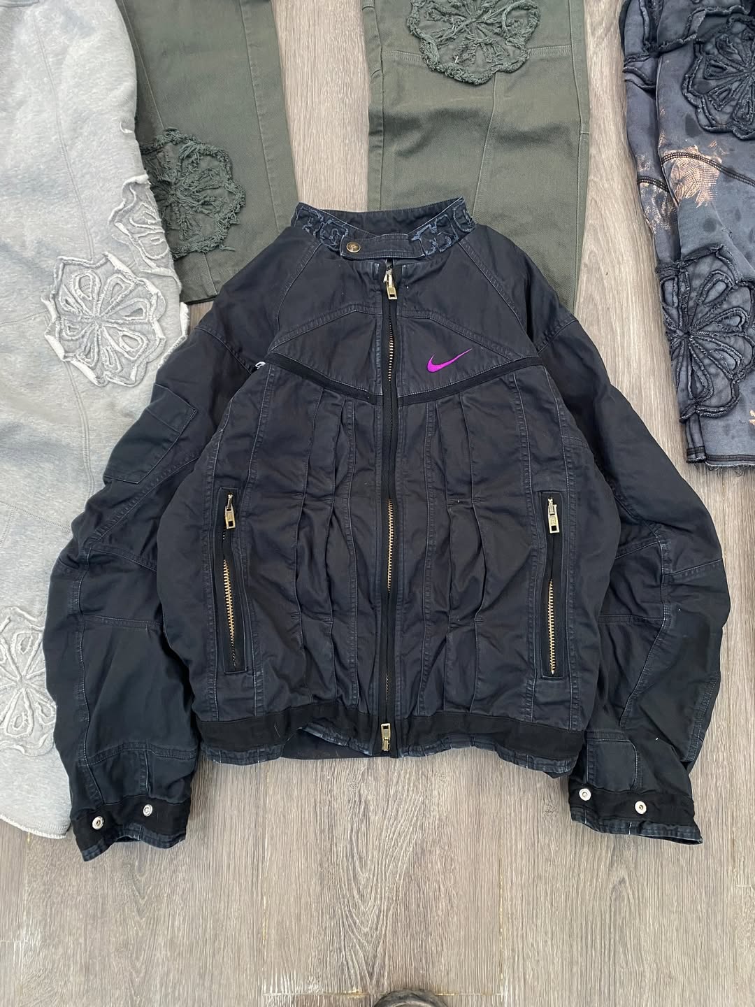 而由巴黎年轻设计师 Sarah Moh 接棒的系列,灵感来源于古着店中的 vintage 服饰,相较于更偏向结构或技术研究的创作路径,她的设计则围绕「穿着状态」本身展开,既保留 Nike 运动服的功能属性,又弱化了过于明确的用途指向,将巴黎街头的喧嚣与多样性风格缝进了每一件单品里。