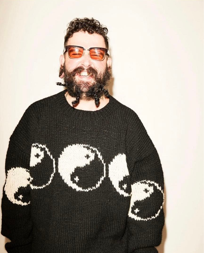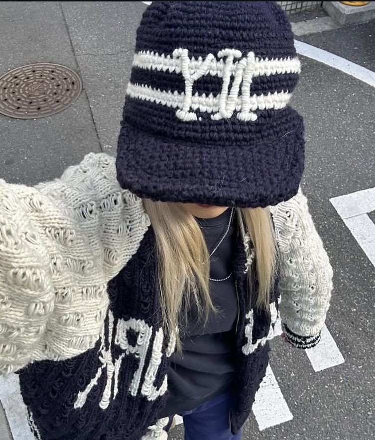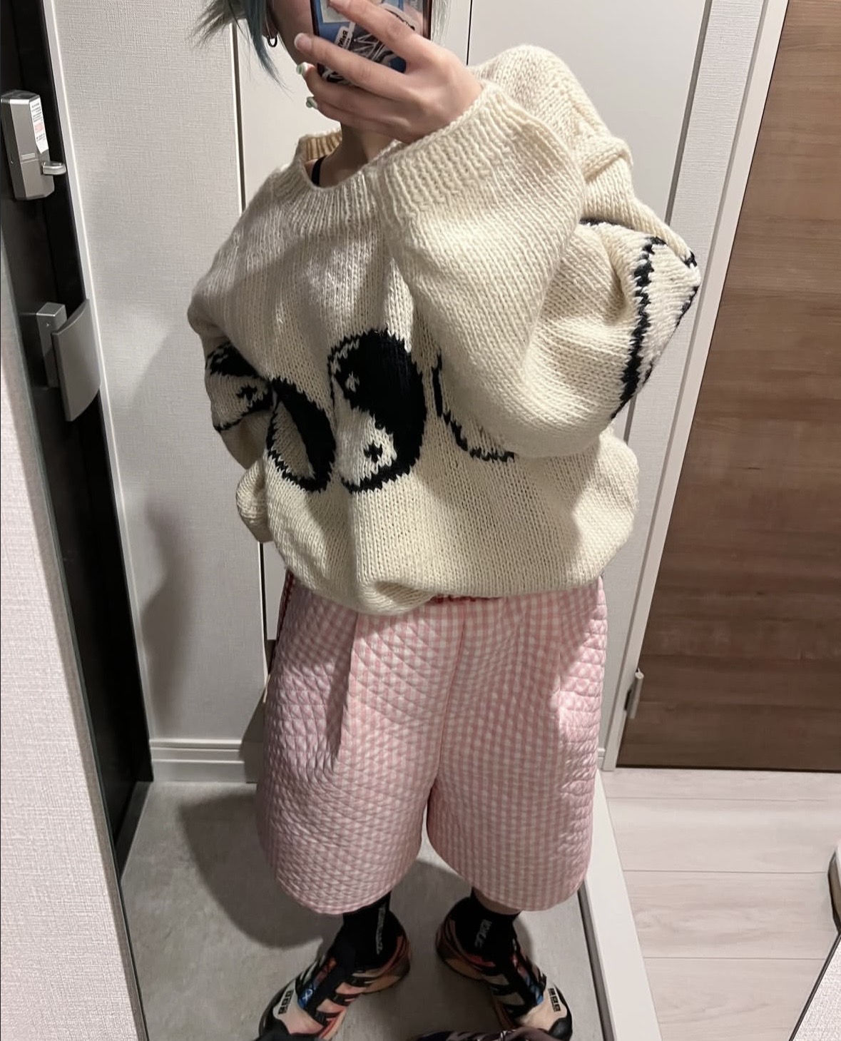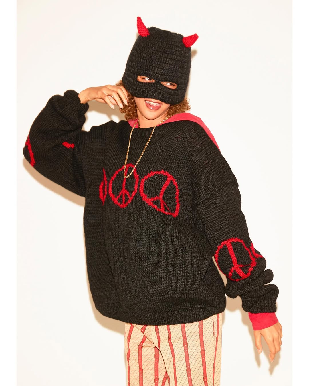 除了如同 vintage 一般的旧物质感和手作痕迹外,MacMahon Knitting Mills 毛衣最显著的特征便是粗针纹理和那些标志性的图案符号——阴阳、骨骼、反战,以及不同的花卉,成为一种 Neo-Folk 式的时尚密码,也塑造了品牌最受欢迎的爆款单品。