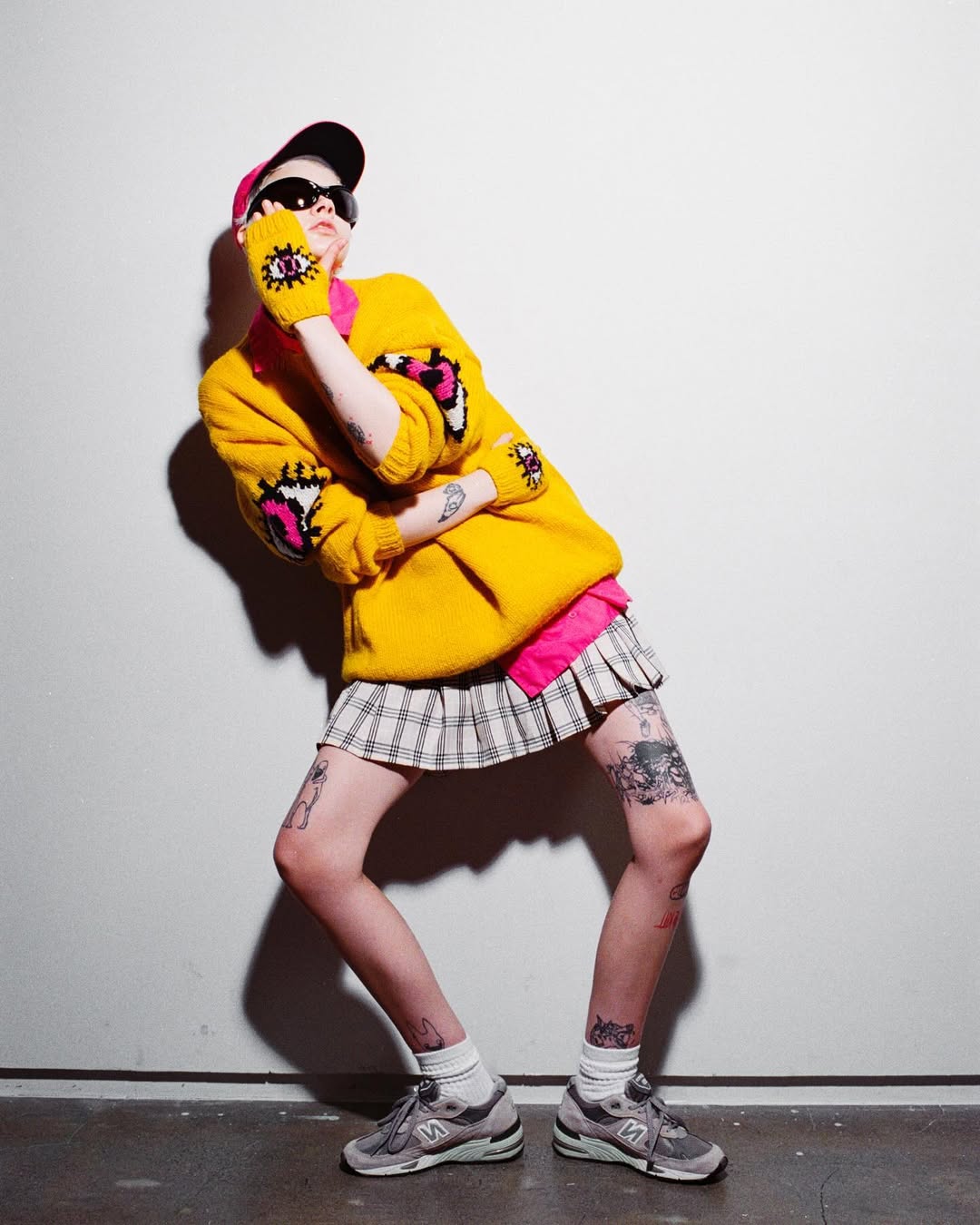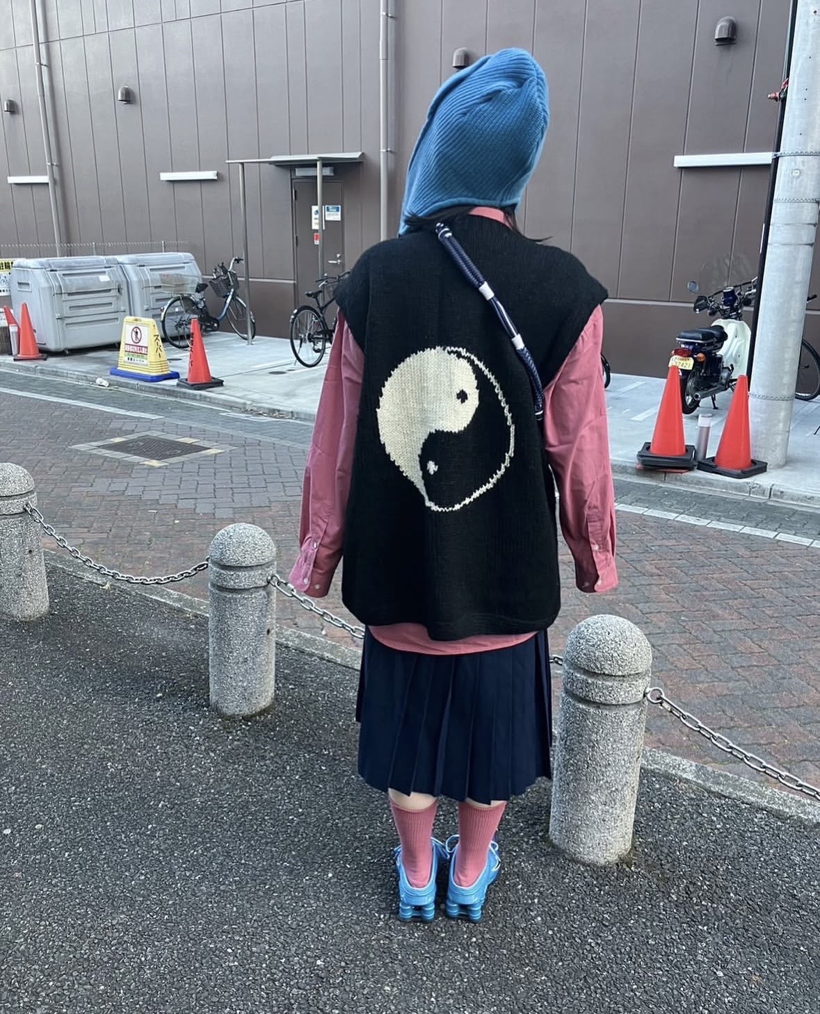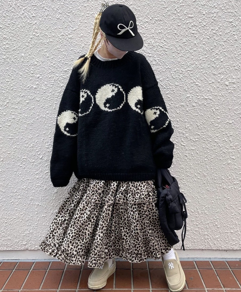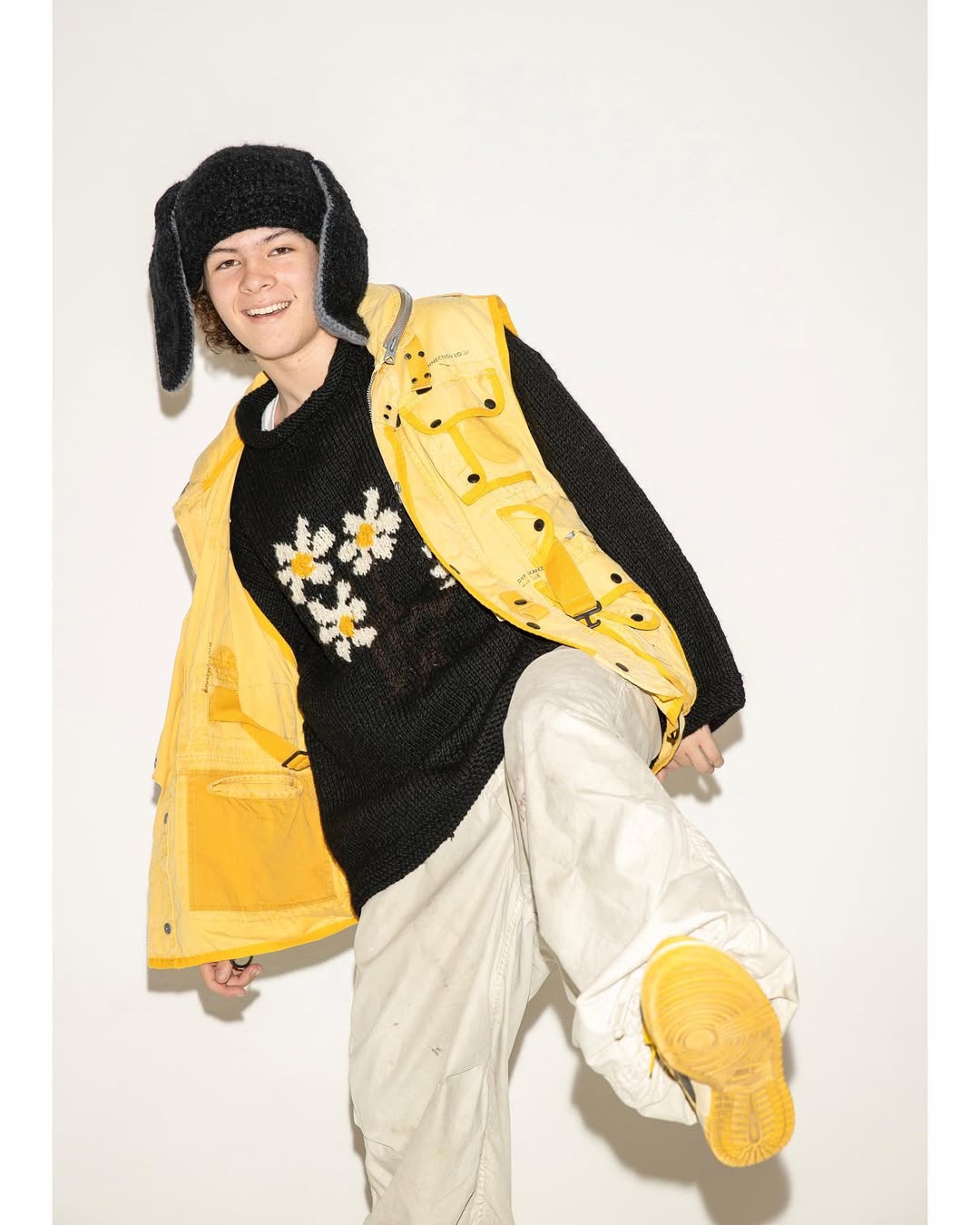 除了如同 vintage 一般的旧物质感和手作痕迹外,MacMahon Knitting Mills 毛衣最显著的特征便是粗针纹理和那些标志性的图案符号——阴阳、骨骼、反战,以及不同的花卉,成为一种 Neo-Folk 式的时尚密码,也塑造了品牌最受欢迎的爆款单品。