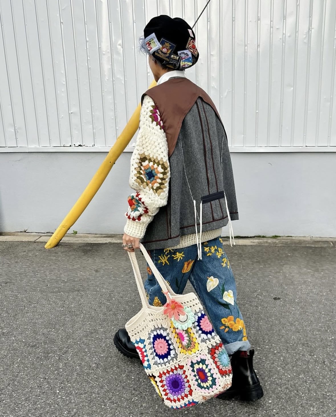 此外,品牌对 Granny Squares(祖母方格) 这一传统针织技艺的时尚化重塑也通过更加鲜活奔放的色彩和更为 oversize 的宽松剪廓,在复古手工艺基调中注入了年轻化的街头气息。