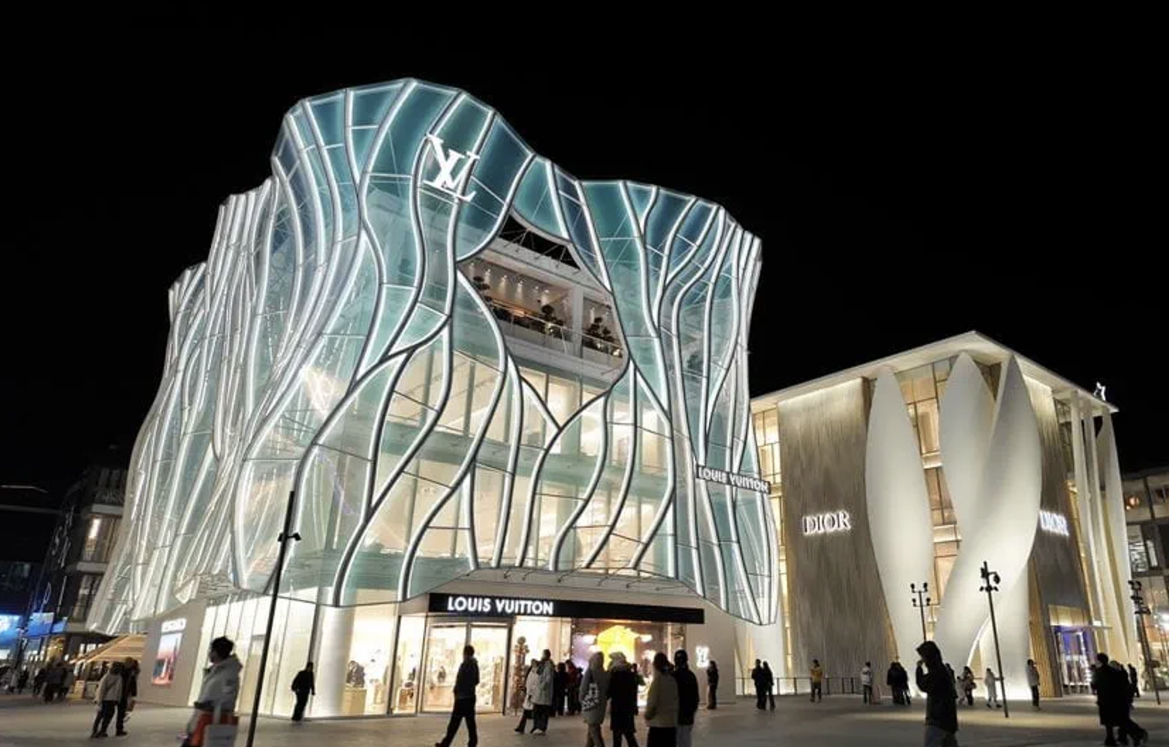 当然,不光中国,LVMH 为 LV 和 DIOR 在全球一线城市树立的旗舰门店,都显然是直接将商业体拔高到「旅游打卡地标」的维度;同时也在高调宣言:这不是在租用城市的空间,而是在定义城市景观。