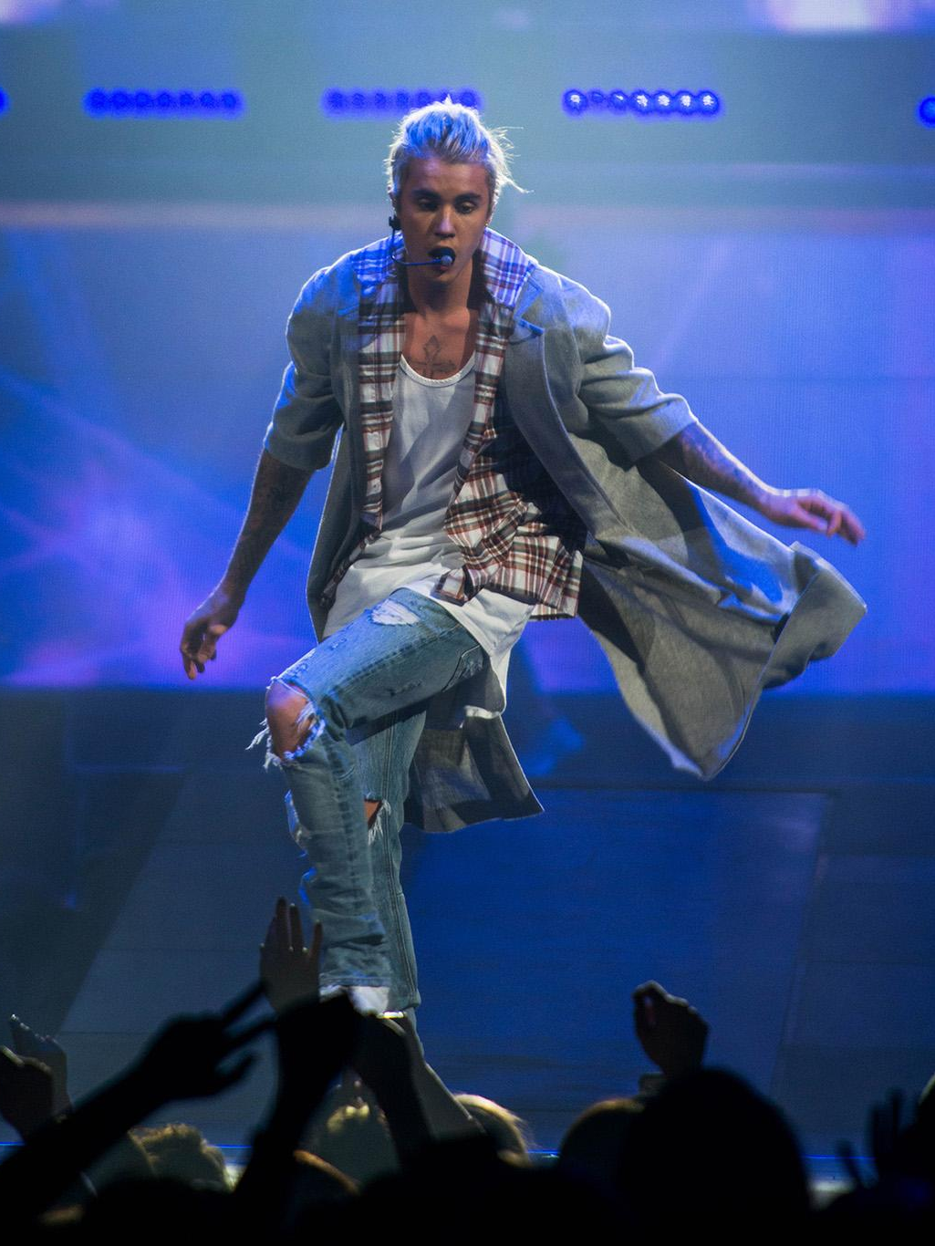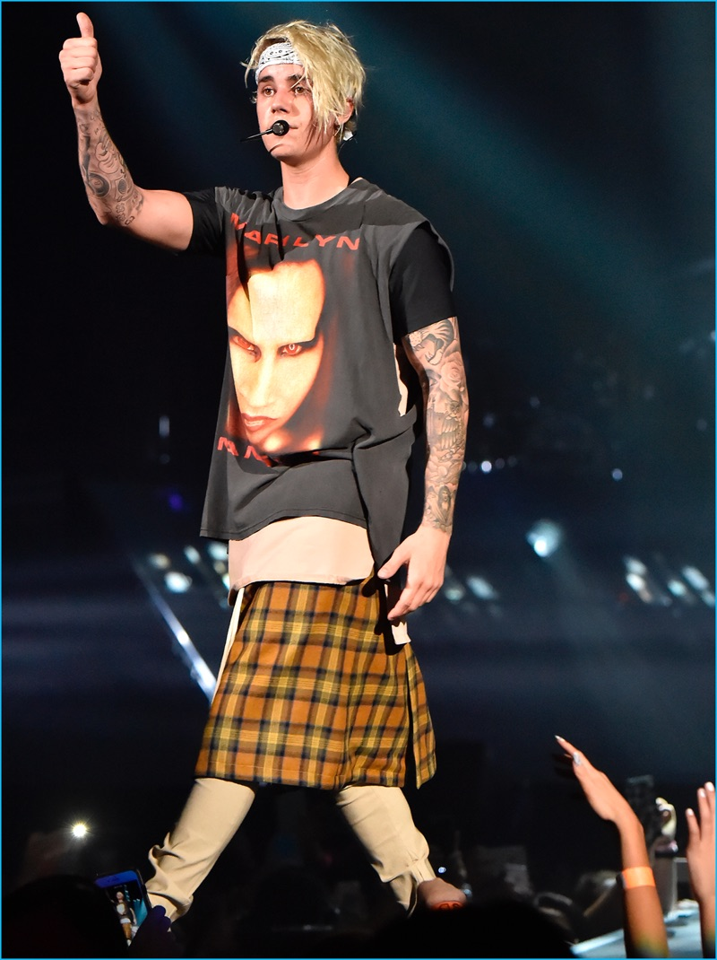 Justin Bieber 在 Purpose Tour 的演唱会期间与 Jerry Lorenzo 的合作,使他成功摆脱了青少年偶像的形象,迎来了个人时尚风格的巅峰。这一时期,比伯的舞台造型与日常穿搭无缝衔接,每一套都散发着 Fear of God 所塑造的高街气息,一度影响潮流男孩成为穿搭模版。
