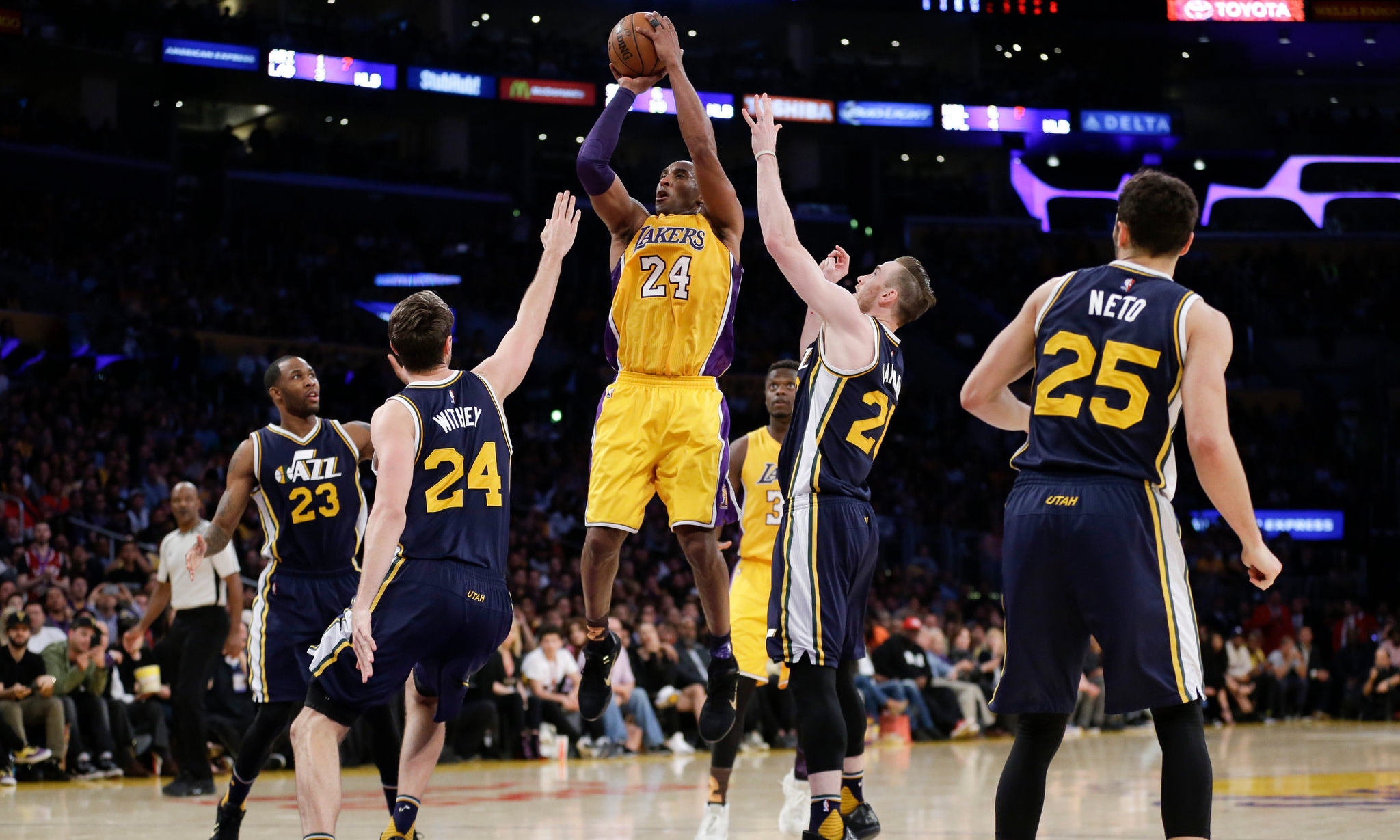 当地时间 2016 年 4 月 13 日,科比·布莱恩特迎来了自己 NBA 职业生涯的最后一场比赛。37 岁的他,在效力洛杉矶湖人的第 20 个赛季收官之夜,于主场对阵犹他爵士。这场比赛原本只是常规赛的一场收官战,却最终成为当年最受关注的比赛之一。这场比赛几乎浓缩了科比整个职业生涯。终场前时刻,科比仍在连续得分,彻底点燃了斯台普斯中心,也让比赛结果变得无关紧要。