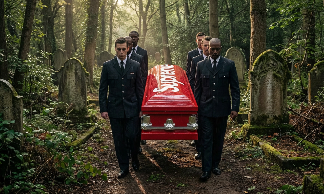 Supreme 的荒诞跨界已经不计其数——印 Box Logo 的红砖、换包装和外皮的奥利奥…既然要检验街头死忠粉的忠诚度,不妨直接来个终极挑战:现在的潮流时尚品牌,不都打着覆盖「生活方式」的旗号吗?那从「如何活得酷」延伸到「死得有排面」,何尝不是「生活方式」的最终奥义?