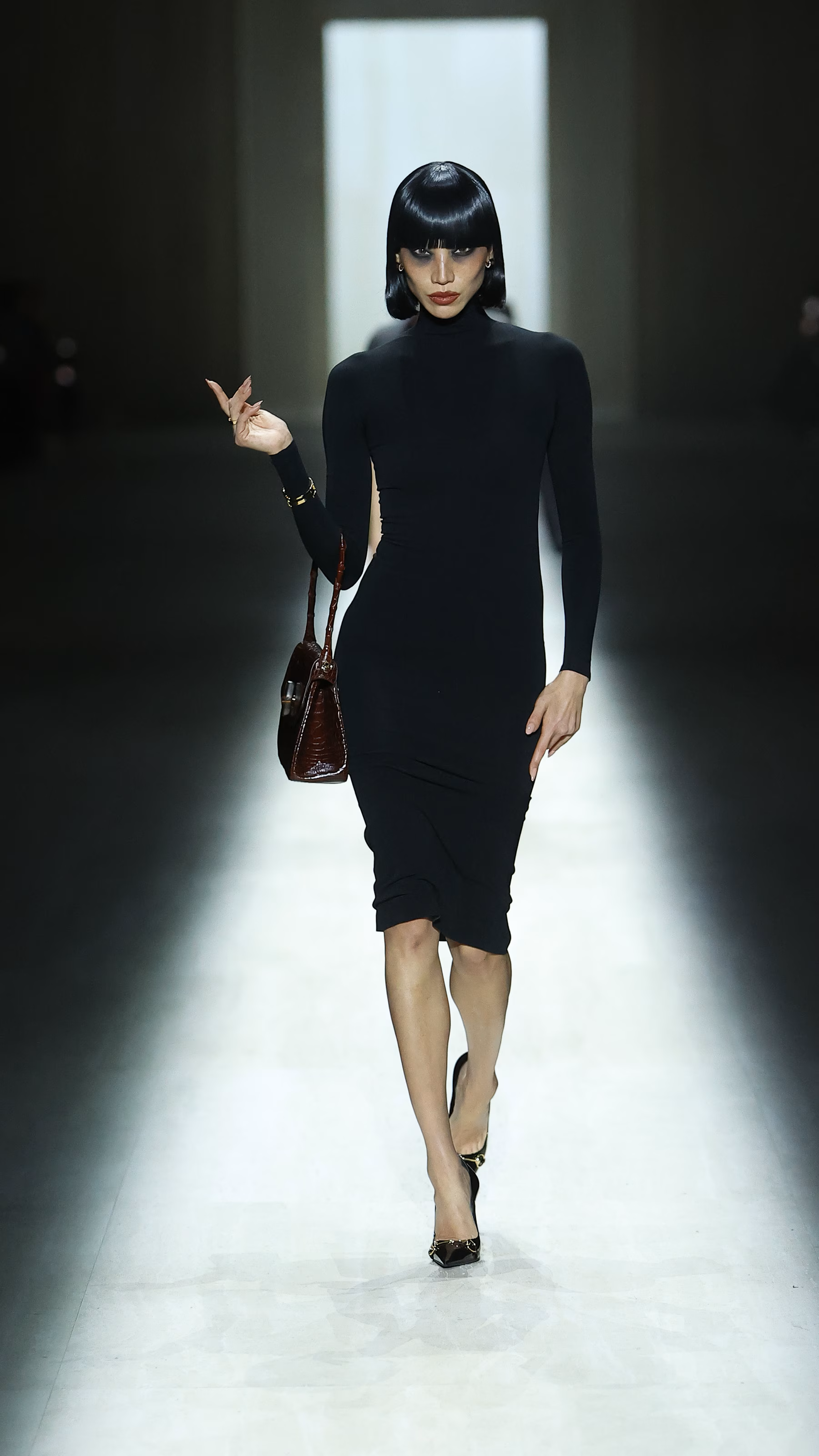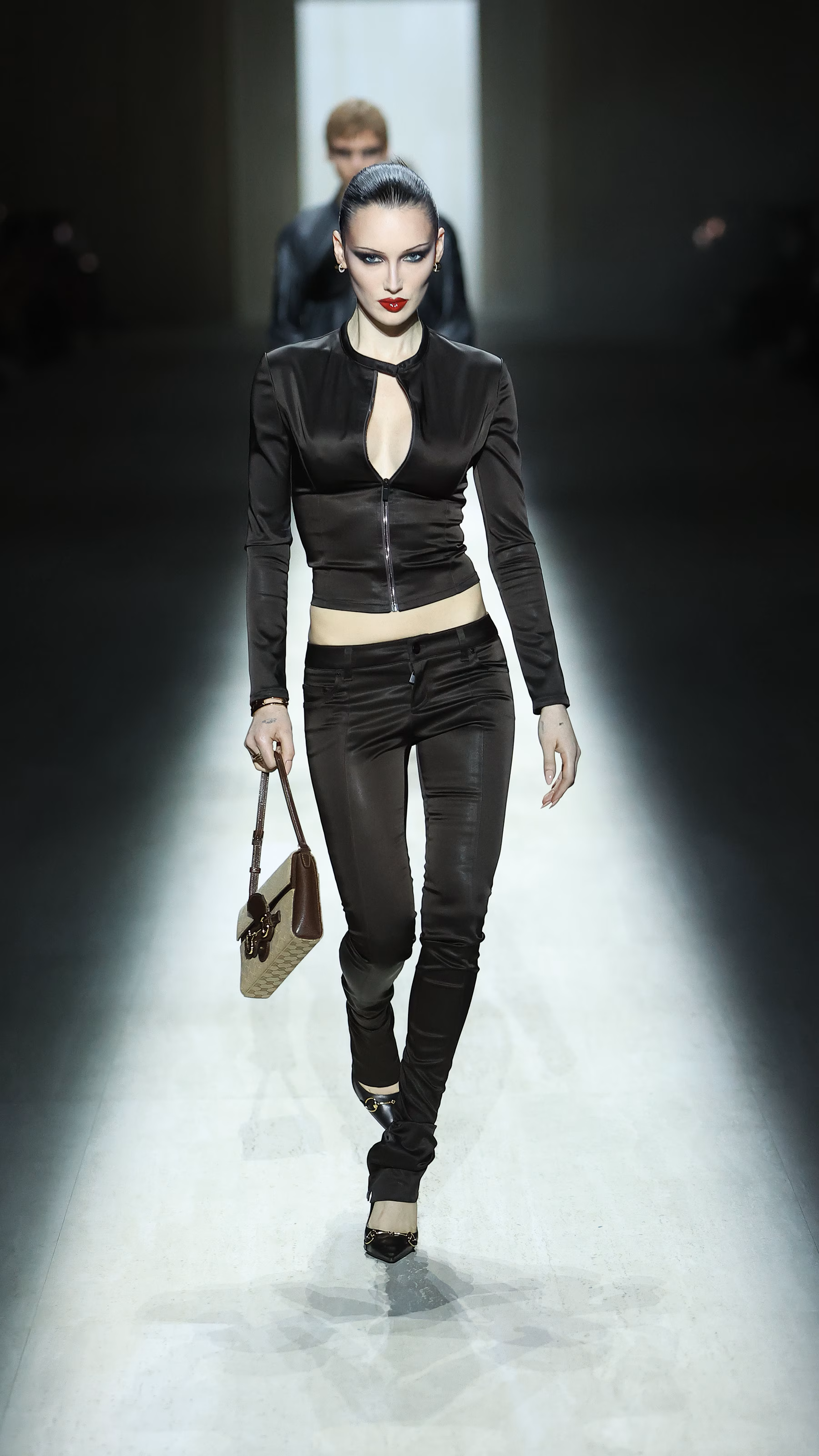 从秀场呈现本身来看,这一季 GUCCI 的整体设计源头,清晰指向由 Tom Ford 在 90 年代后期所建立的那套性感语法体系。
