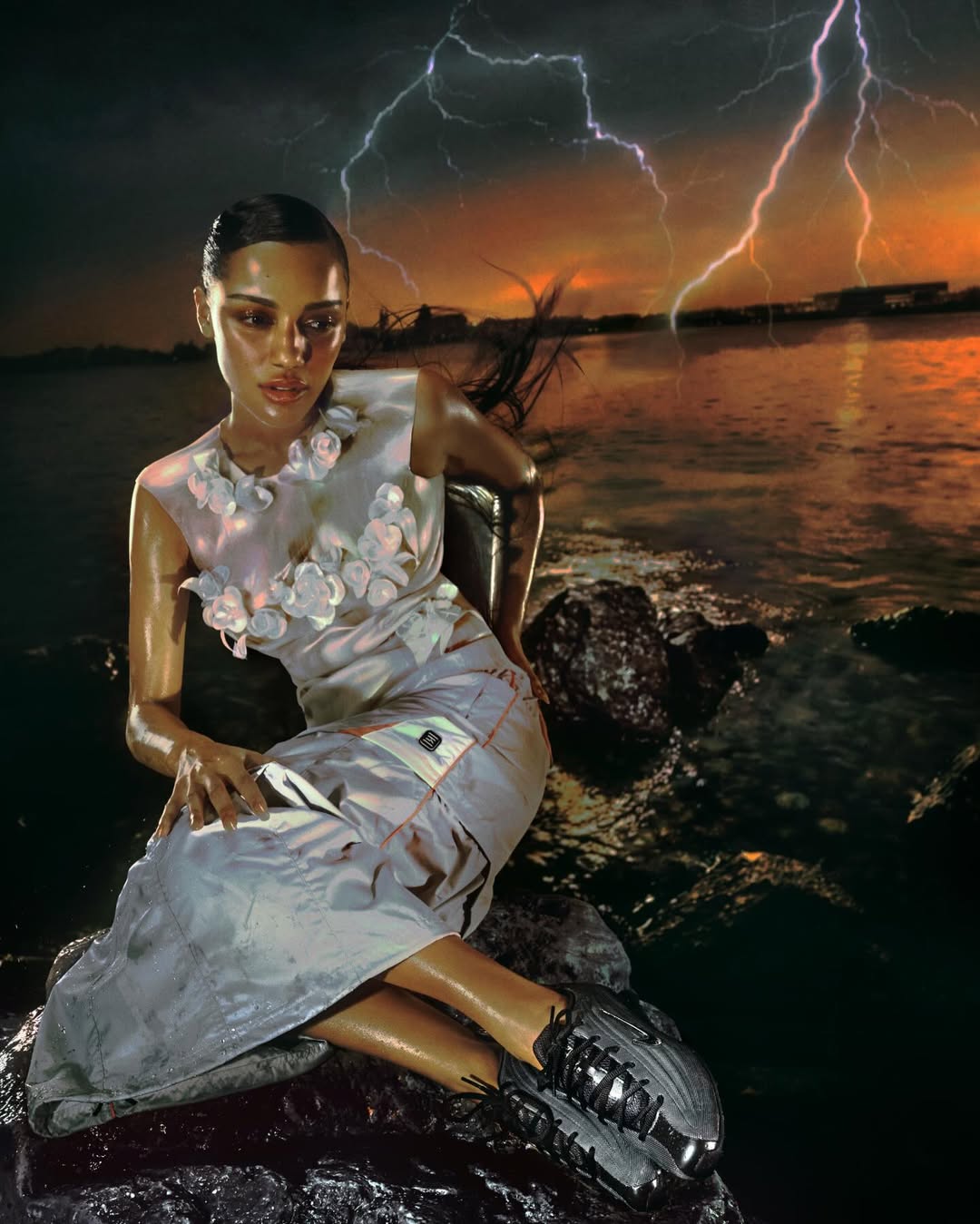 双方围绕哥本哈根当地变幻莫测的天气出发,具有金属质感的色泽实际上是受到湿滑路面和狂风暴雨的启发。而此次合作带来的两双鞋款,其中 Shox Z 可以说是过去一段时间女性球鞋趋势中潜力被低估的一款型号,尽管在国内市场没什么声量,但在日韩地区或是 Instagram 上却是时尚搭配和街拍中常出现的人气款式,延续了早先 Nike Shox R4 在女生穿搭中的走红趋势。